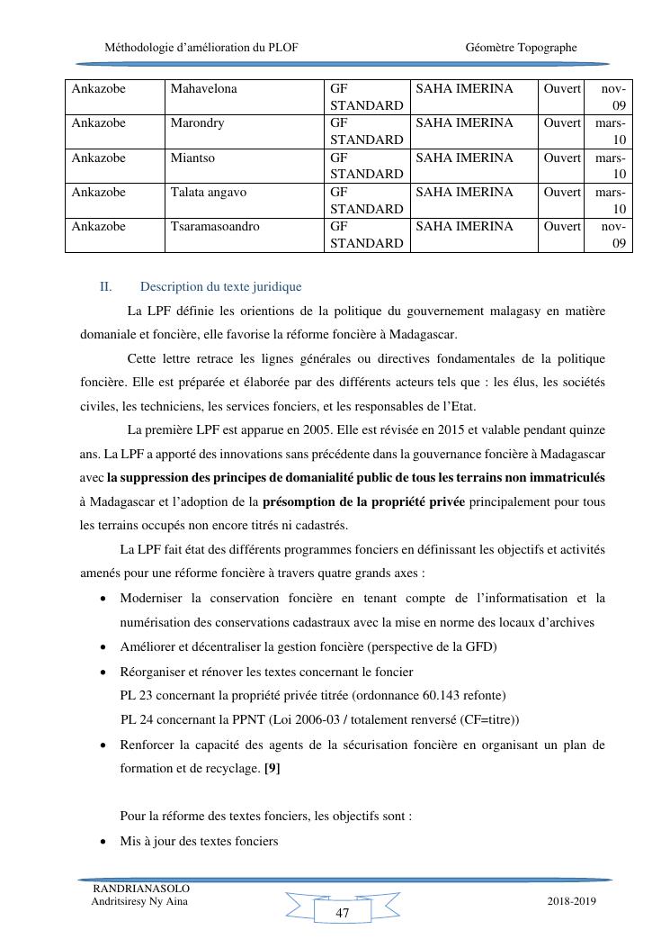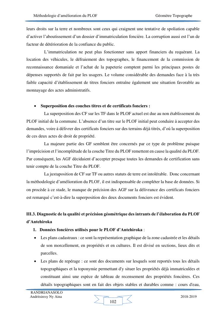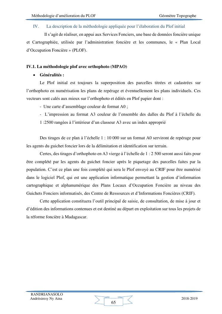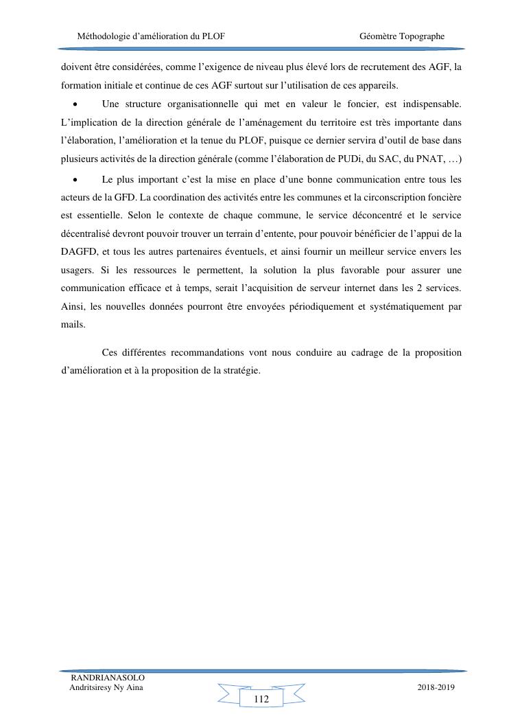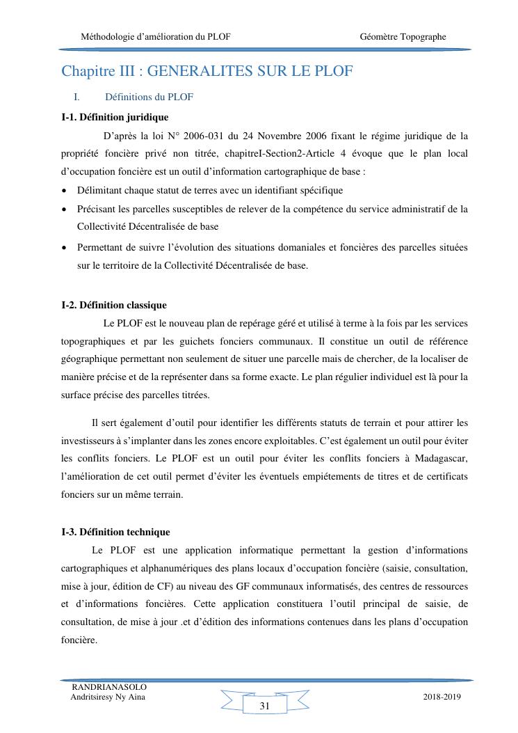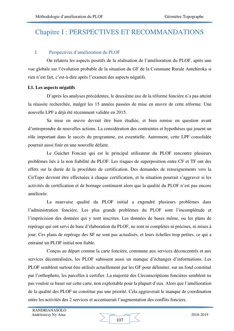 méthodologie d'amélioration du plan local d'occupation foncière de la commune rurale d'antehiroka