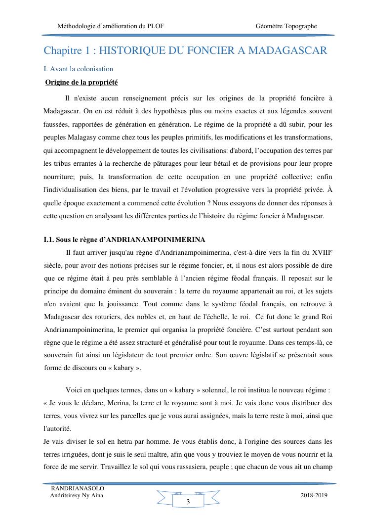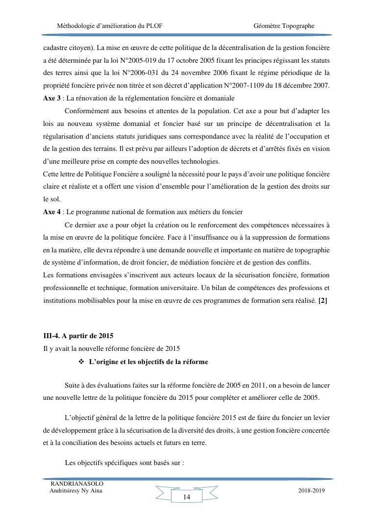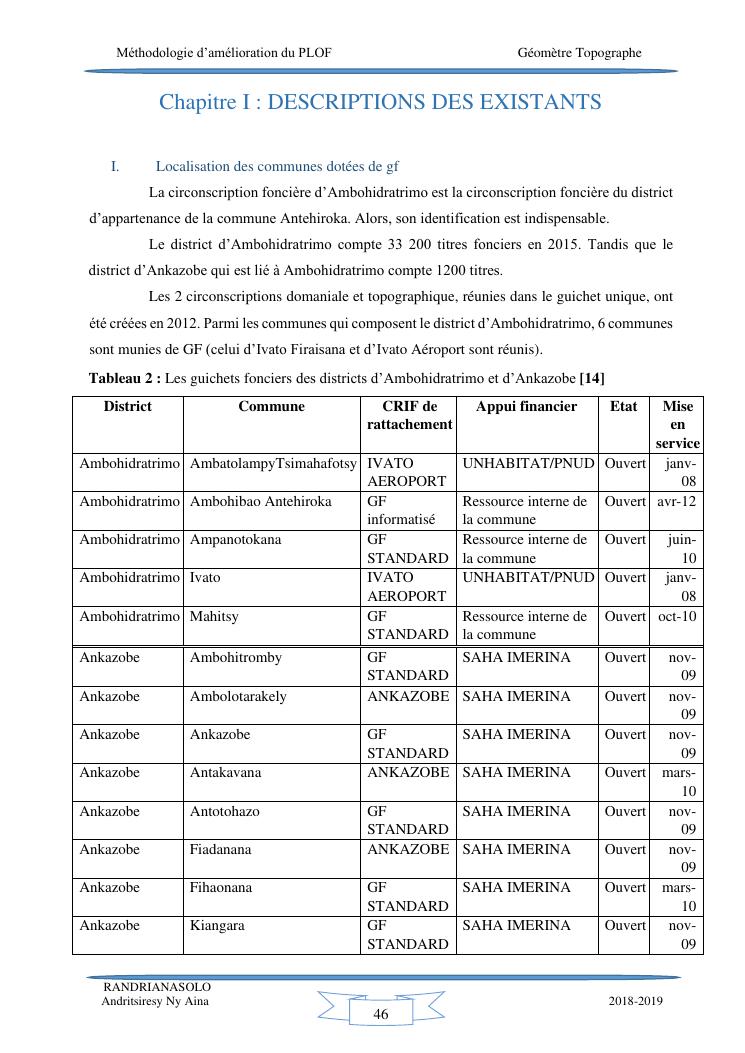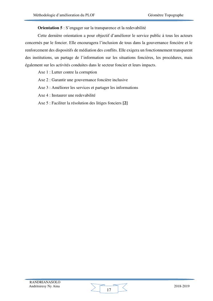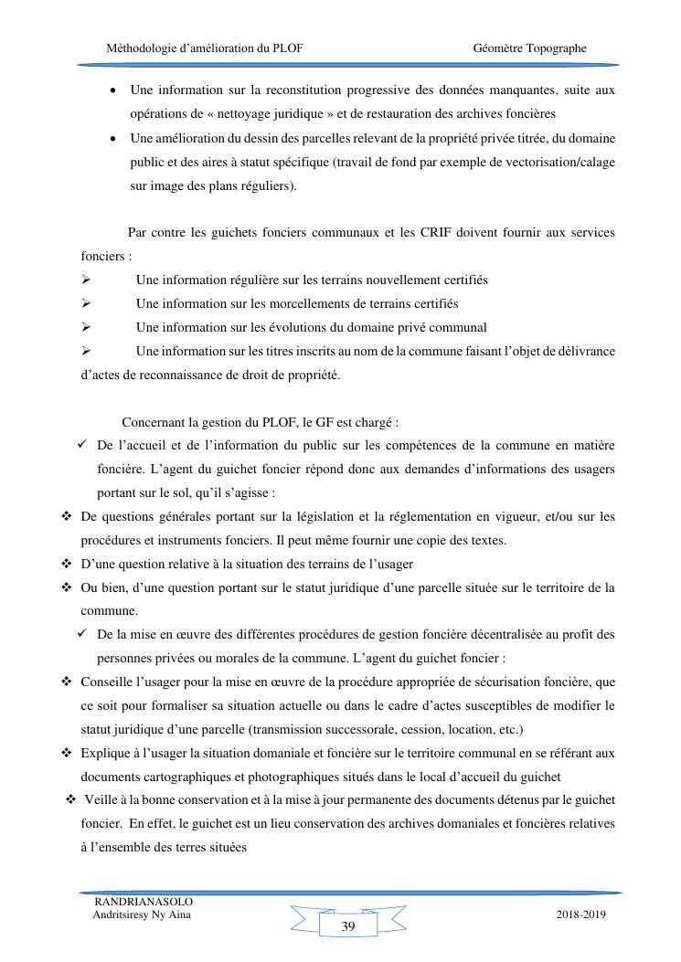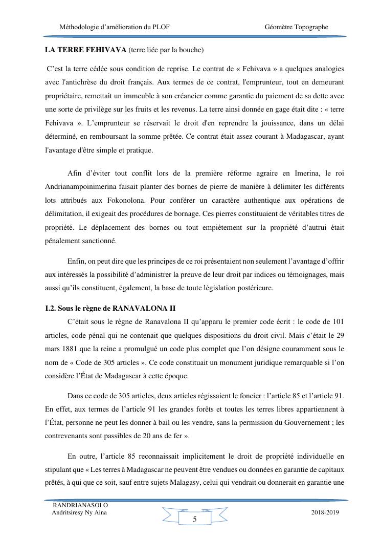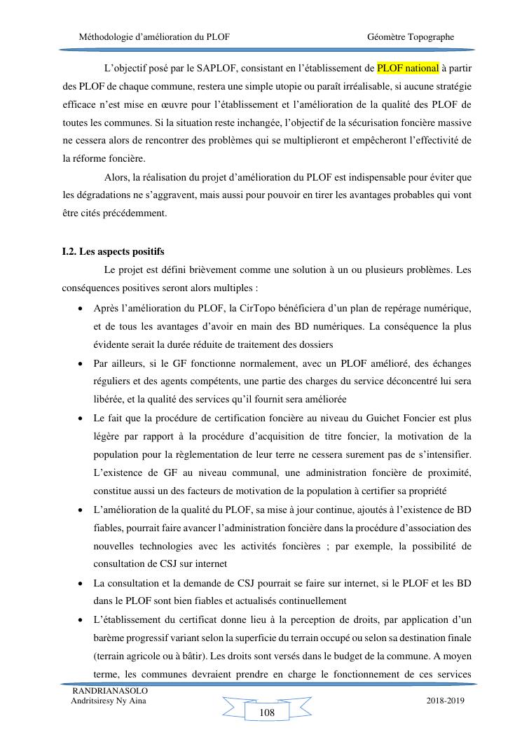 méthodologie d'amélioration du plan local d'occupation foncière de la commune rurale d'antehiroka