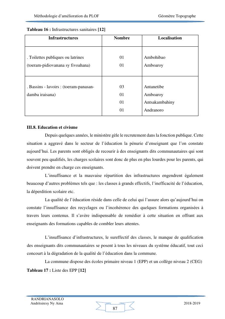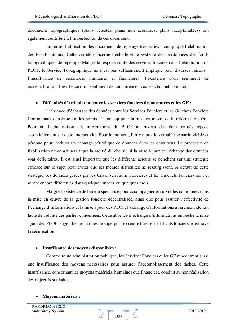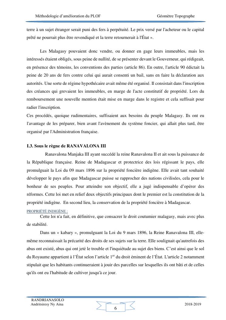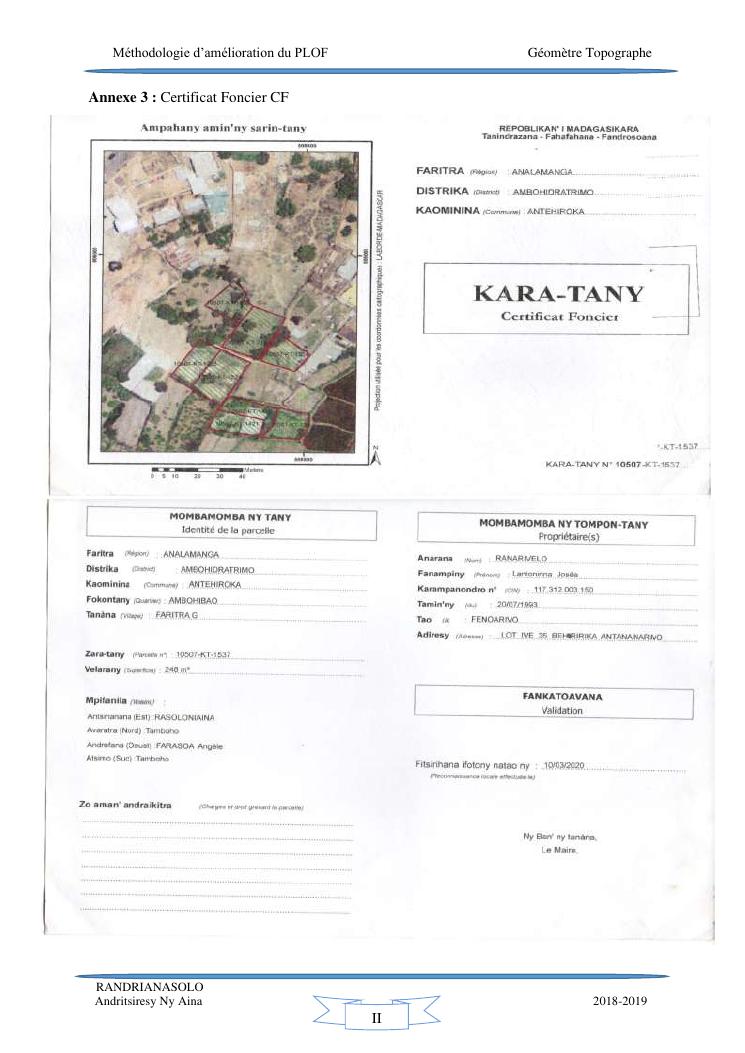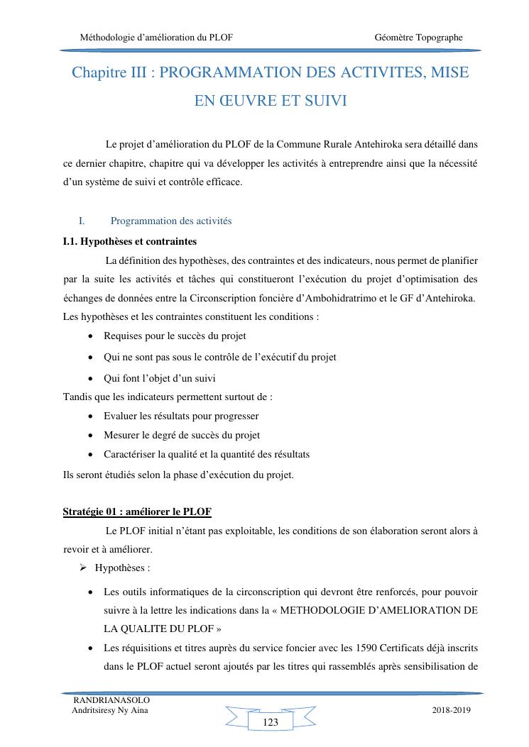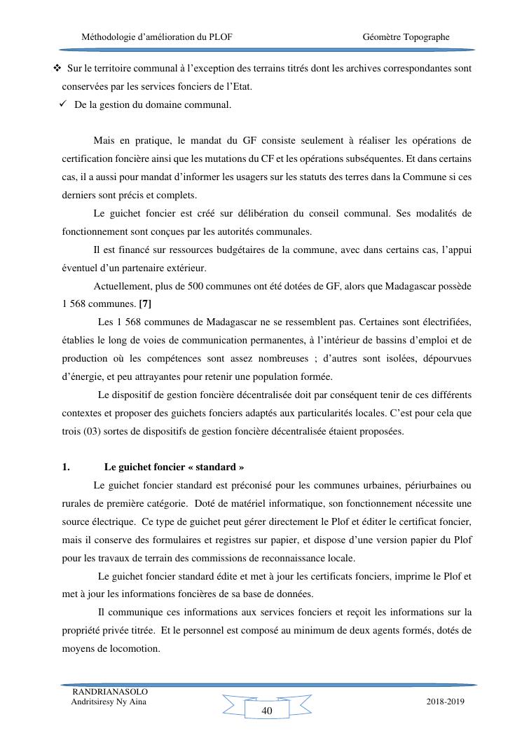 méthodologie d'amélioration du plan local d'occupation foncière de la commune rurale d'antehiroka