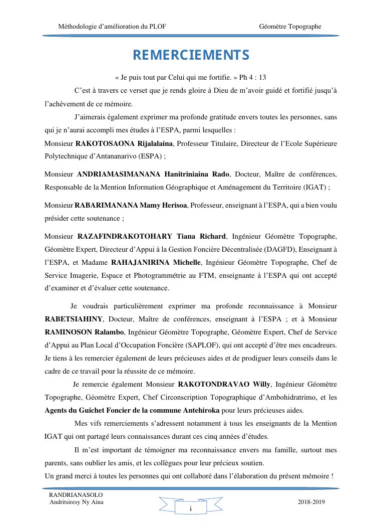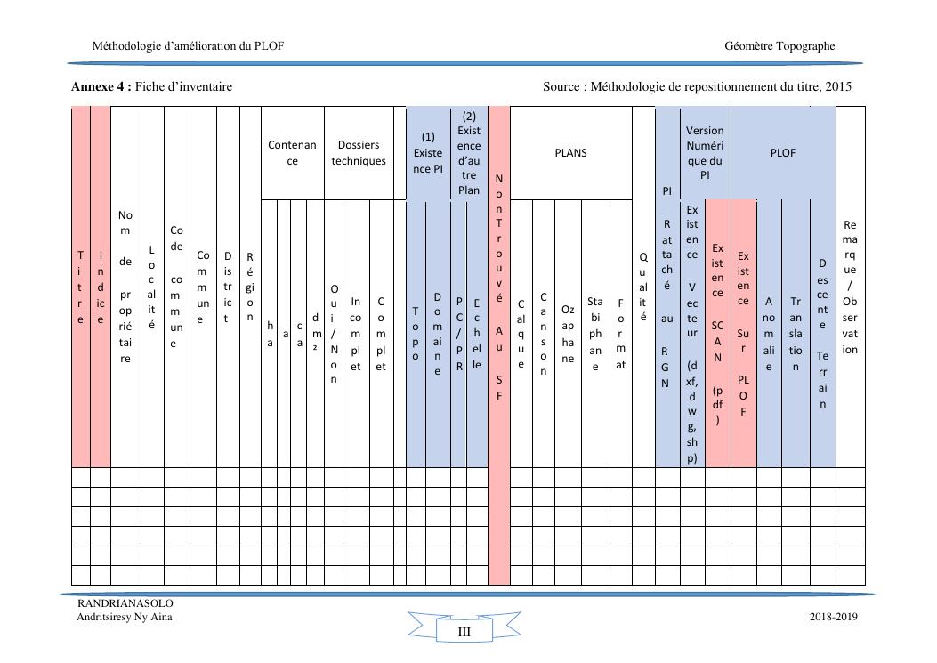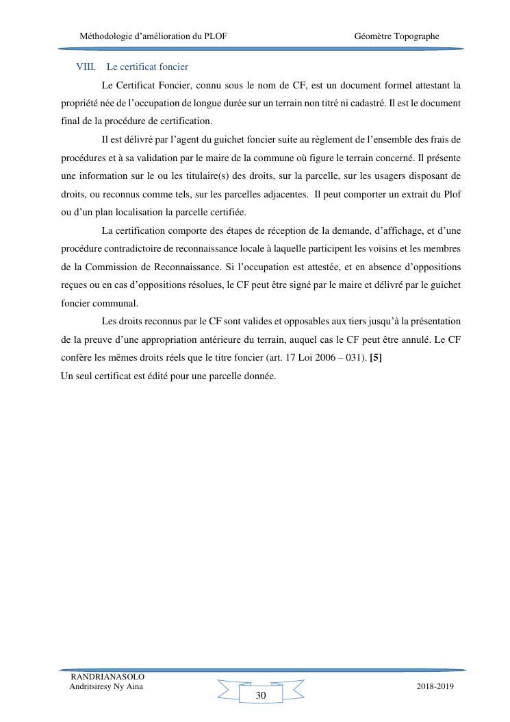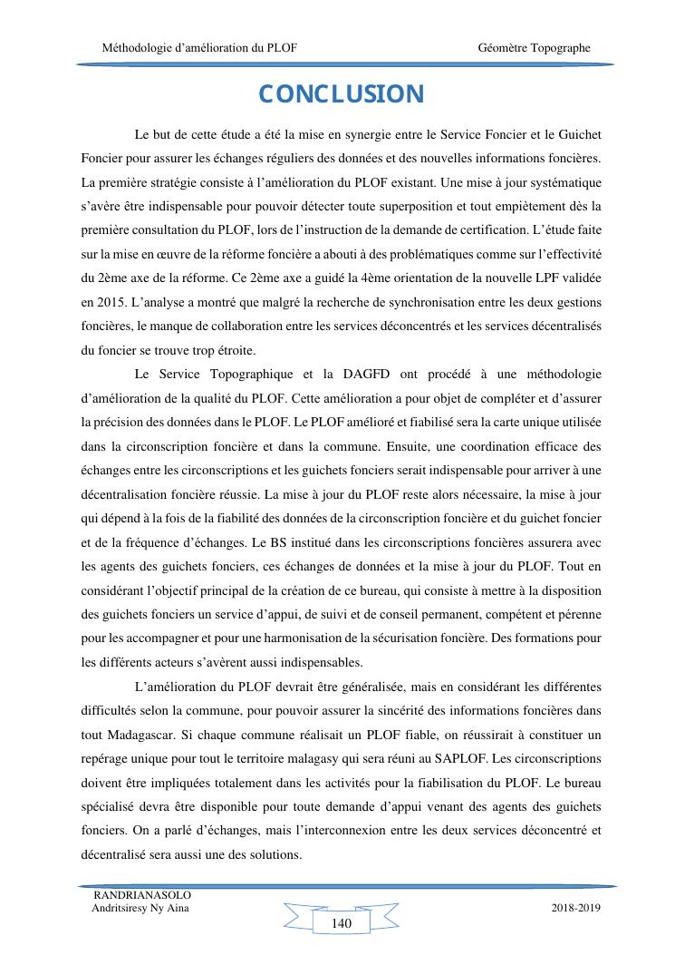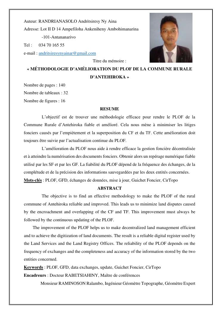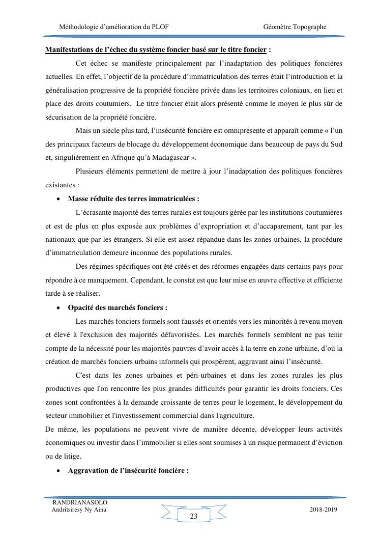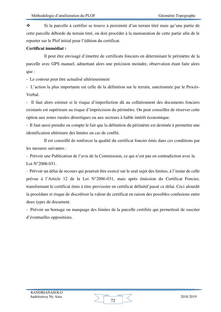 méthodologie d'amélioration du plan local d'occupation foncière de la commune rurale d'antehiroka