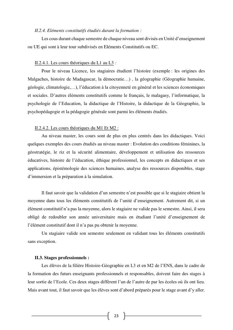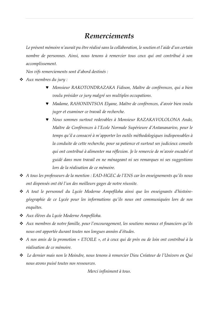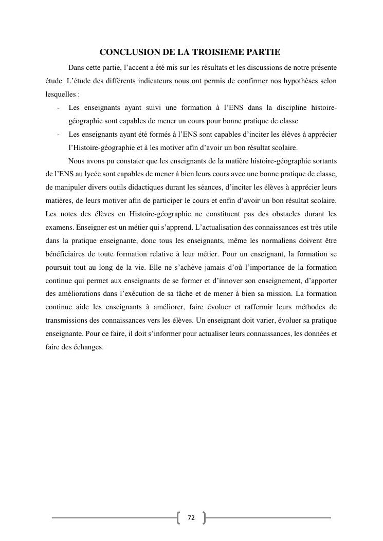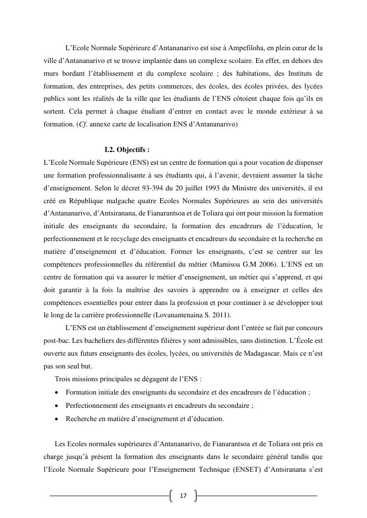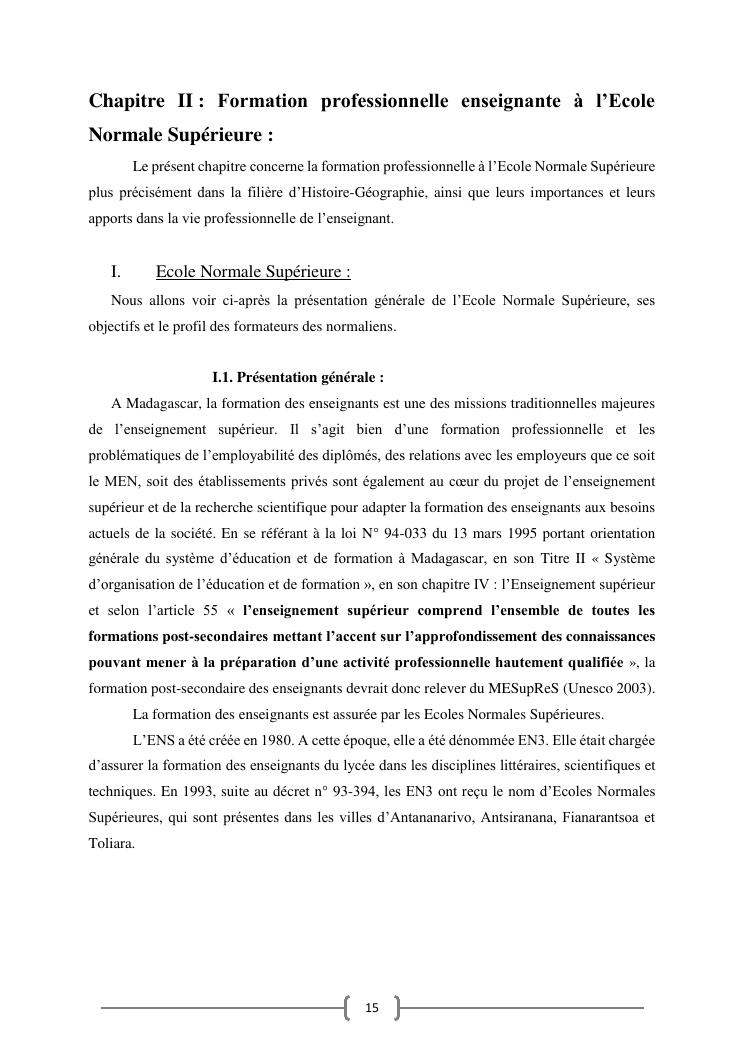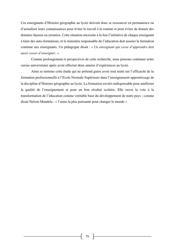 l'efficacite de la formation professionnelle a l'ecole normale superieure dans l'enseignement-apprentissage de l'histoire geographie en classe terminales » : cas du lycee moderne ampefiloha.