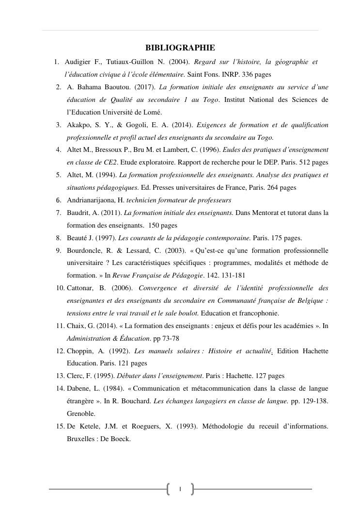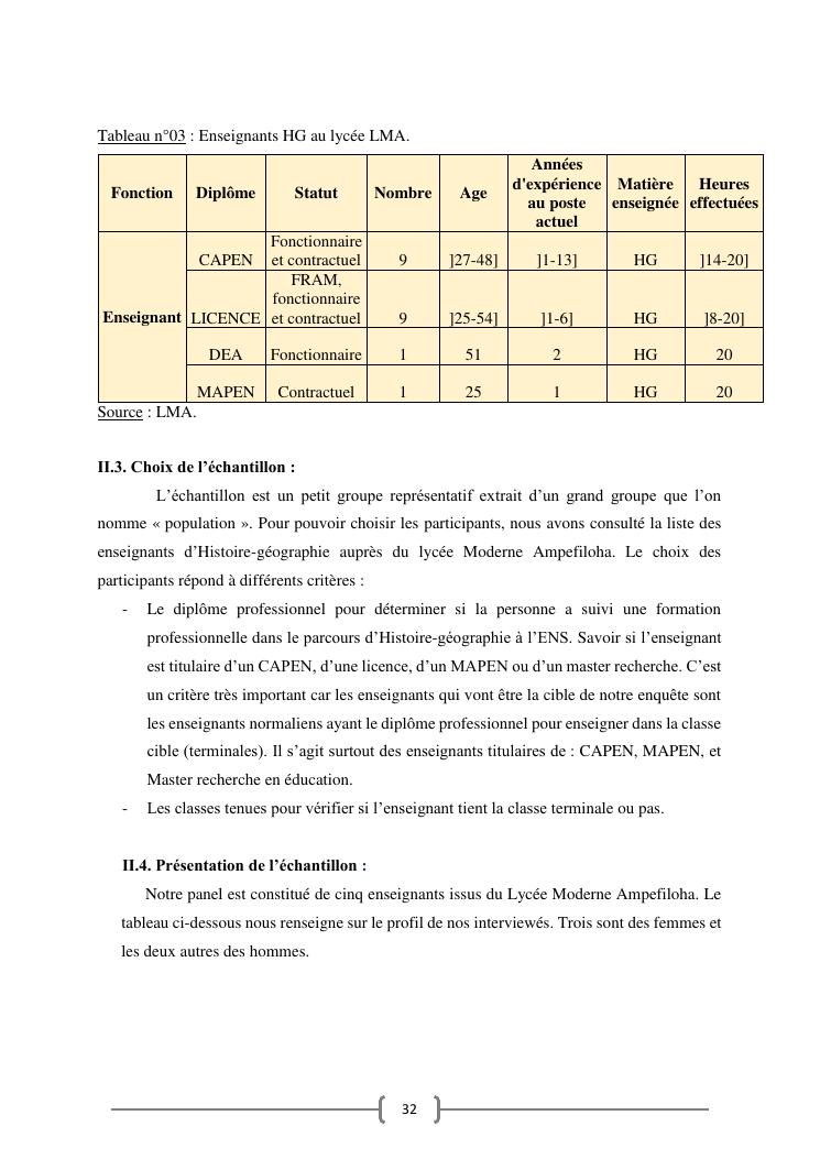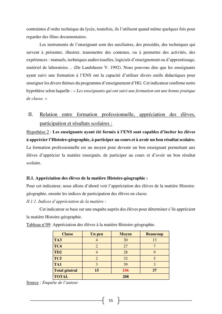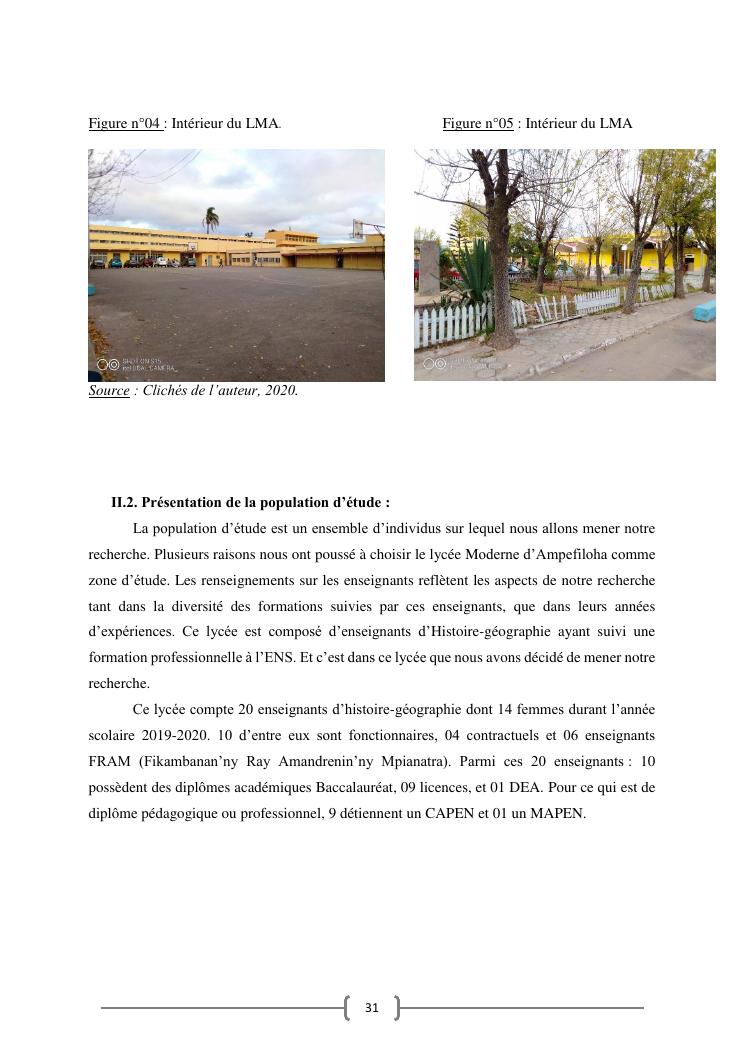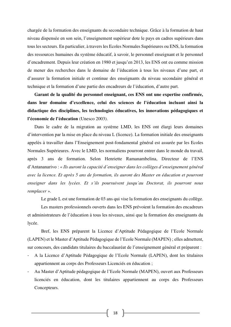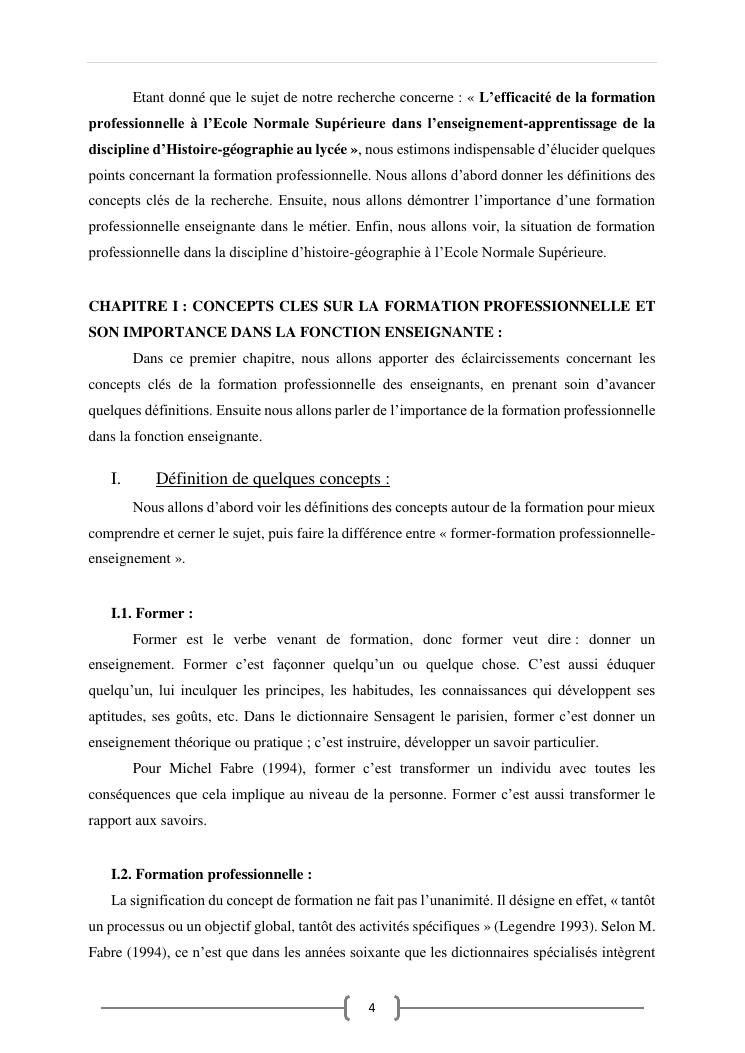 l'efficacite de la formation professionnelle a l'ecole normale superieure dans l'enseignement-apprentissage de l'histoire geographie en classe terminales » : cas du lycee moderne ampefiloha.