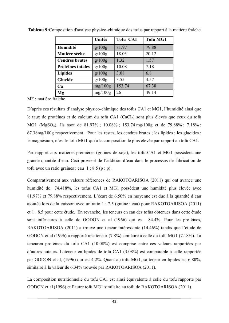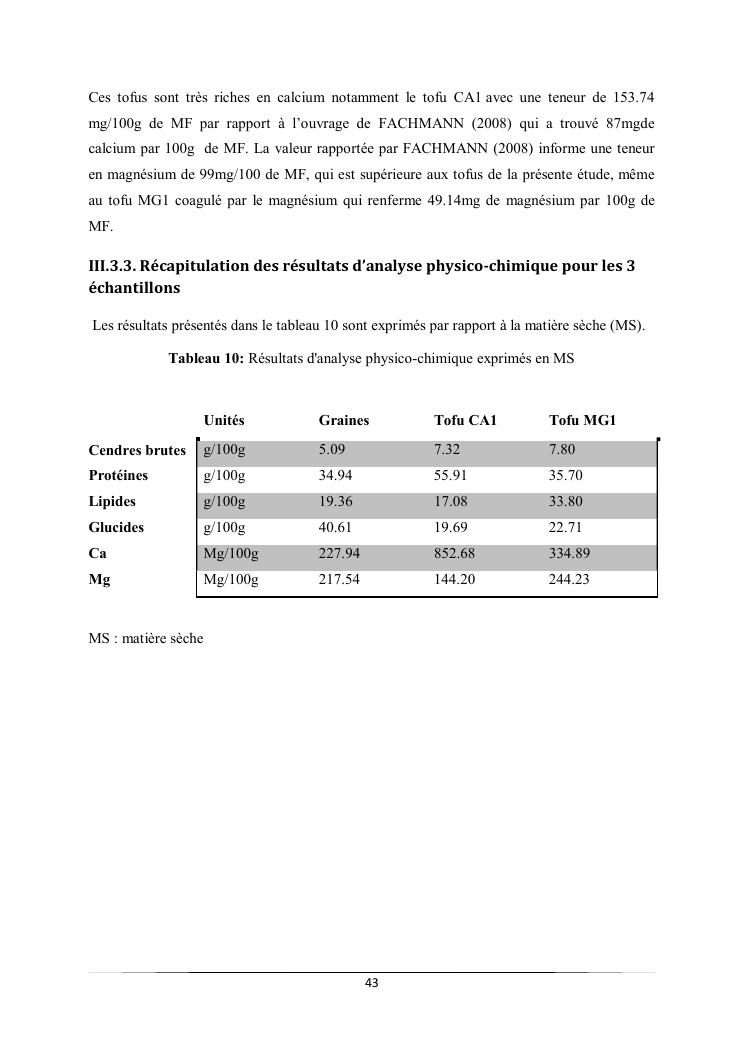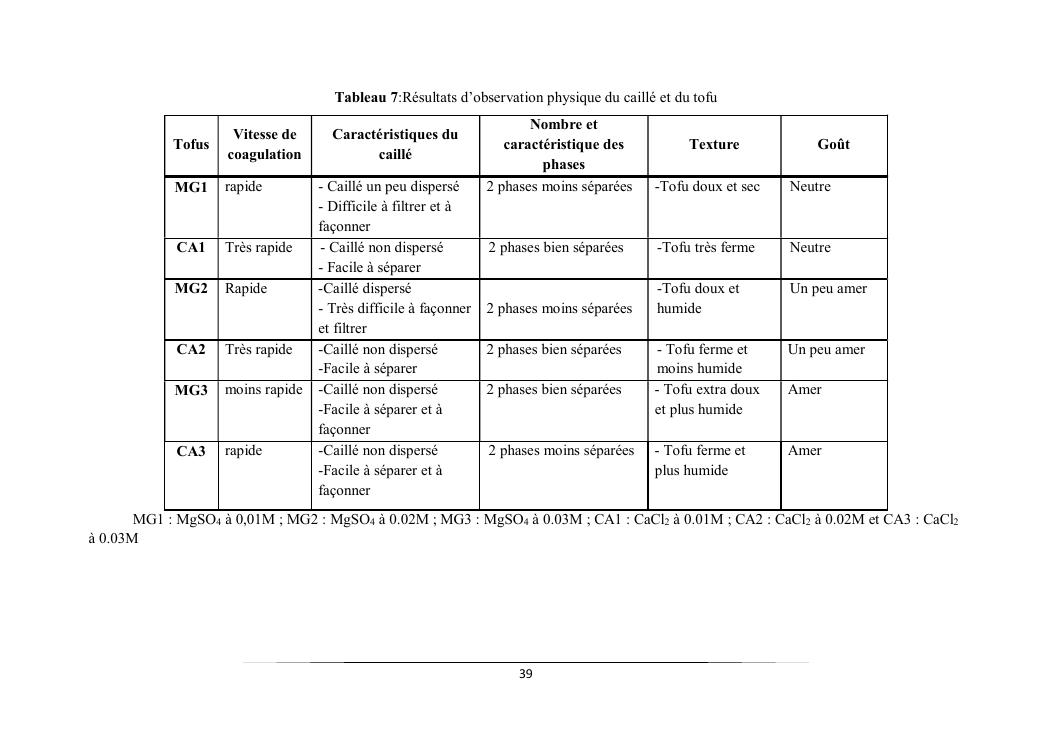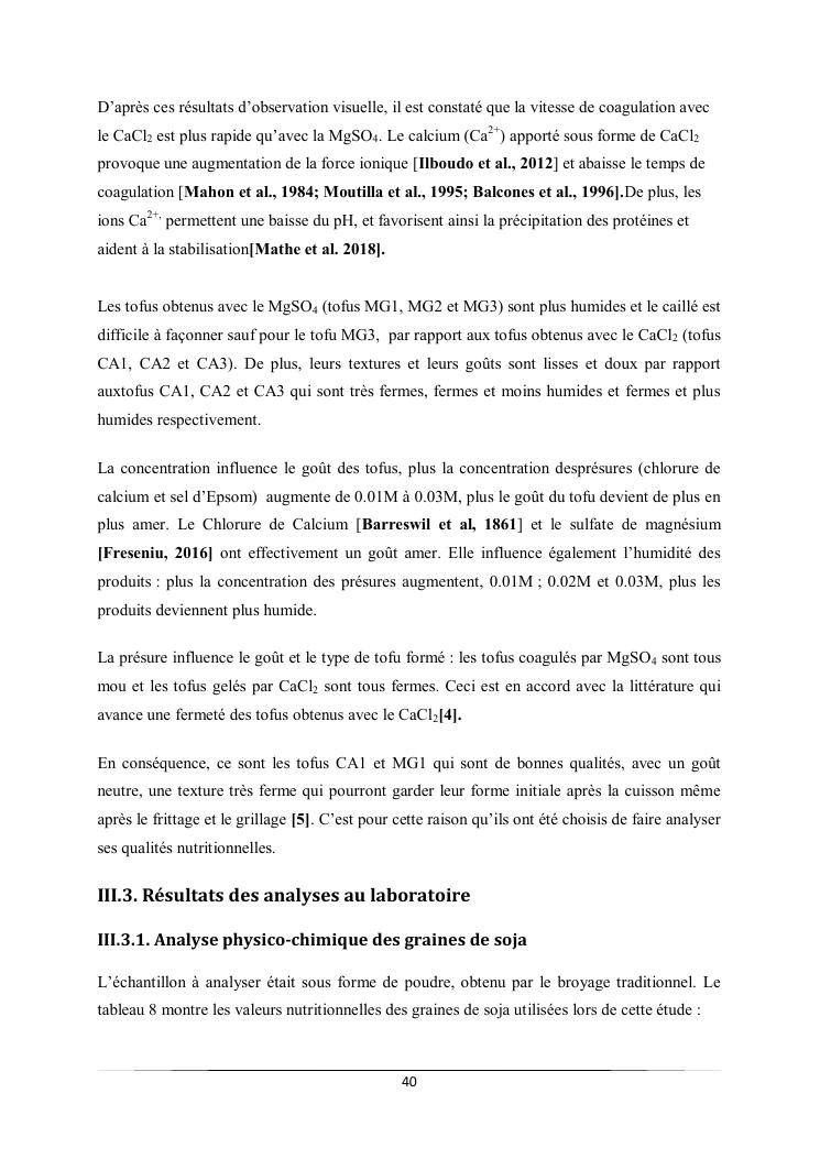 caractéristiques et qualité physico-chimique de deux types de tofus obtenus avec deux types de présures