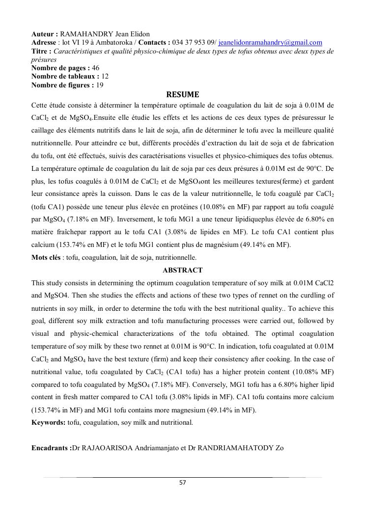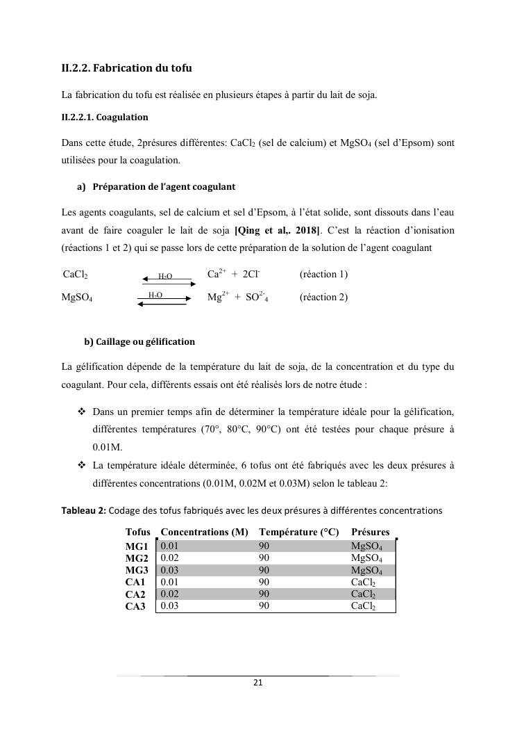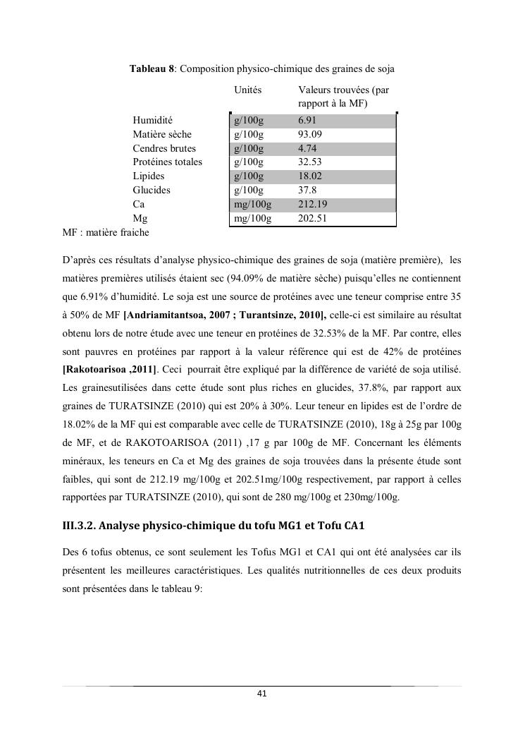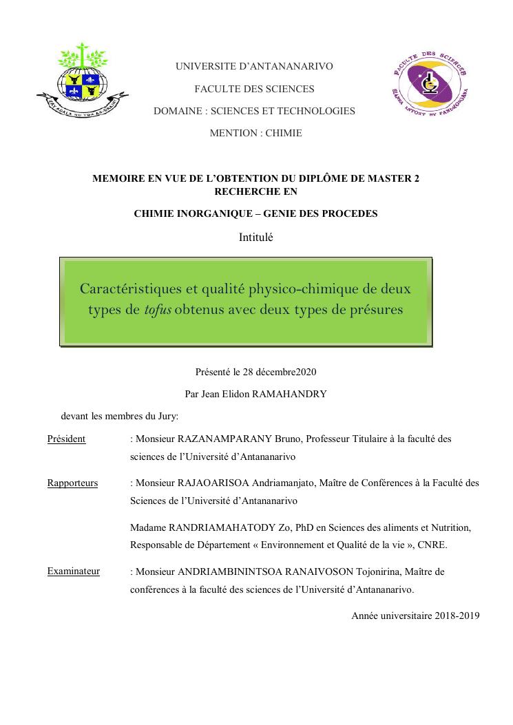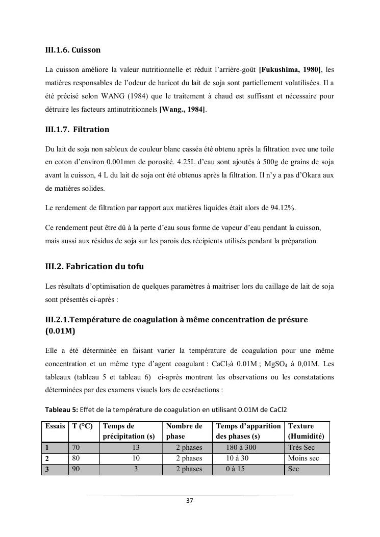 caractéristiques et qualité physico-chimique de deux types de tofus obtenus avec deux types de présures