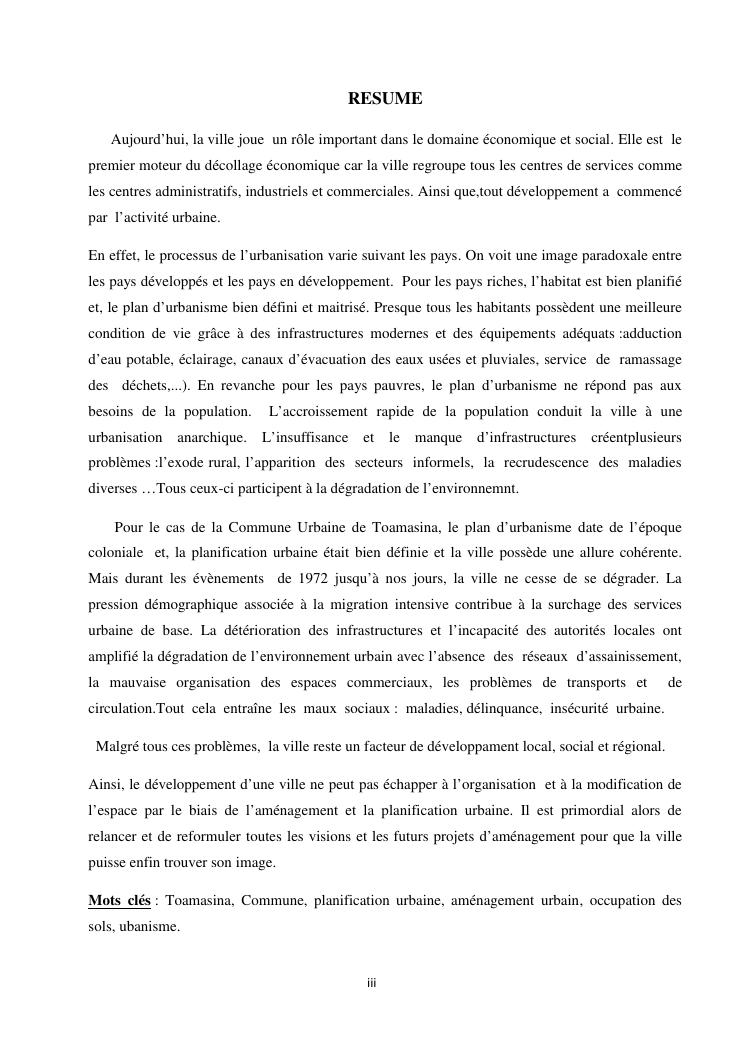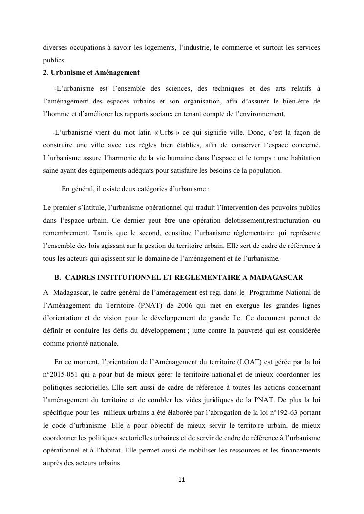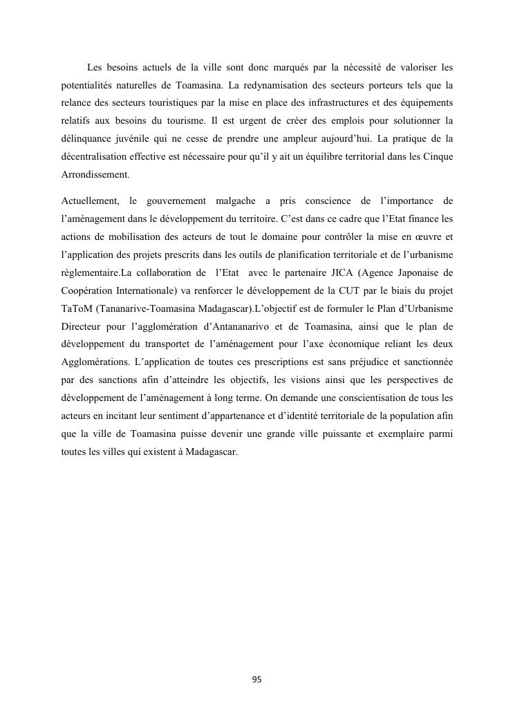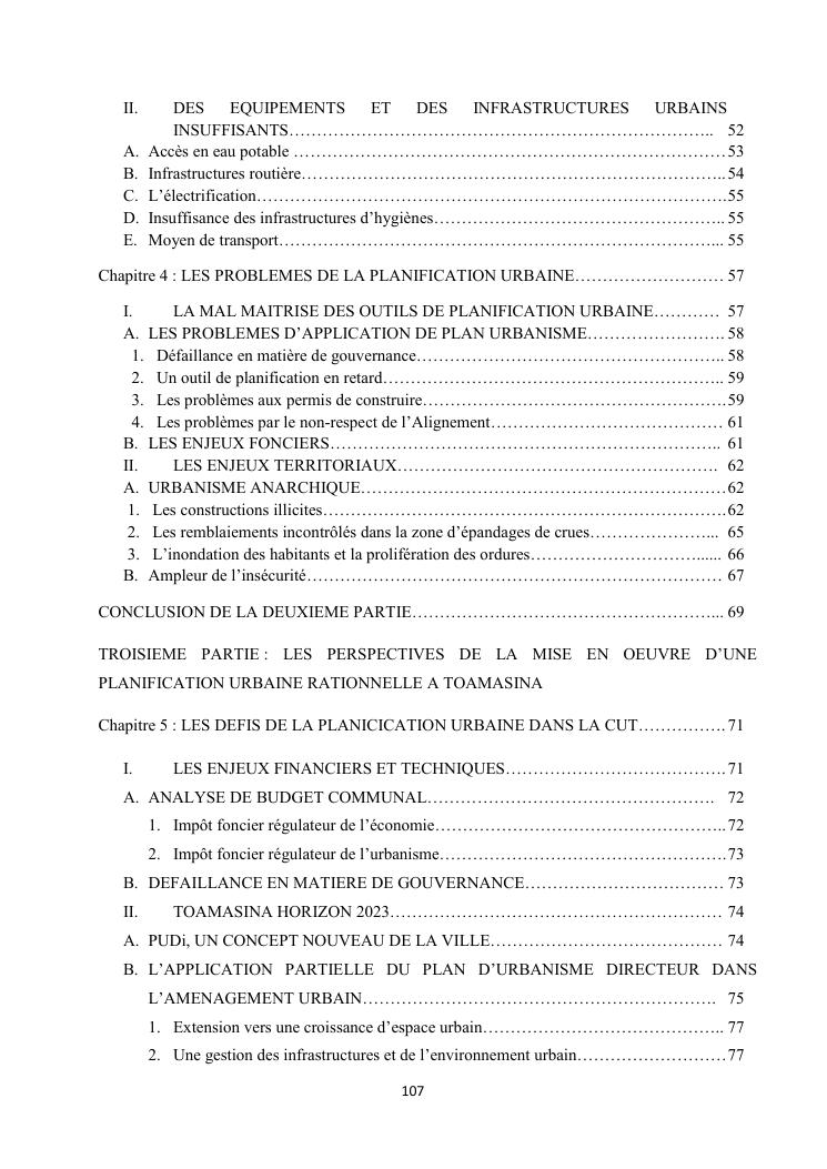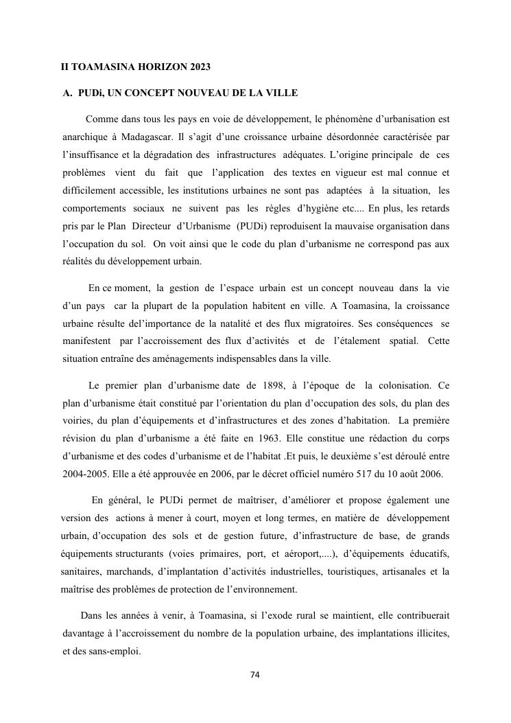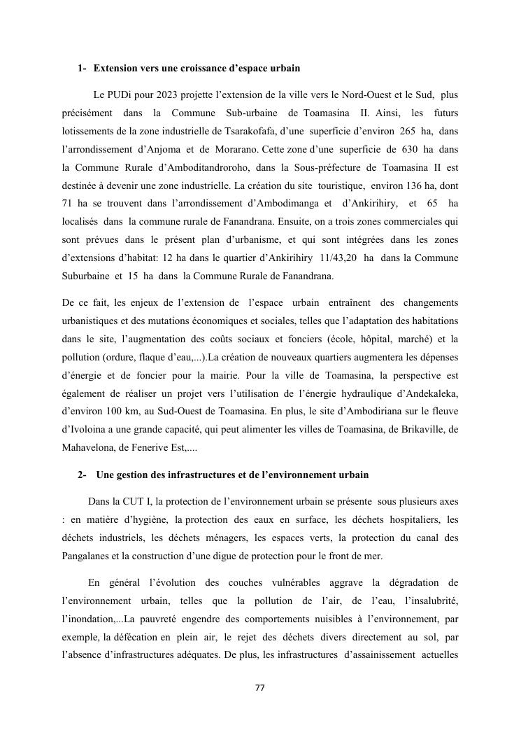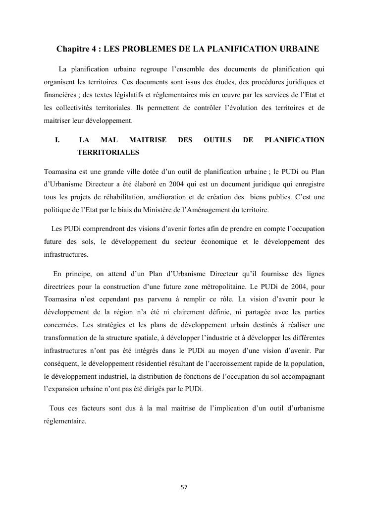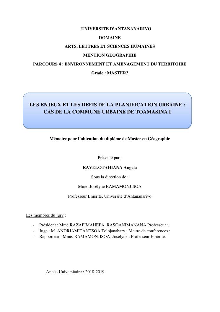 les enjeux et les defis de la planification urbaine : cas de la commune urbaine de toamasina