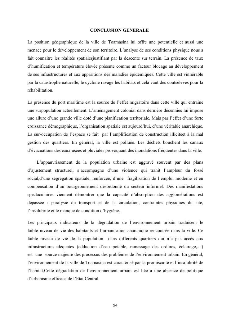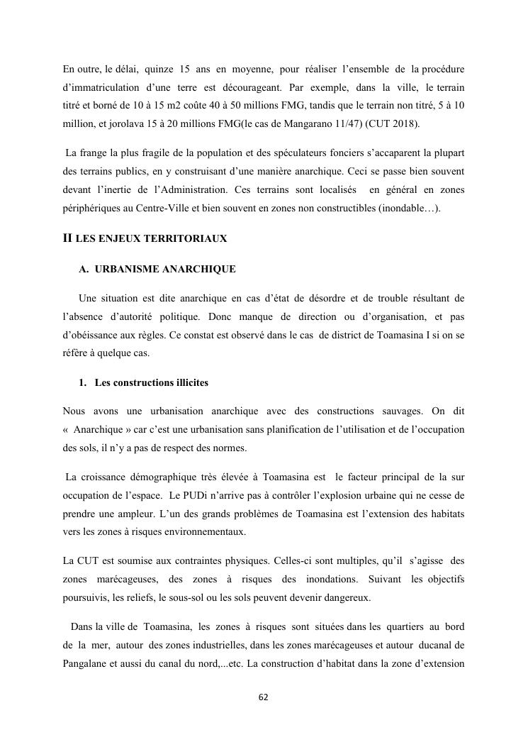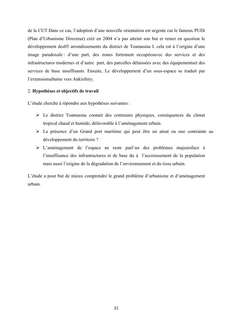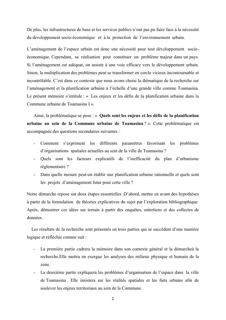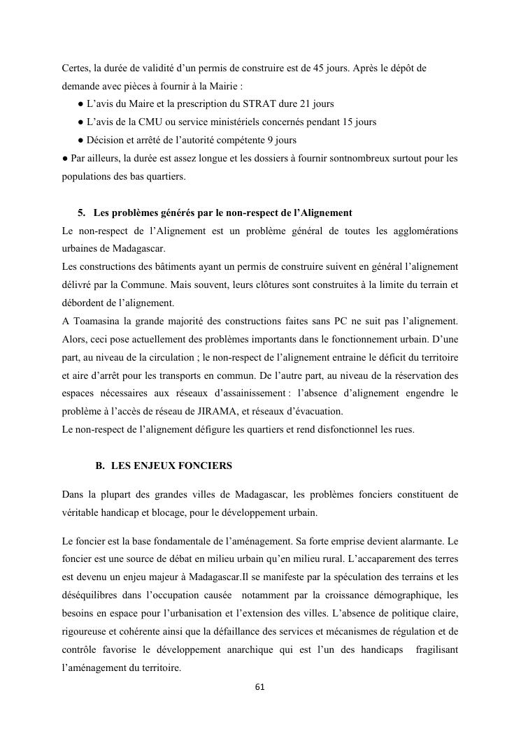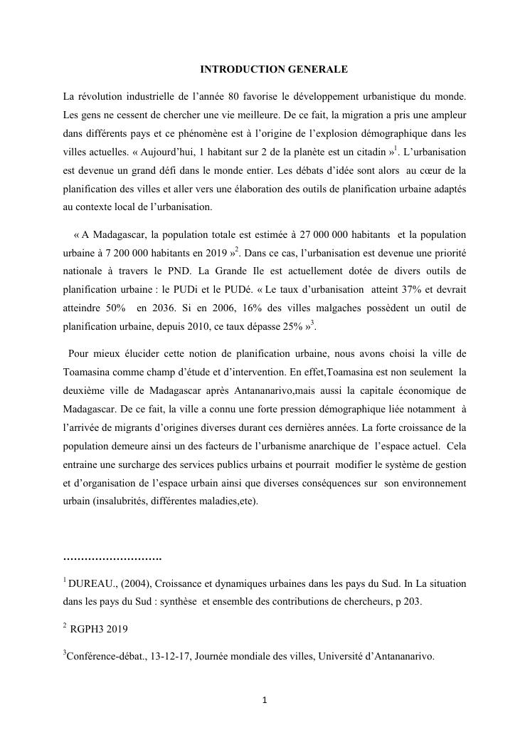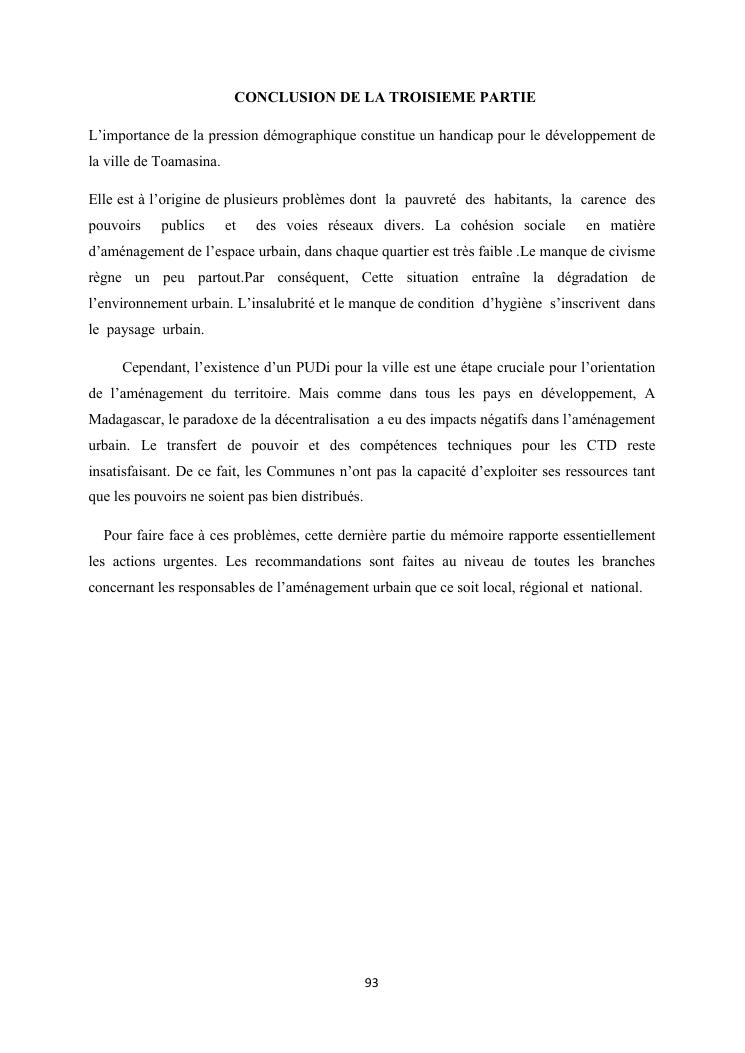 les enjeux et les defis de la planification urbaine : cas de la commune urbaine de toamasina