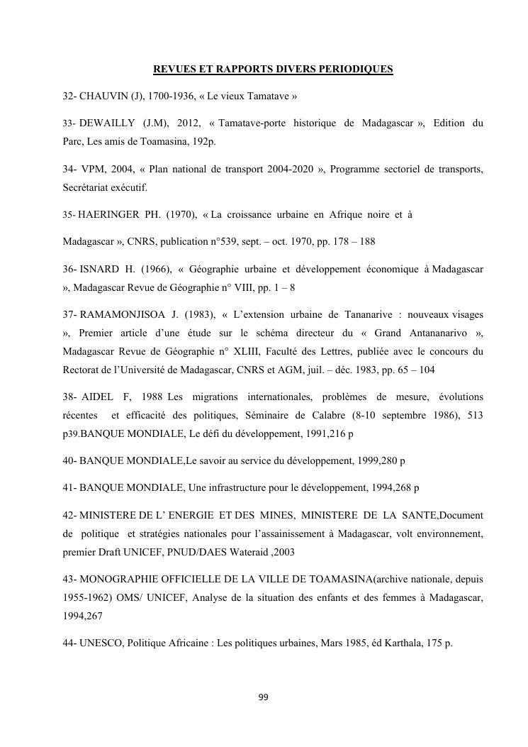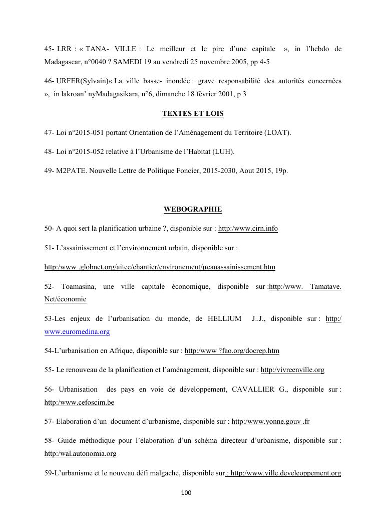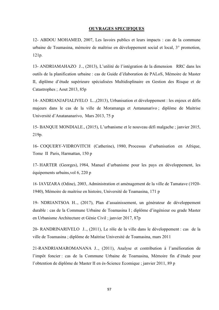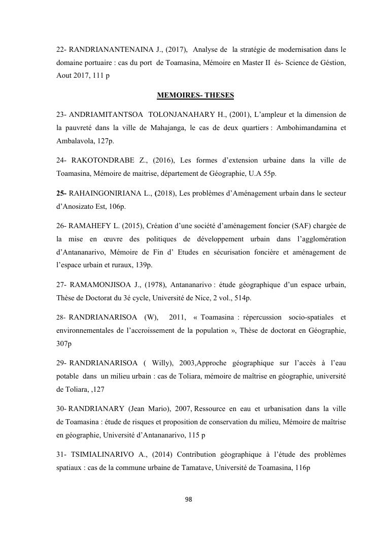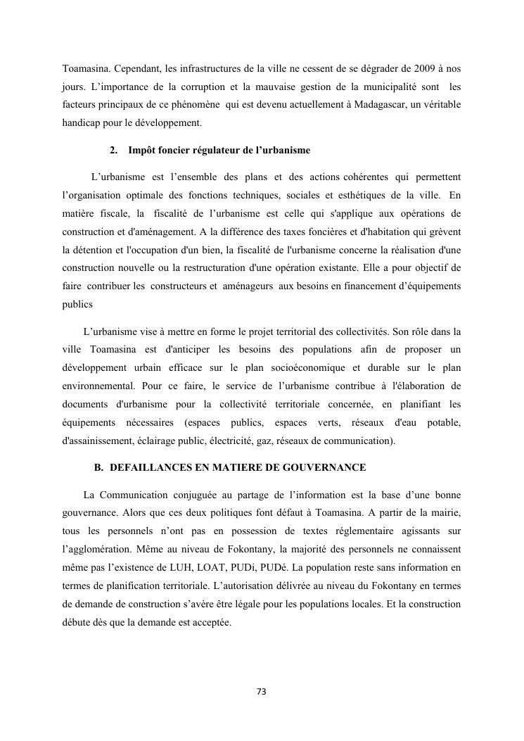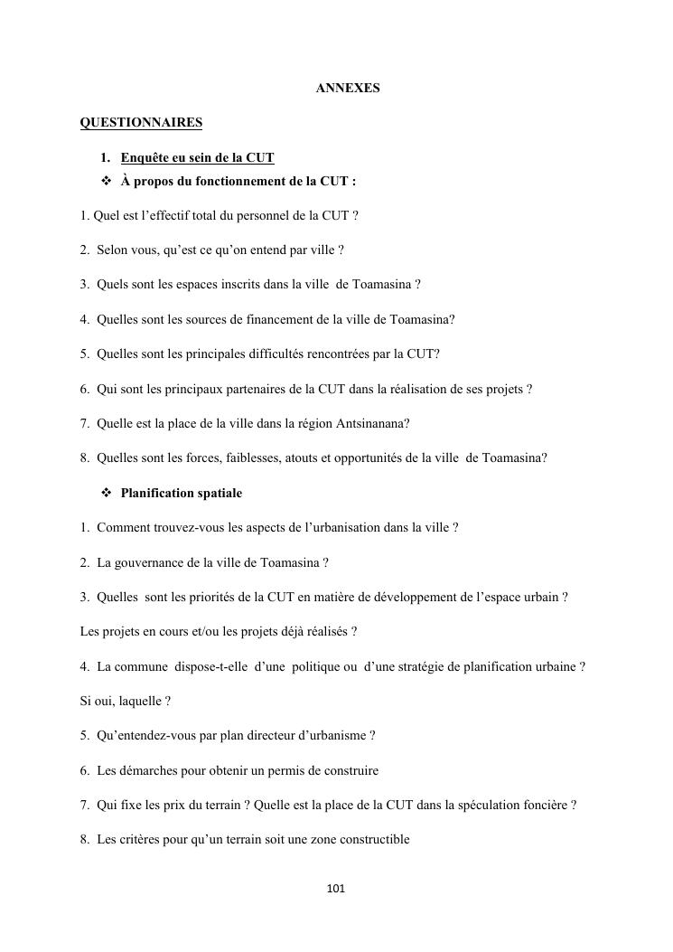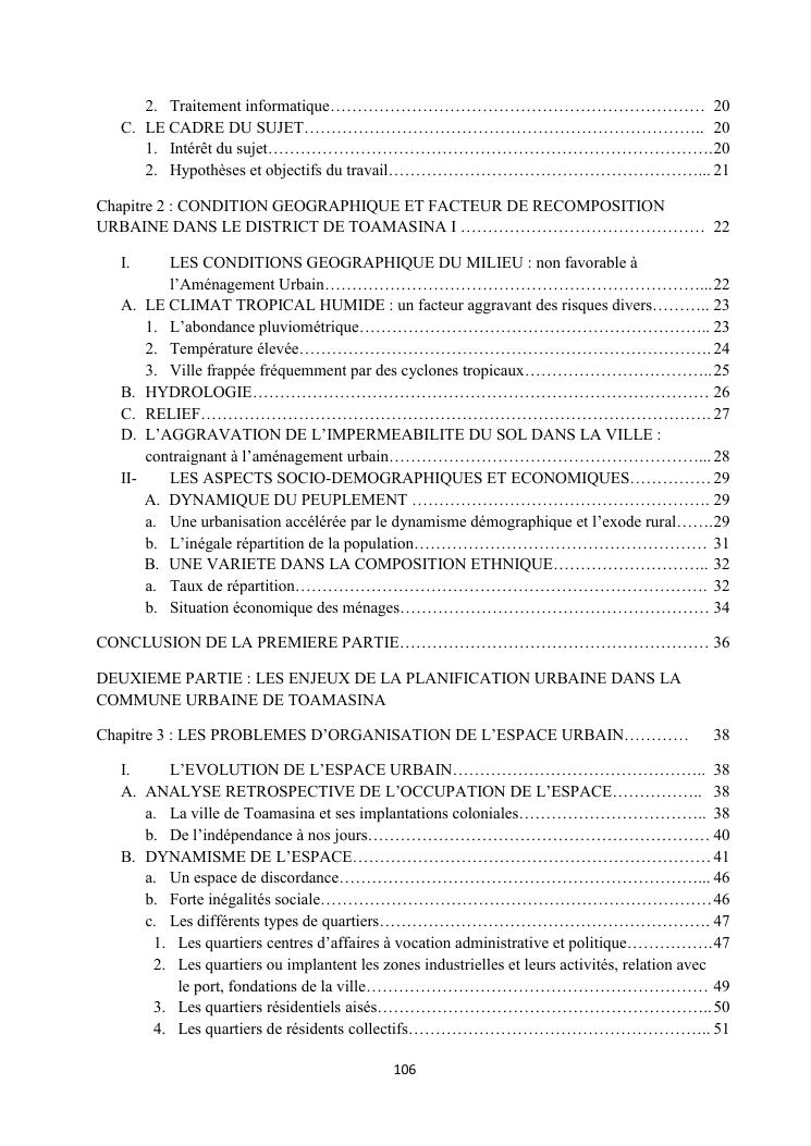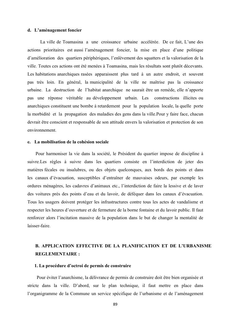 les enjeux et les defis de la planification urbaine : cas de la commune urbaine de toamasina