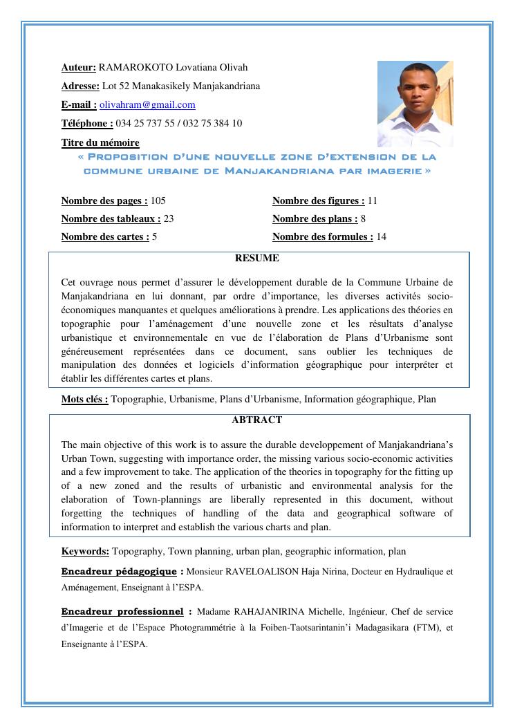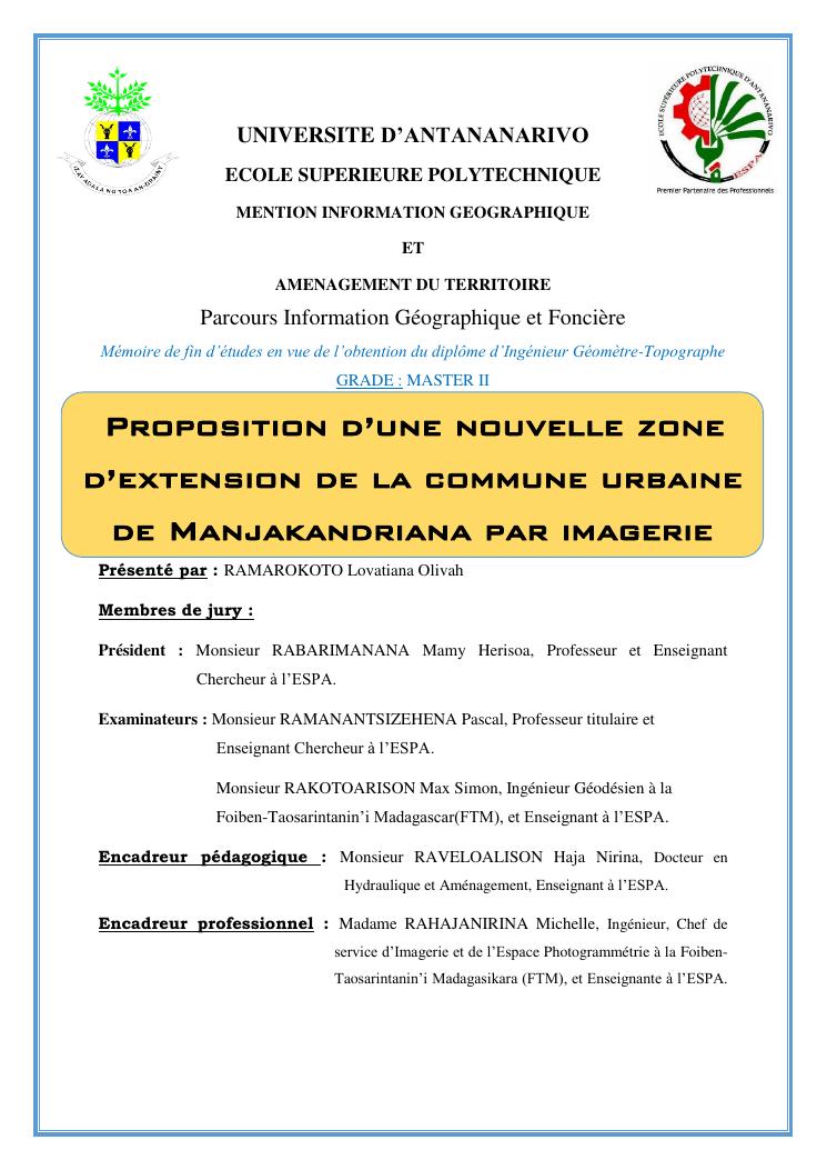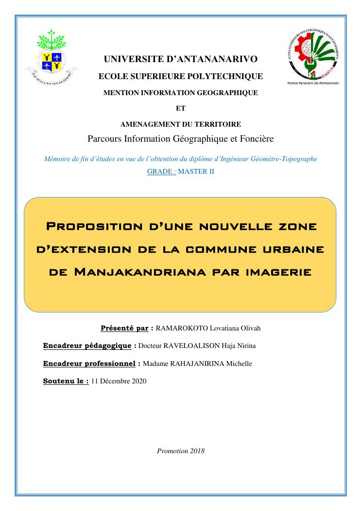 proposition d'une nouvelle zone d'extension de la commune urbaine de manjakandriana par imagerie