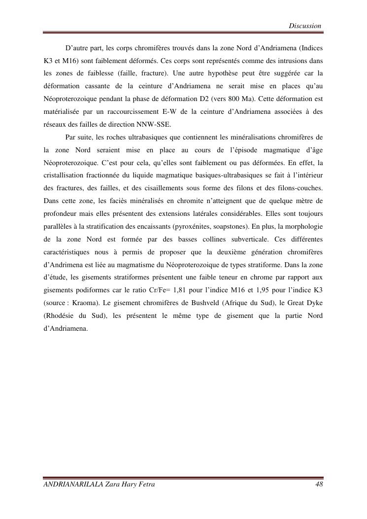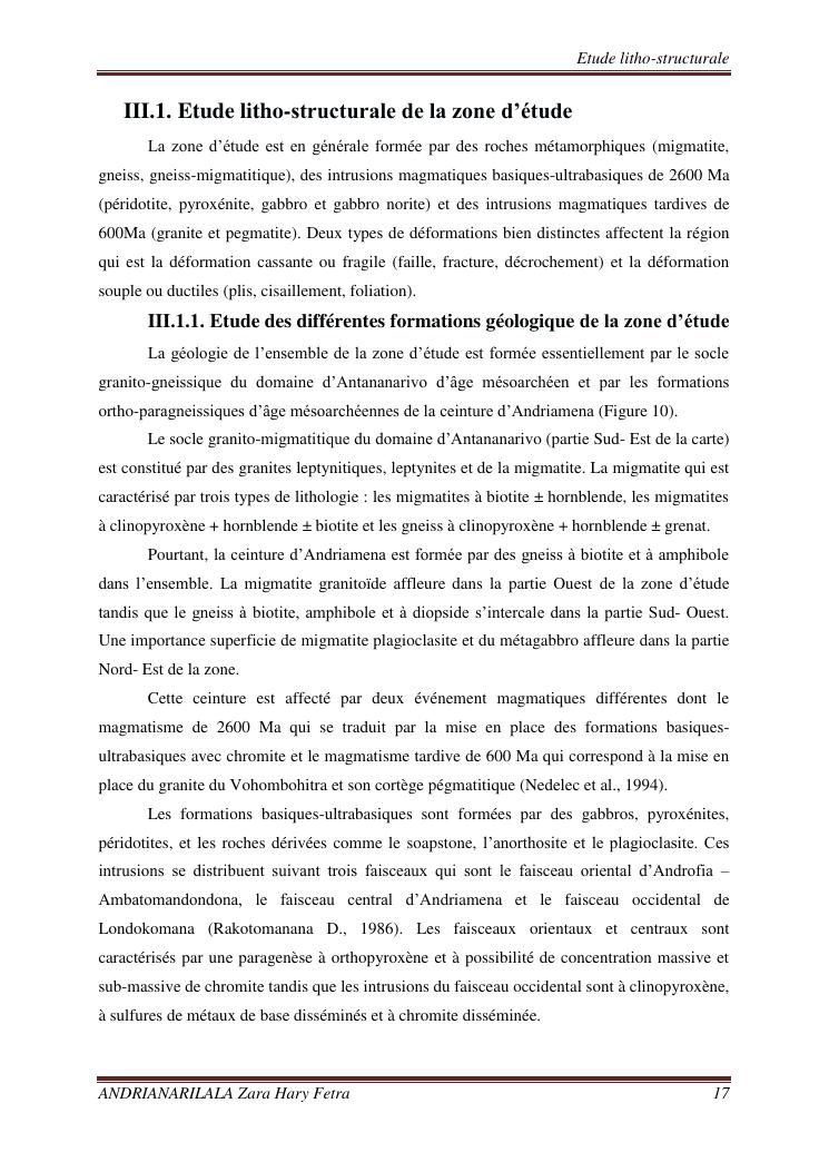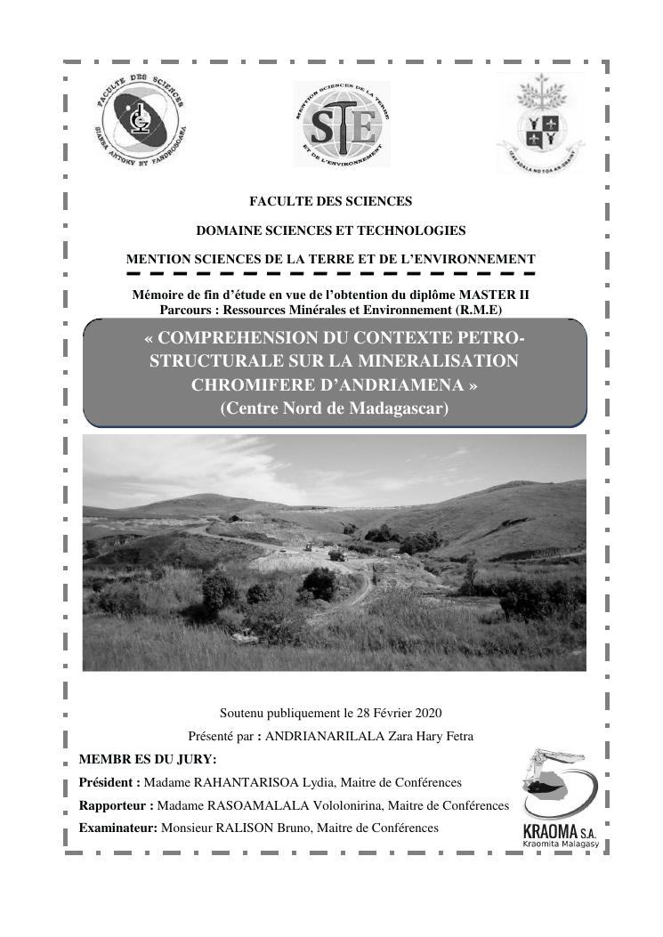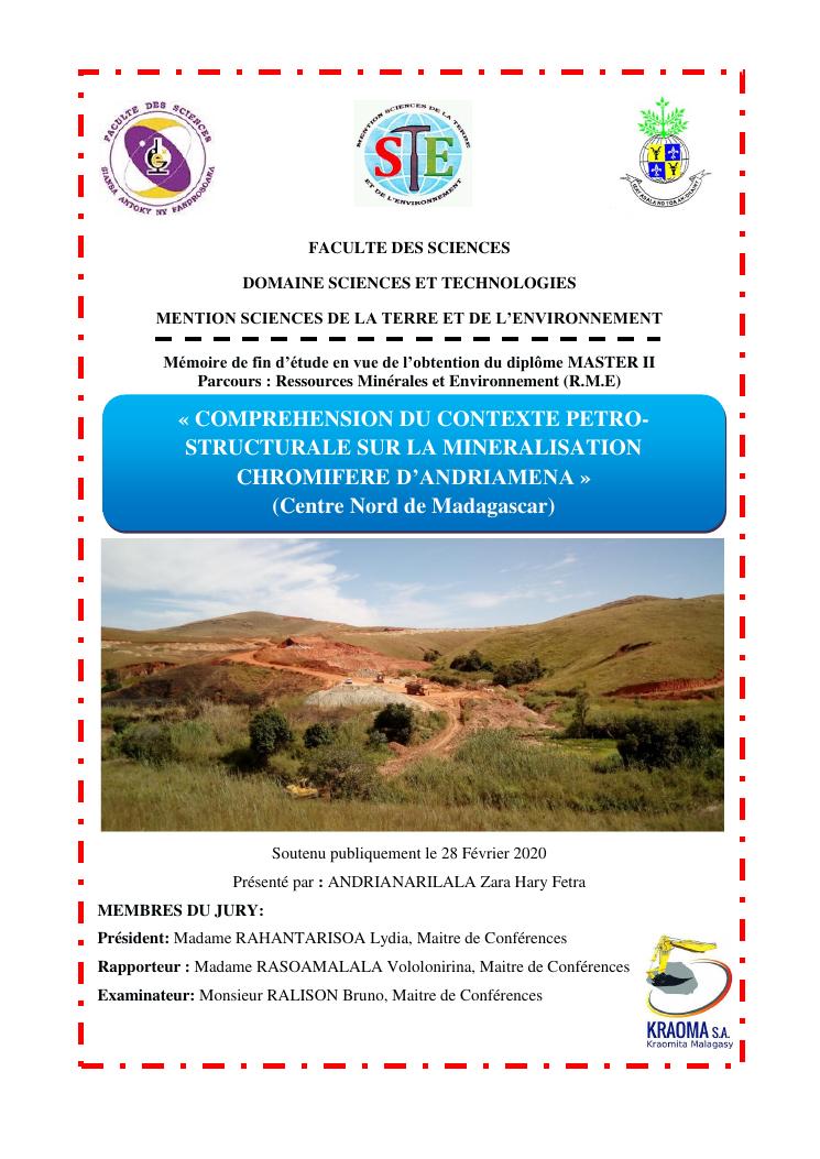 comprehension du contexte petro-structurale sur la mineralisation chromifere d'andriamena (centre nord de madagascar)