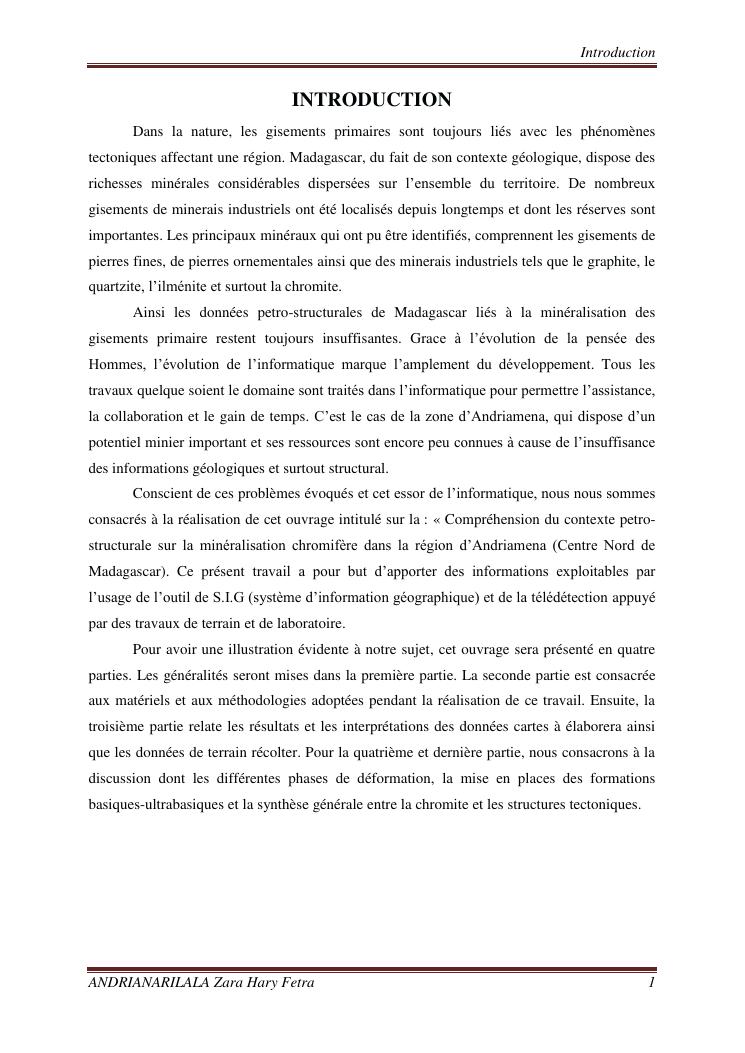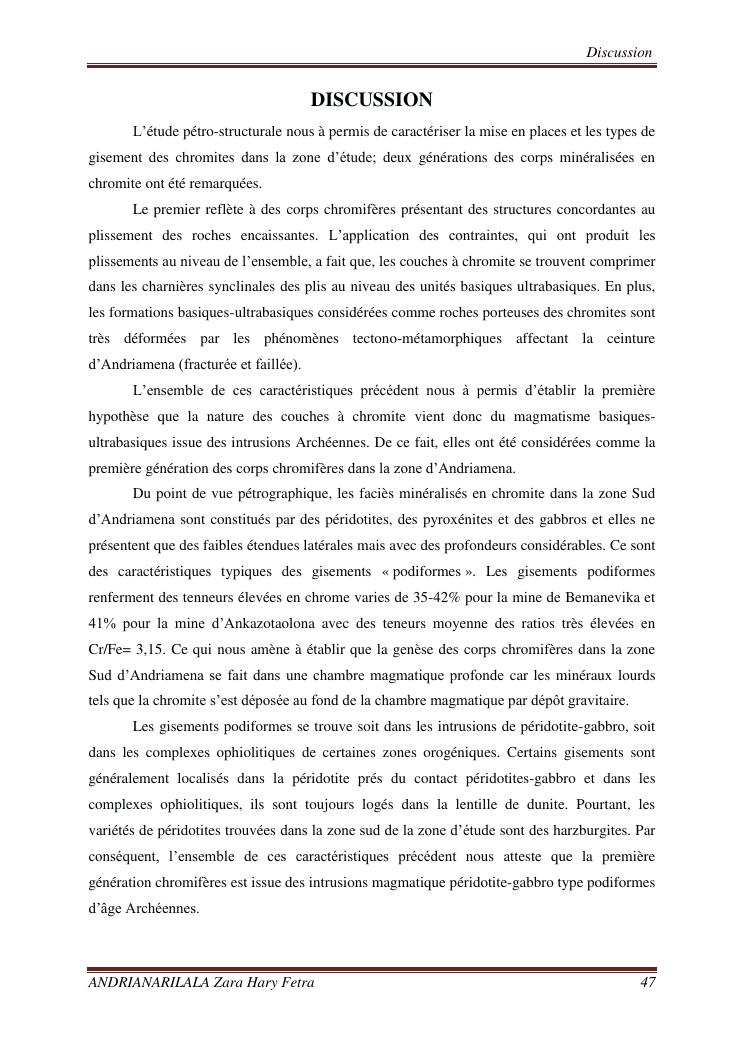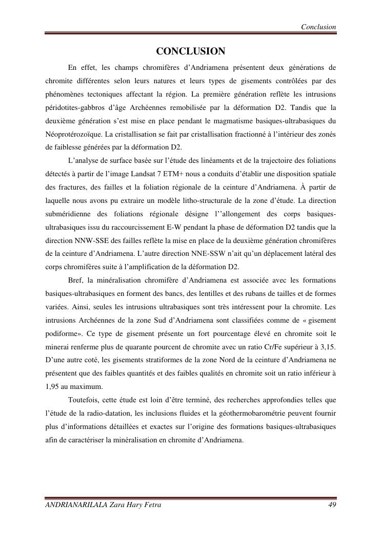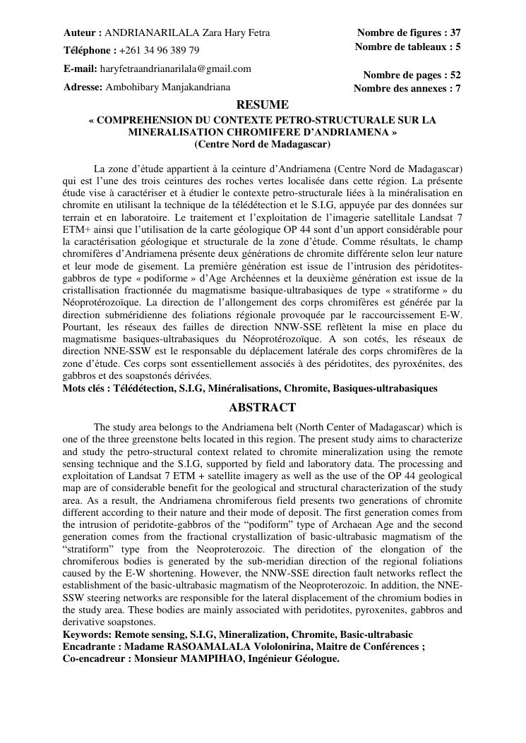 comprehension du contexte petro-structurale sur la mineralisation chromifere d'andriamena (centre nord de madagascar)