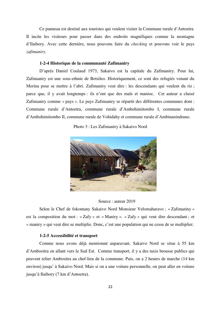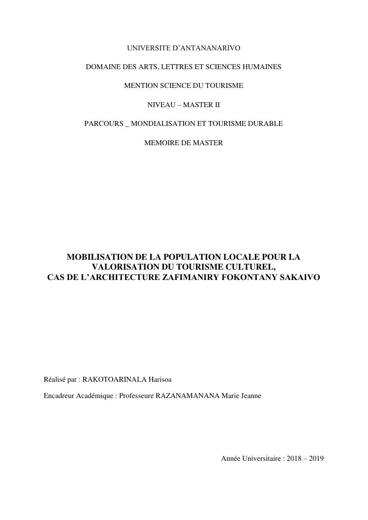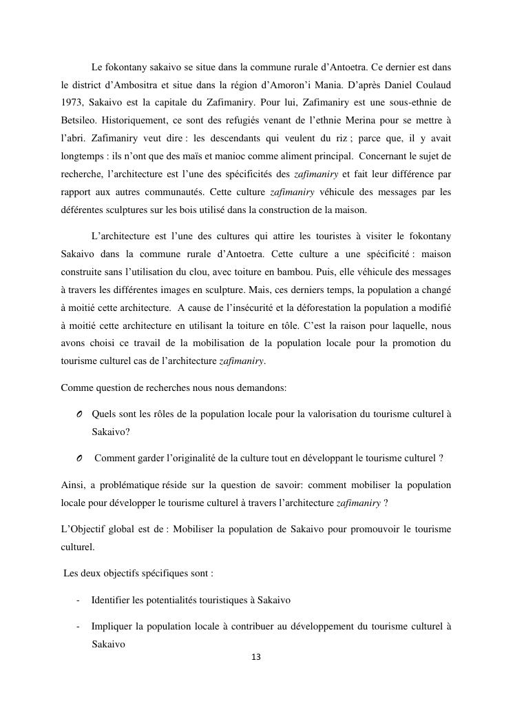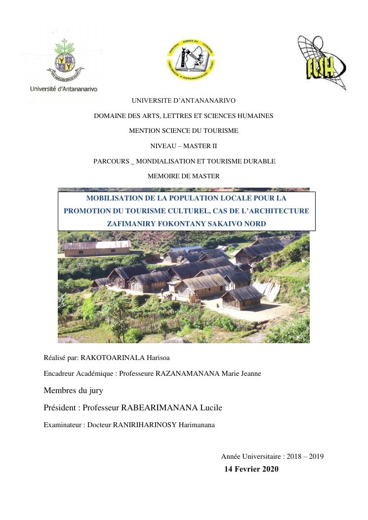 mobilisation de la population locale pour la promotion du tourisme culturel, cas de l'architecture zafimaniry fokontany sakaivo nord
