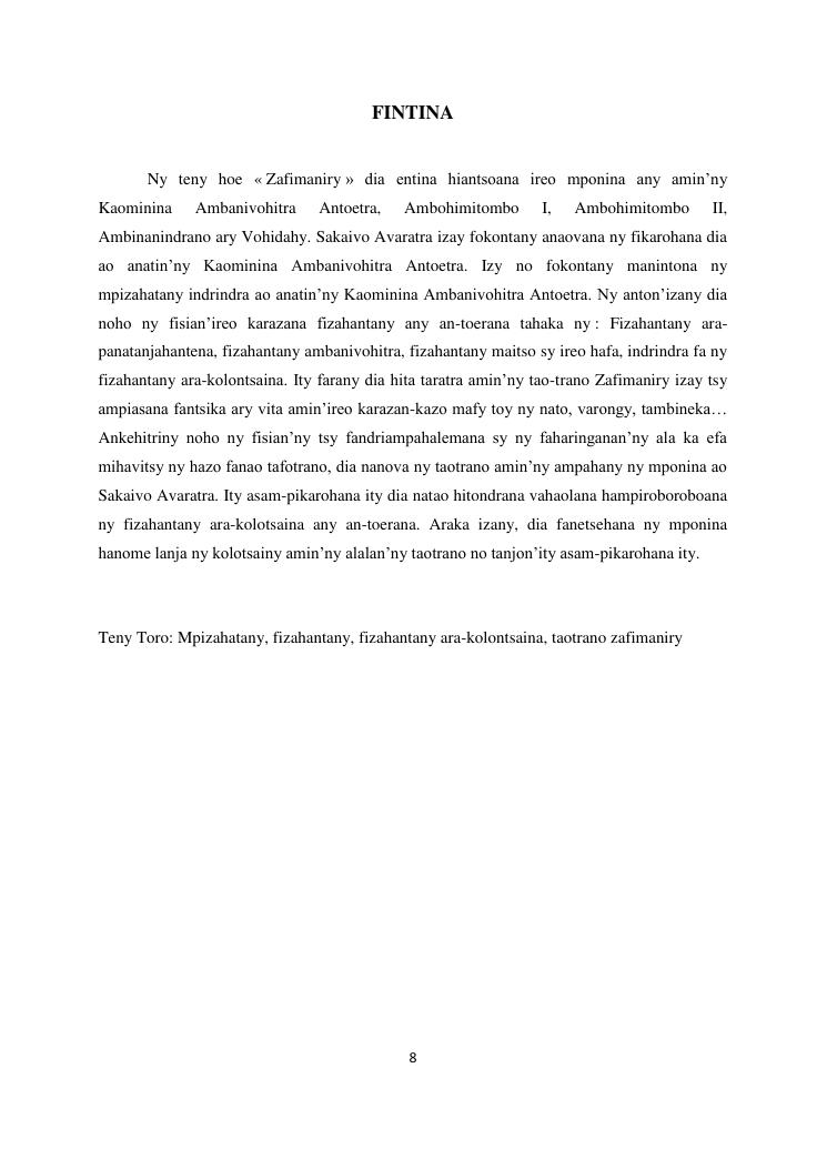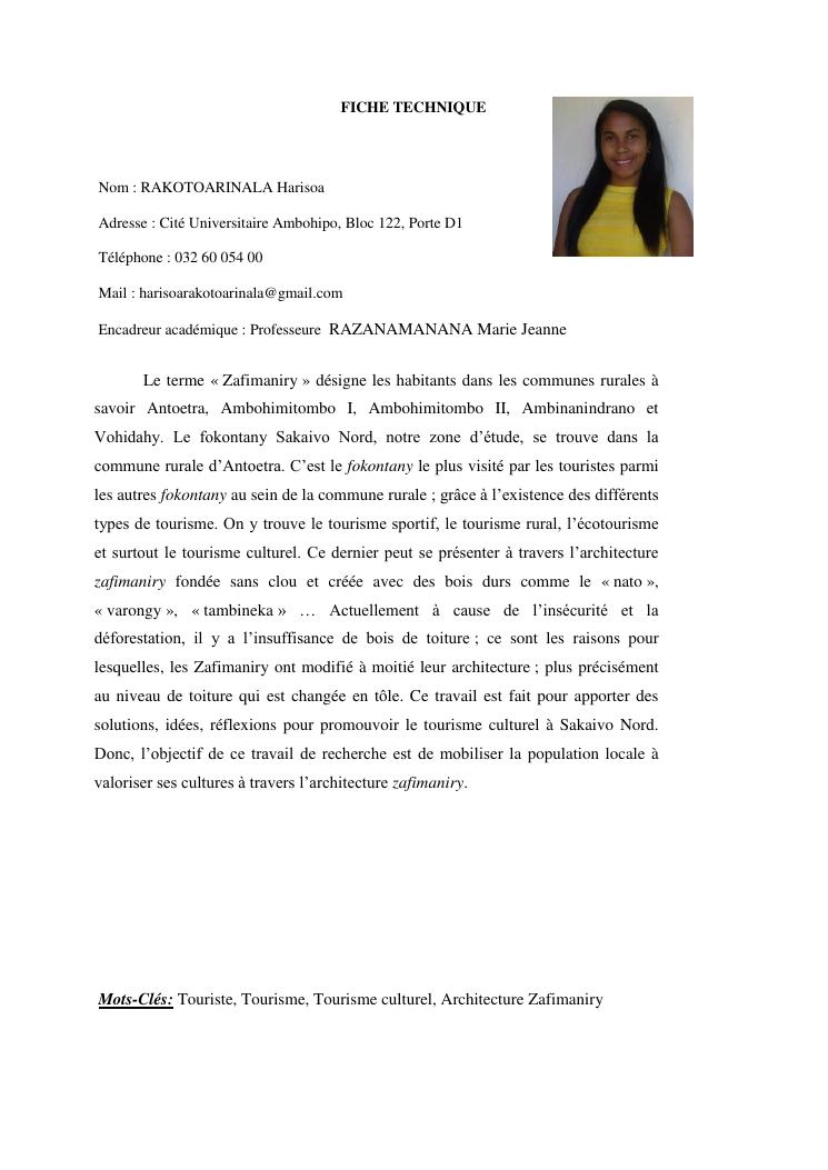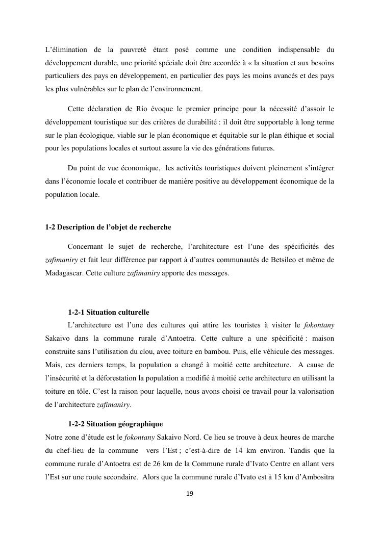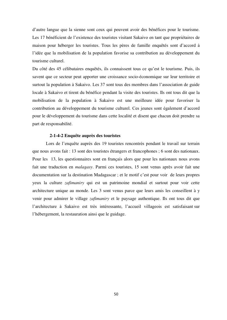 mobilisation de la population locale pour la promotion du tourisme culturel, cas de l'architecture zafimaniry fokontany sakaivo nord