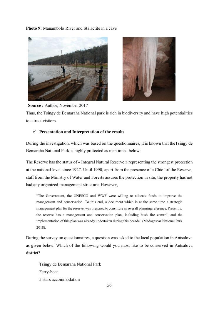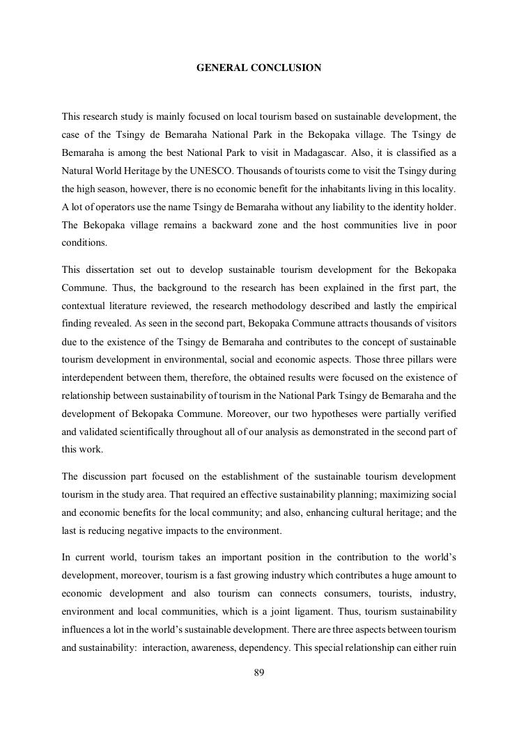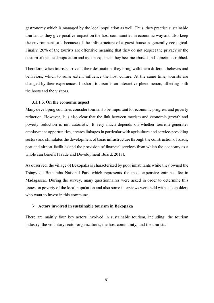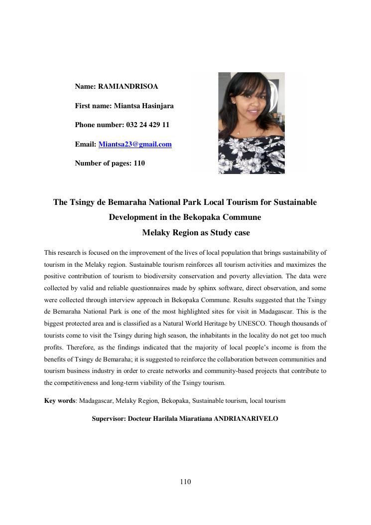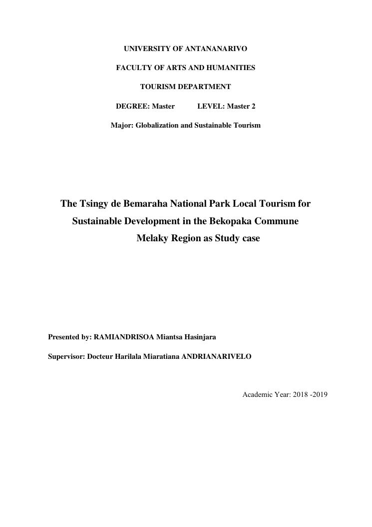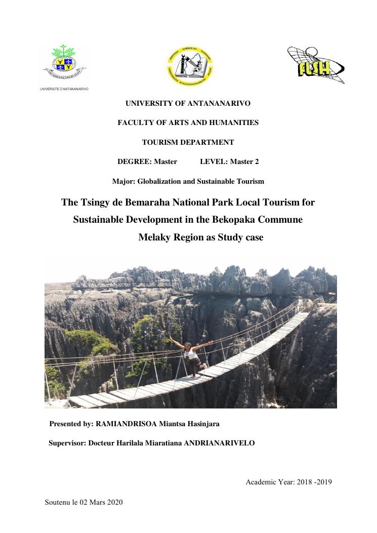 the tsingy de bemaraha national park local tourism for sustainable development in the bekopaka commune melaky region as study case