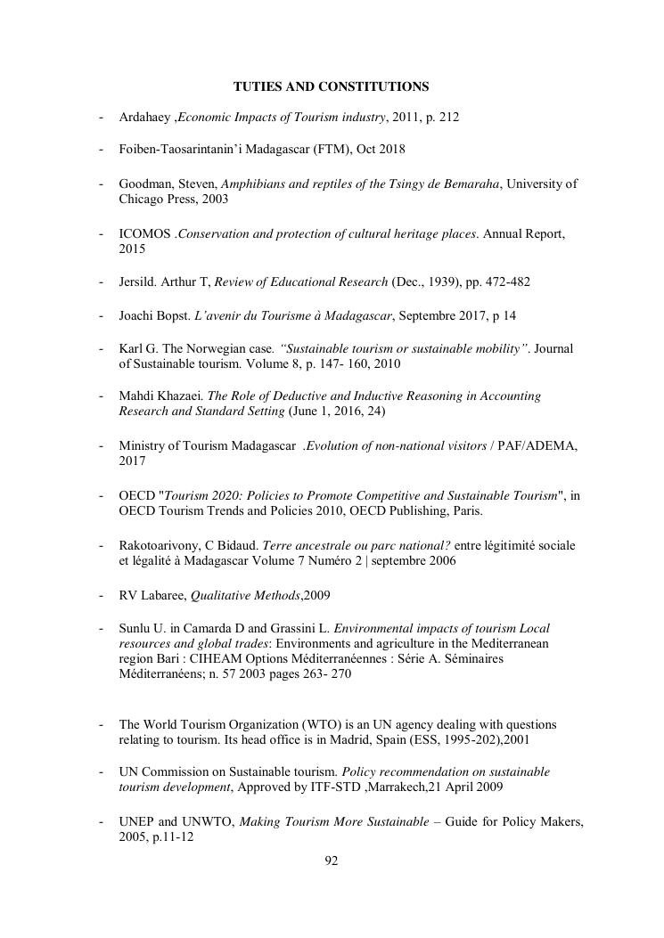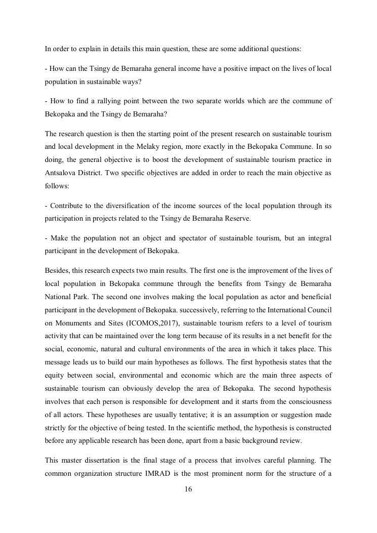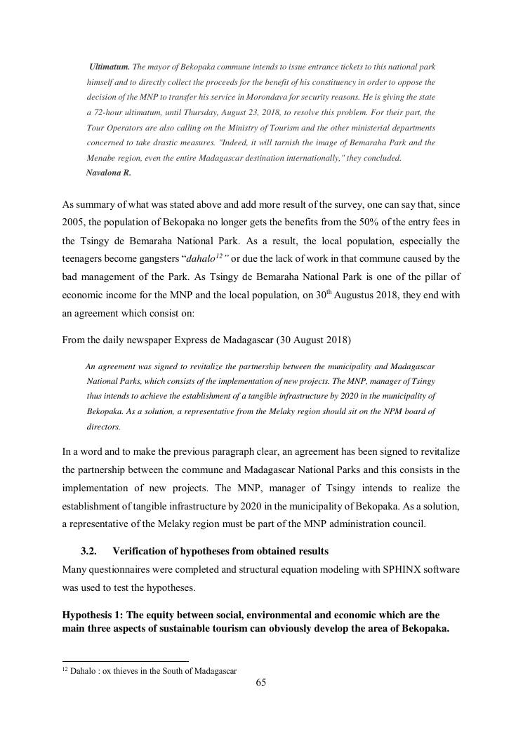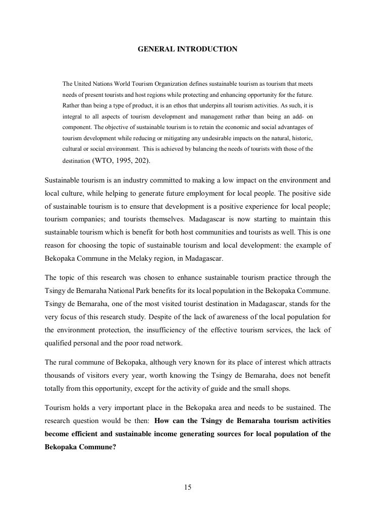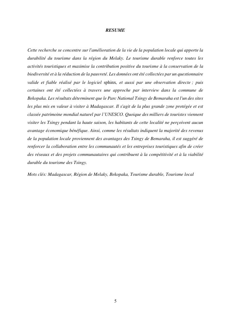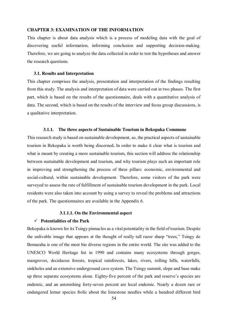 the tsingy de bemaraha national park local tourism for sustainable development in the bekopaka commune melaky region as study case