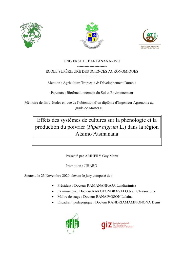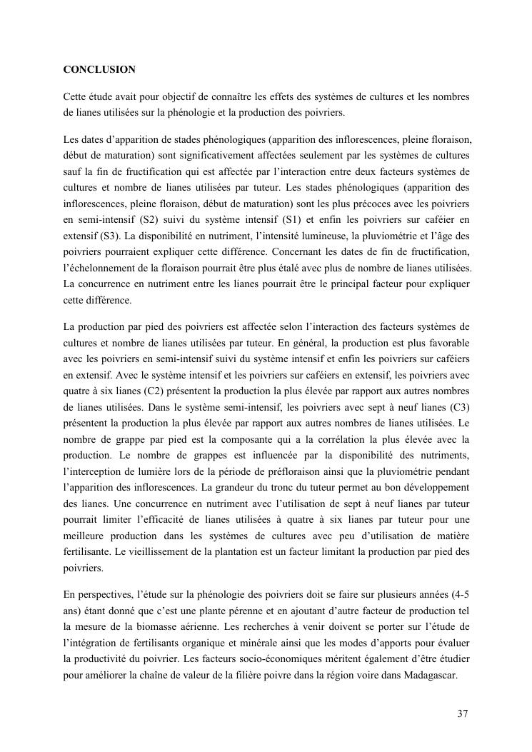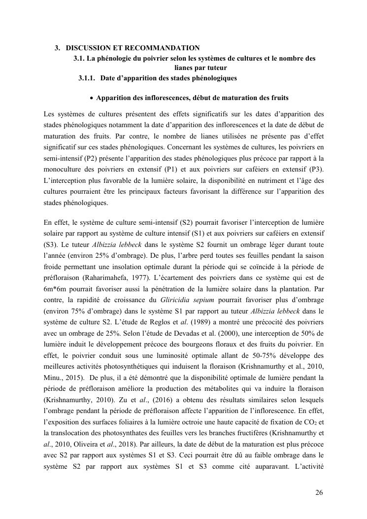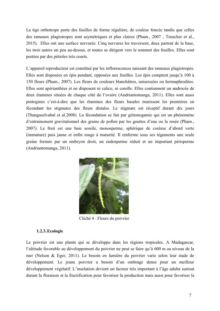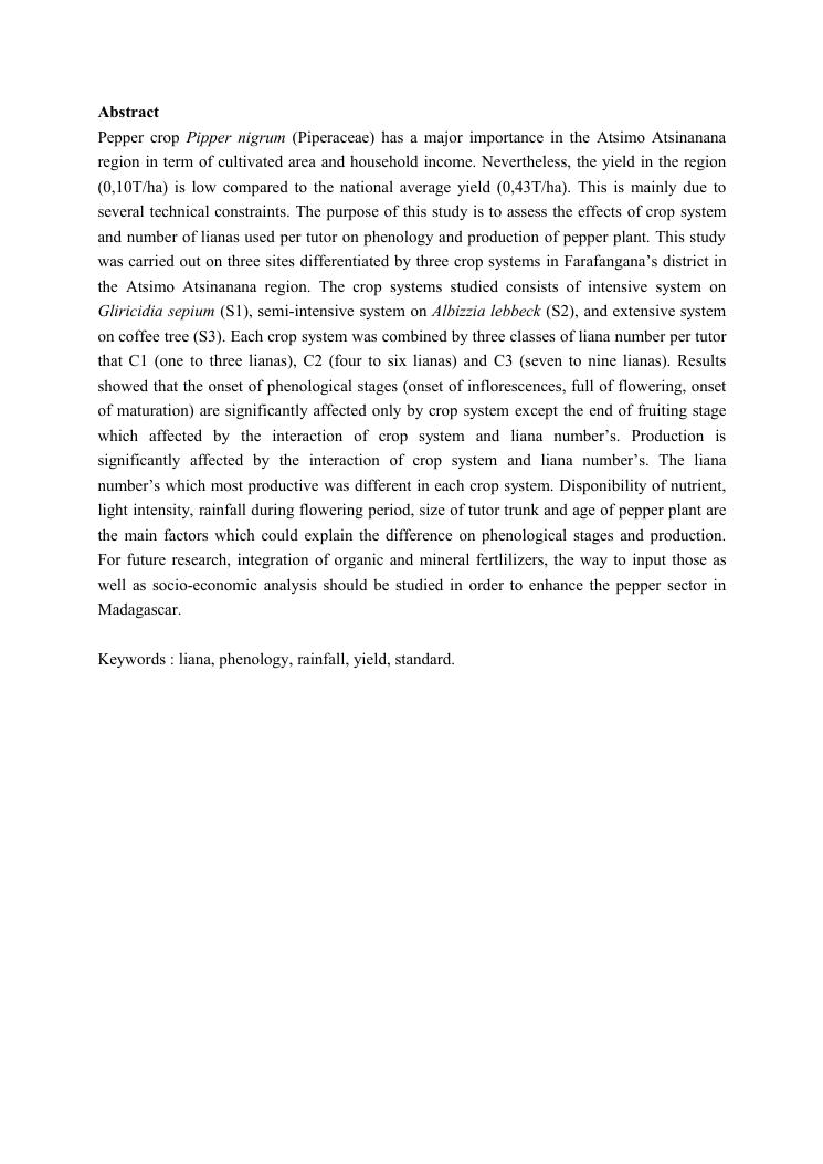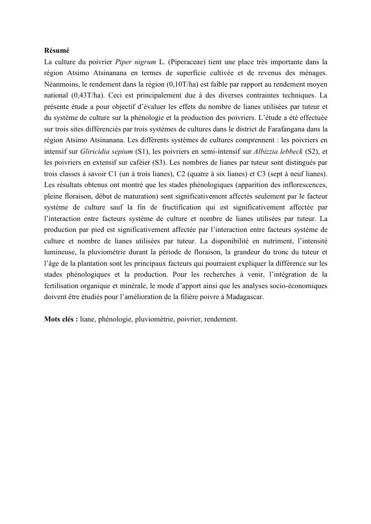 effets des systèmes de cultures sur la phénologie et la production du poivrier (piper nigrum l.) dans la région atsimo atsinanana