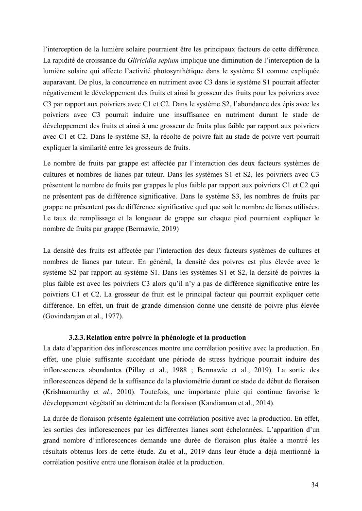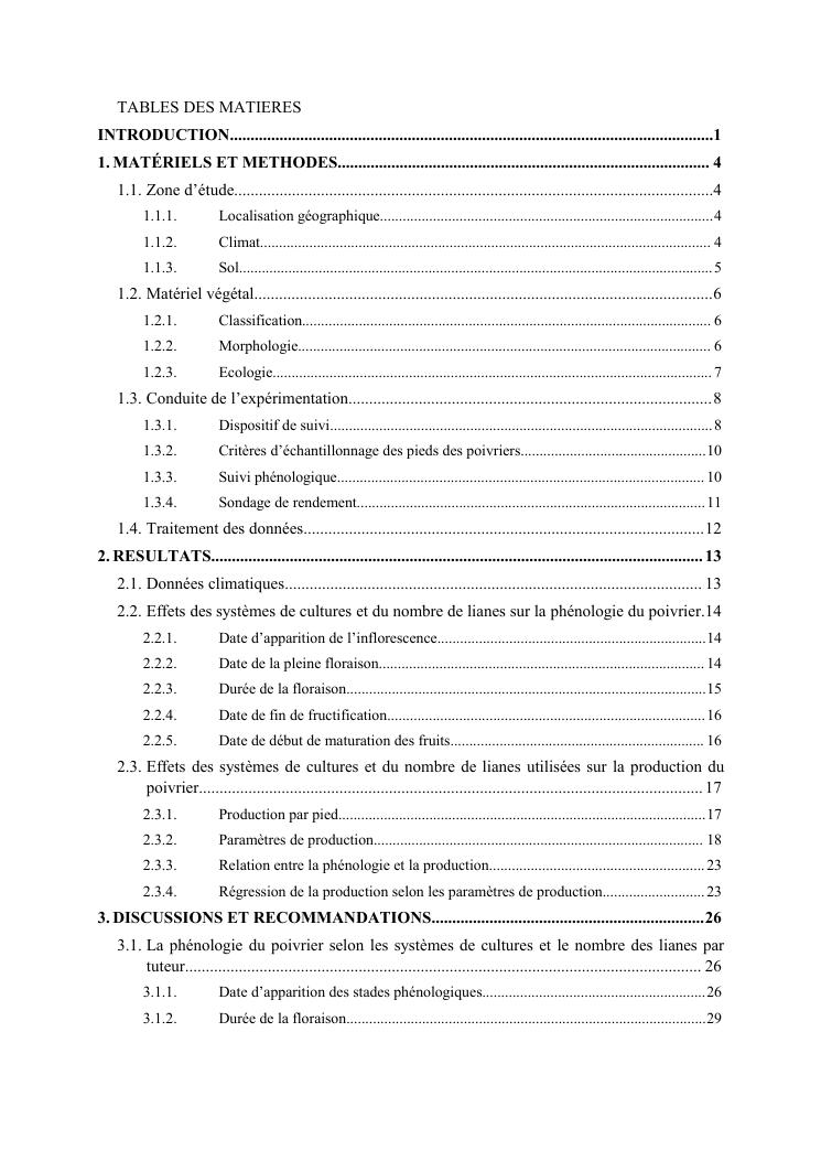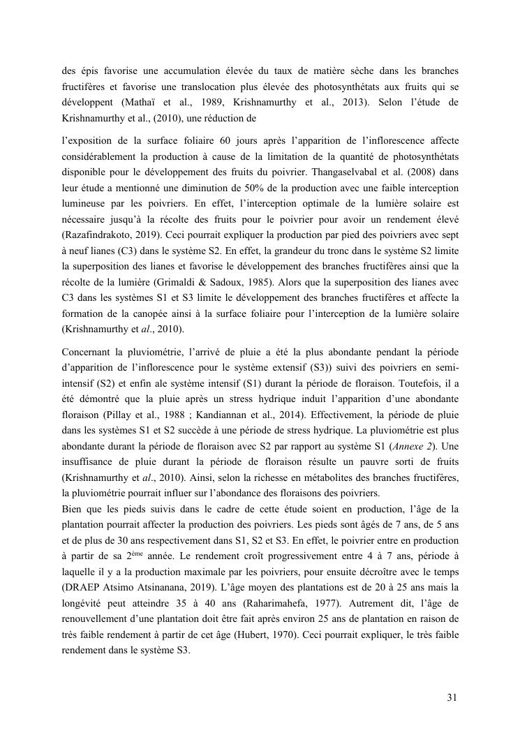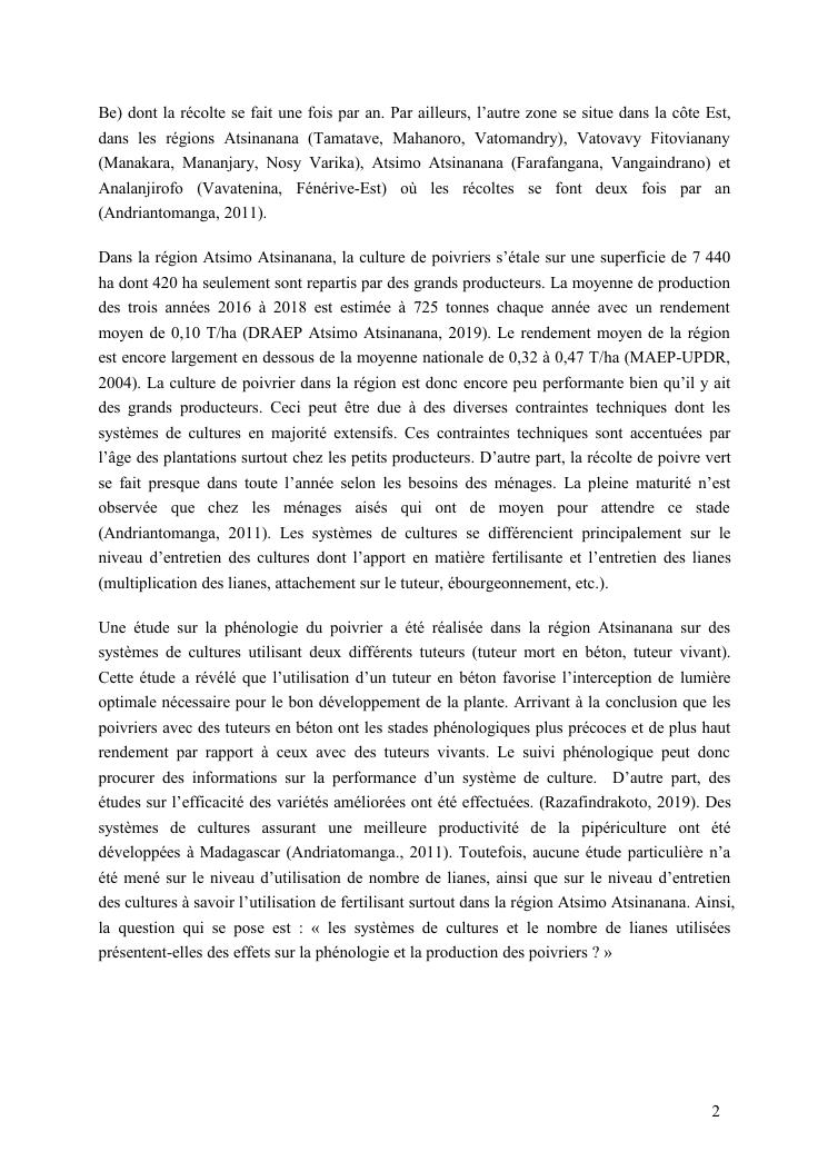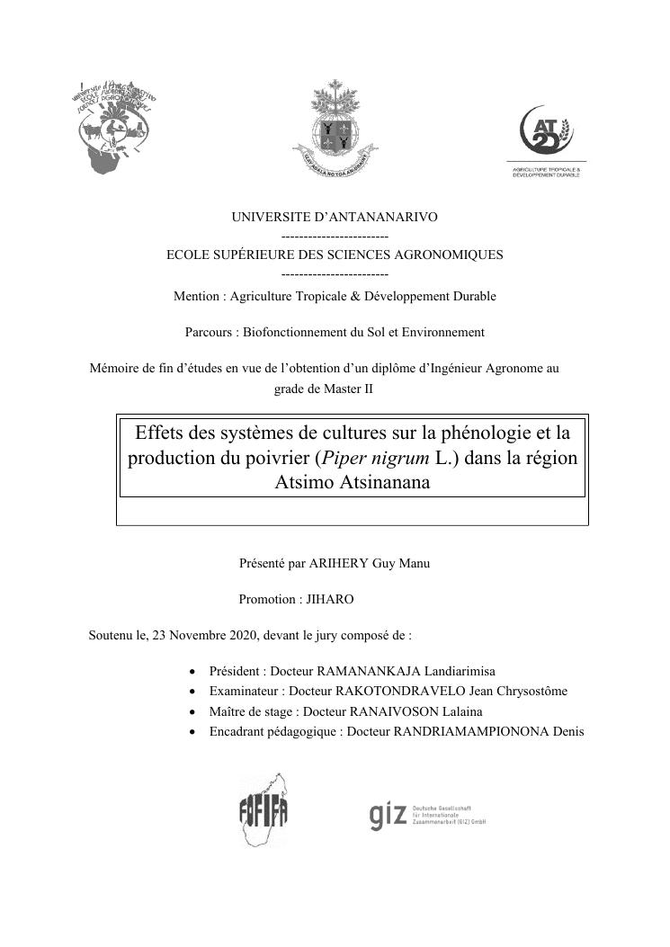 effets des systèmes de cultures sur la phénologie et la production du poivrier (piper nigrum l.) dans la région atsimo atsinanana