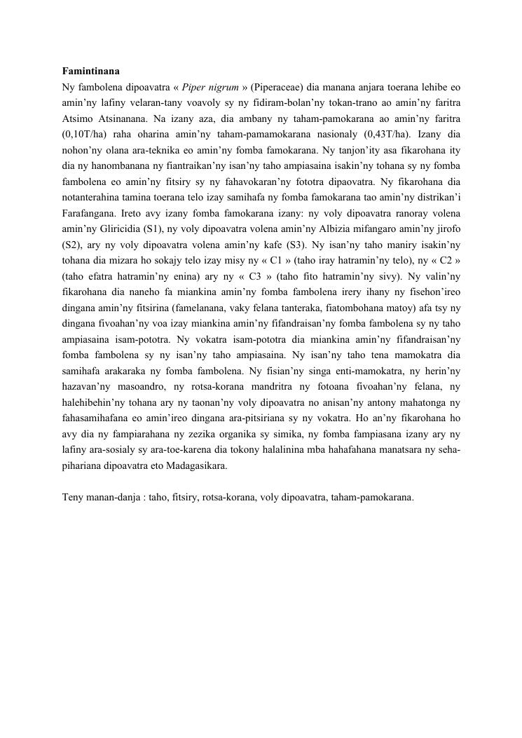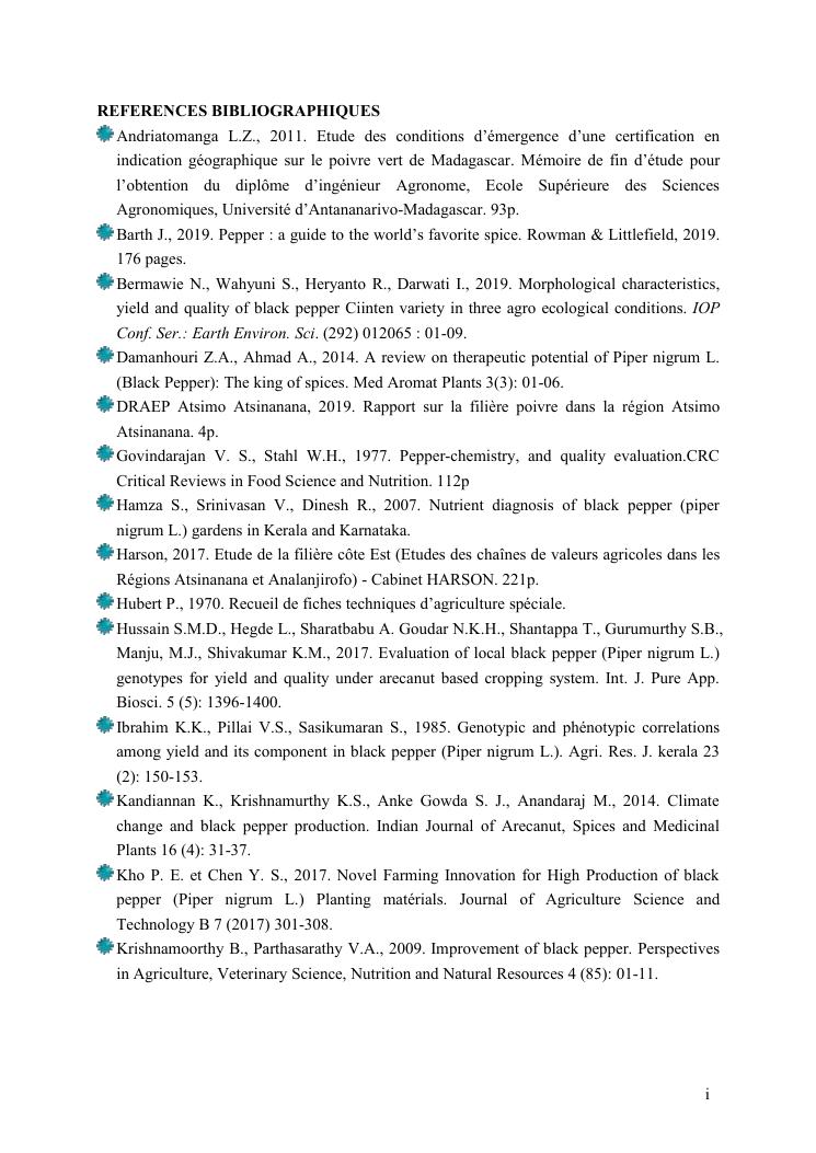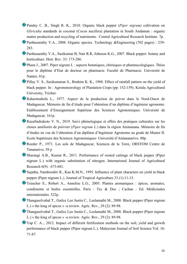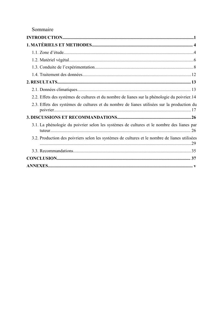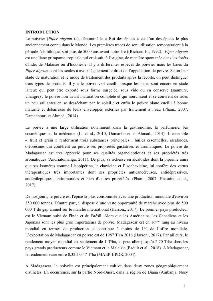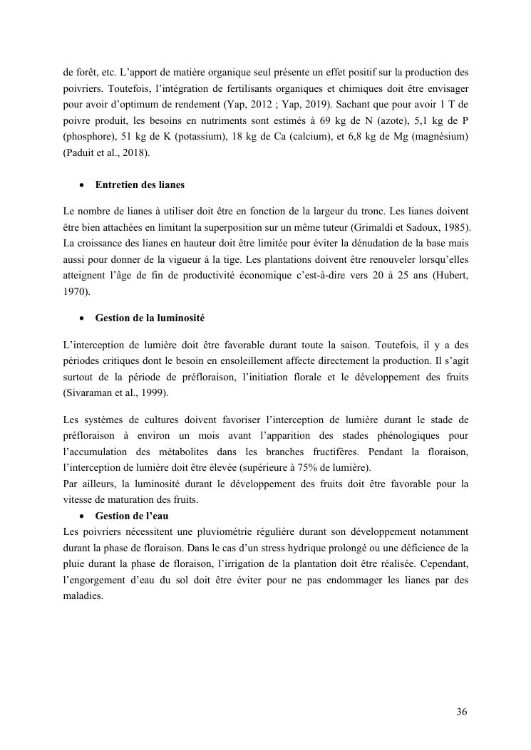 effets des systèmes de cultures sur la phénologie et la production du poivrier (piper nigrum l.) dans la région atsimo atsinanana
