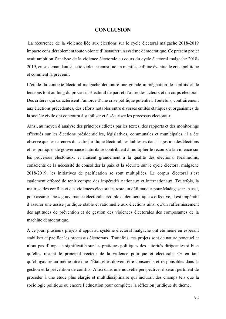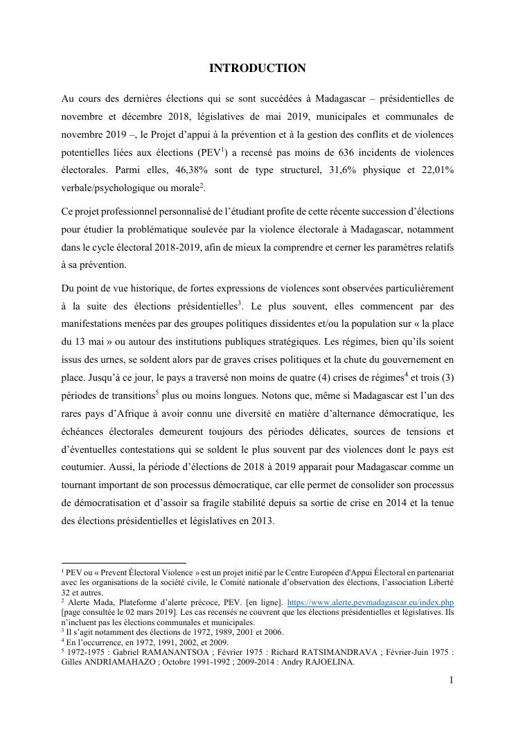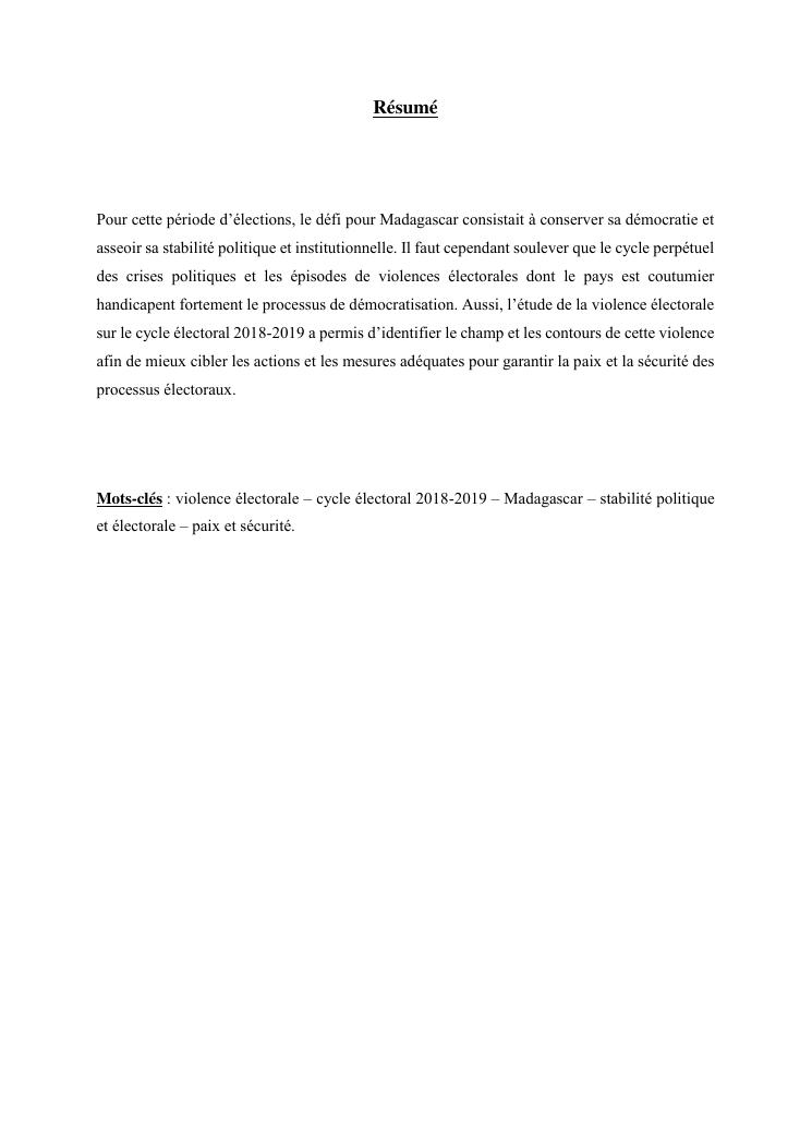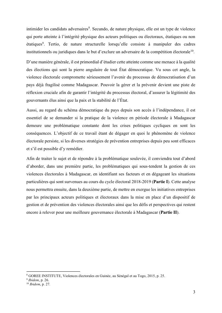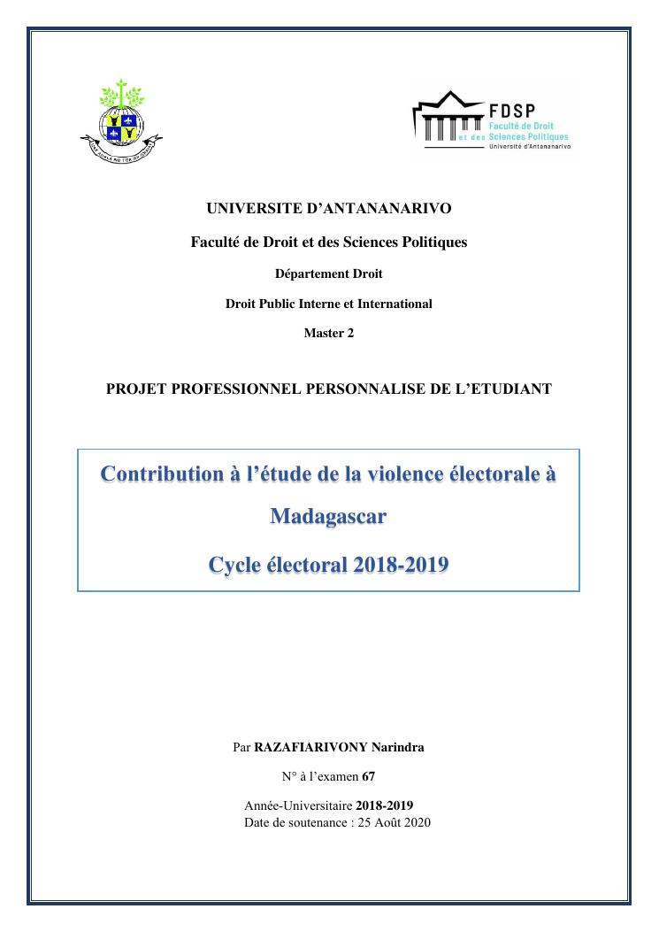contribution a l'etude de la violence electorale a madagascar : cycle electoral 2018-2019