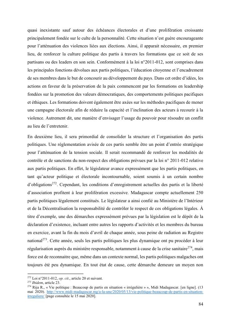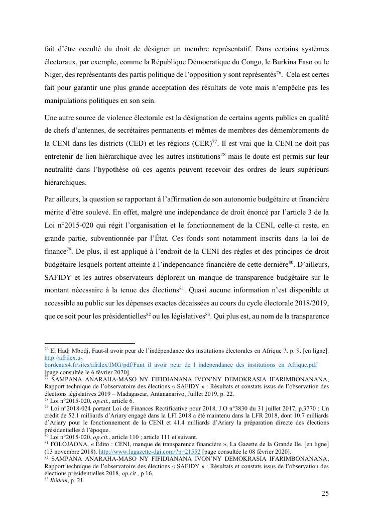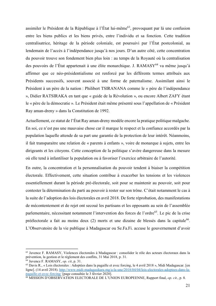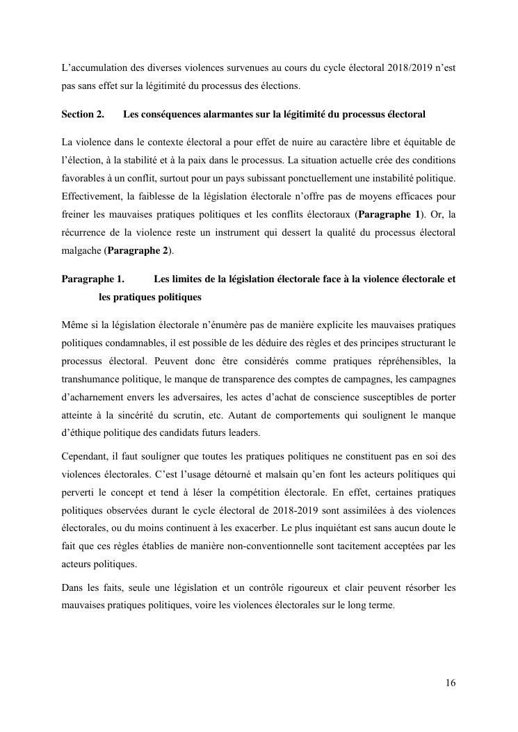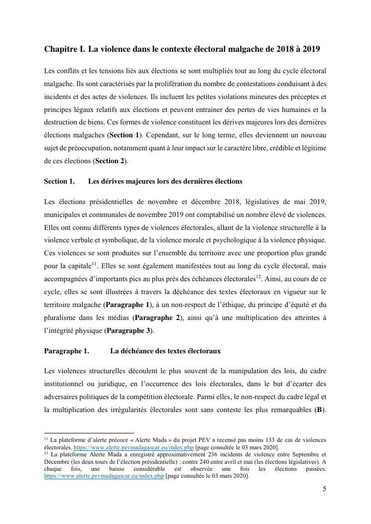 contribution a l'etude de la violence electorale a madagascar : cycle electoral 2018-2019