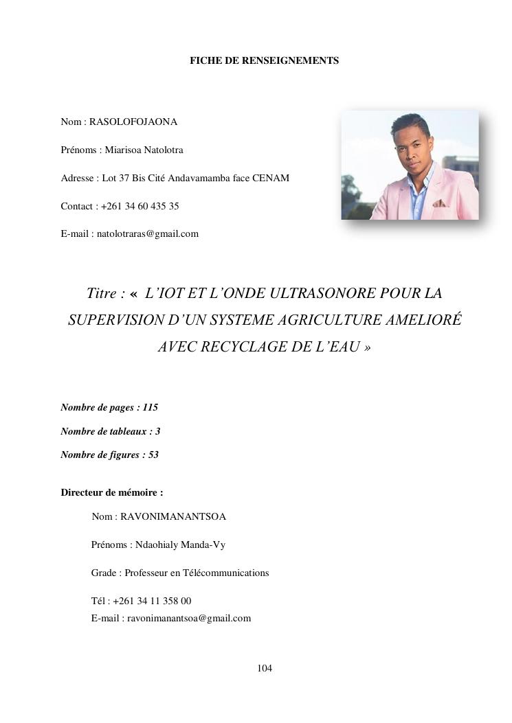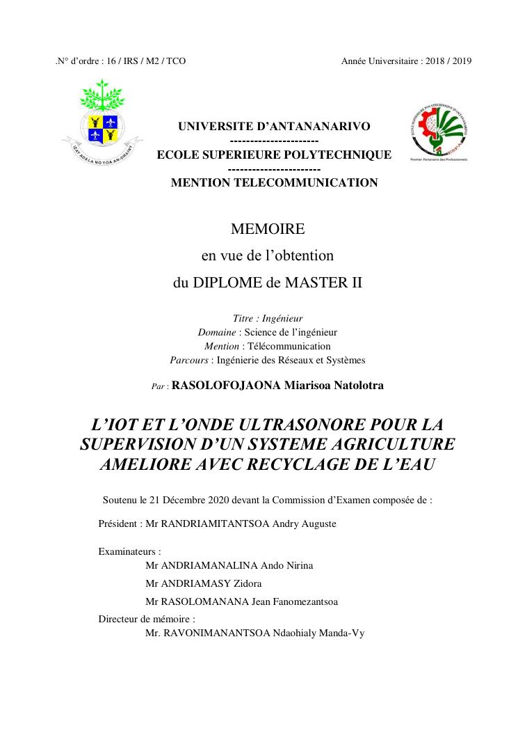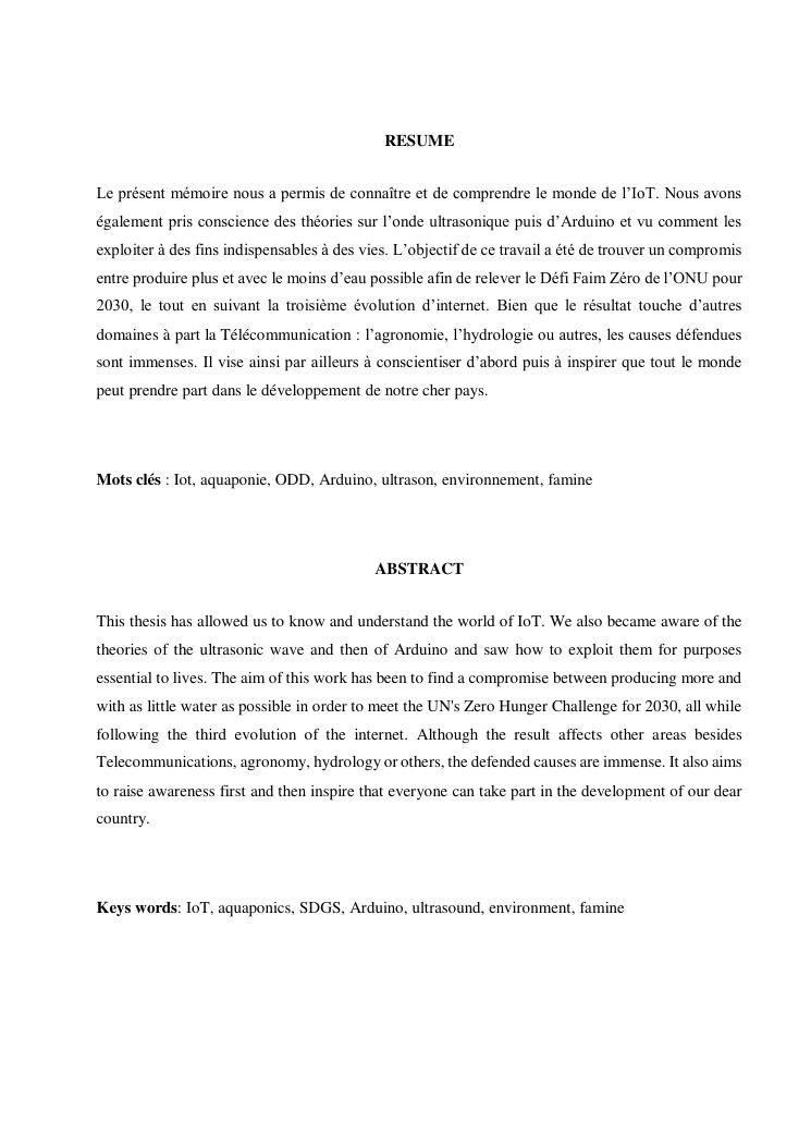 l'iot et l'onde ultrasonore pour la supervision d'un systeme agriculture ameliore avec recyclage de l'eau