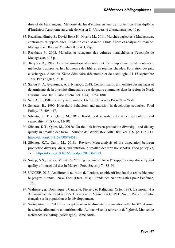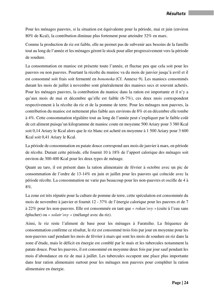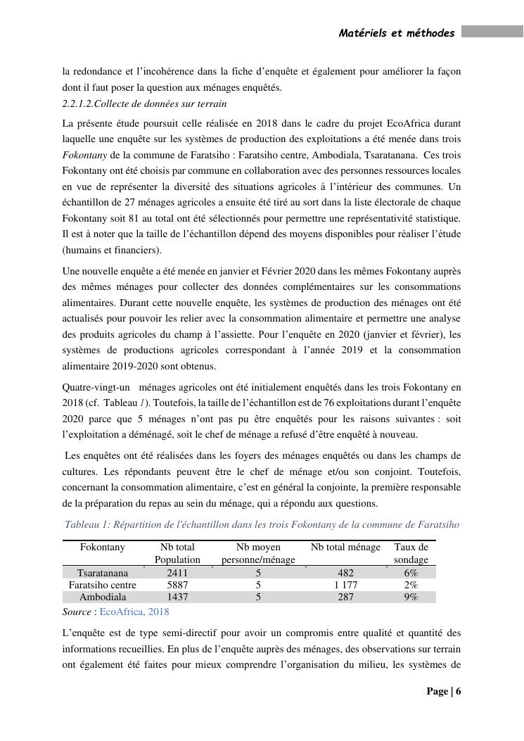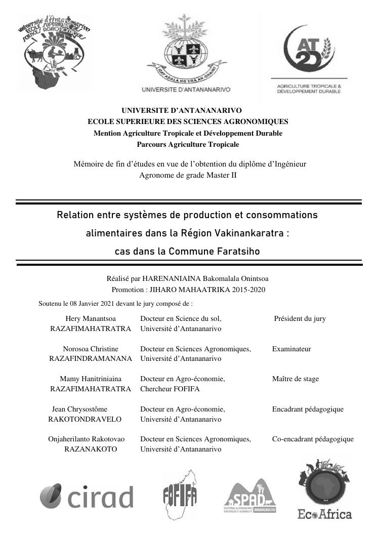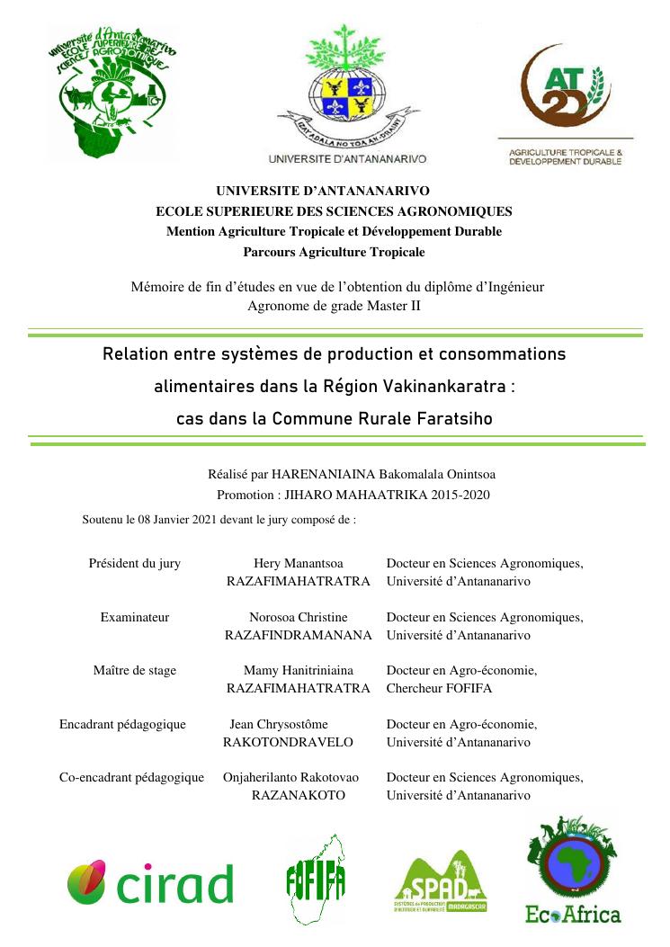 relation entre systèmes de production et consommations alimentaires dans la région vakinankaratra : cas dans la commune rurale faratsiho