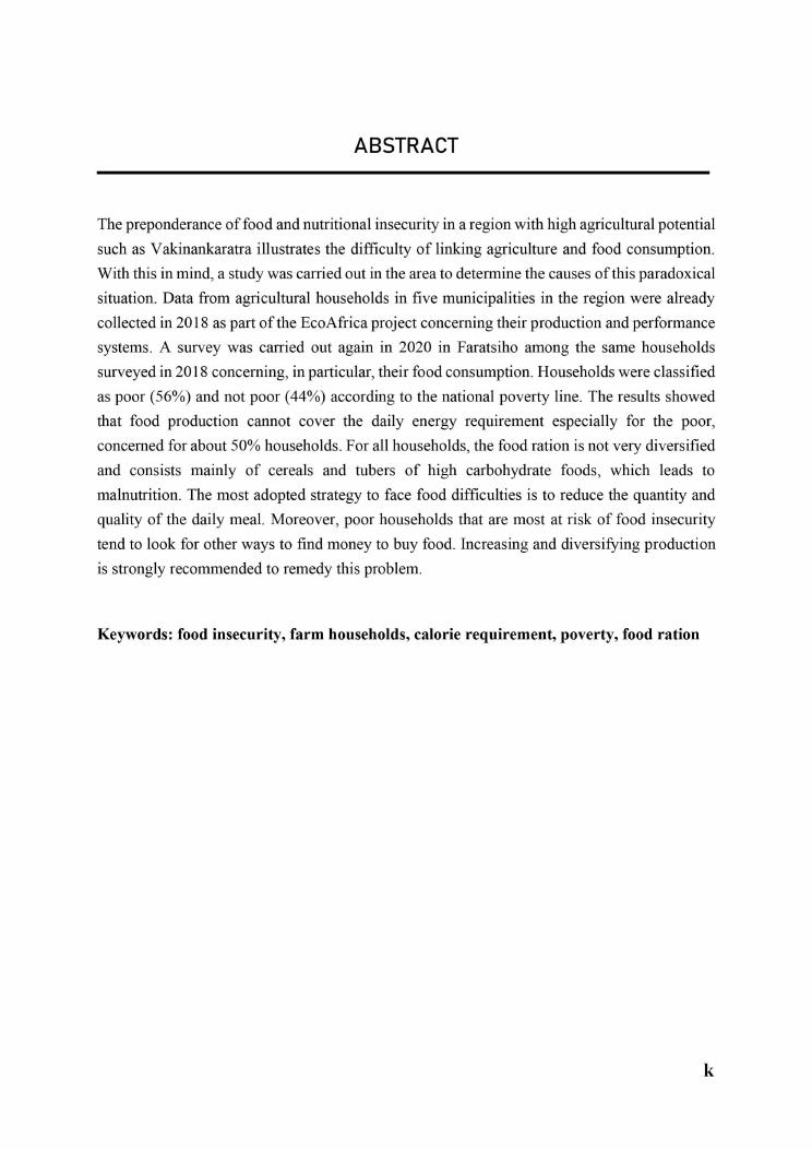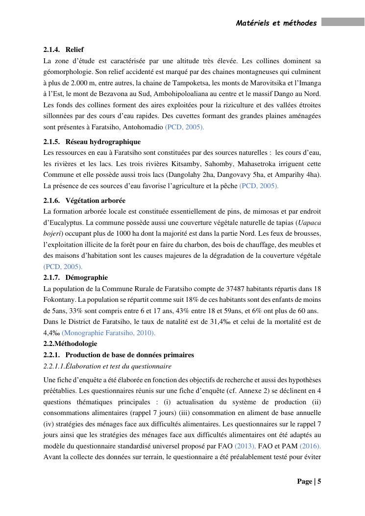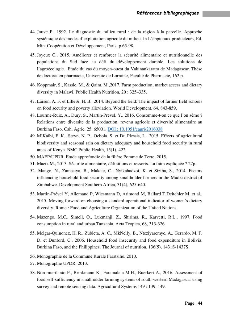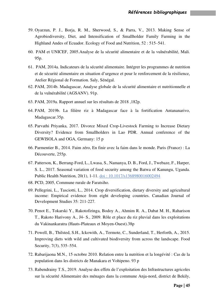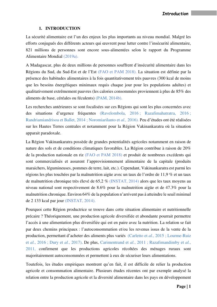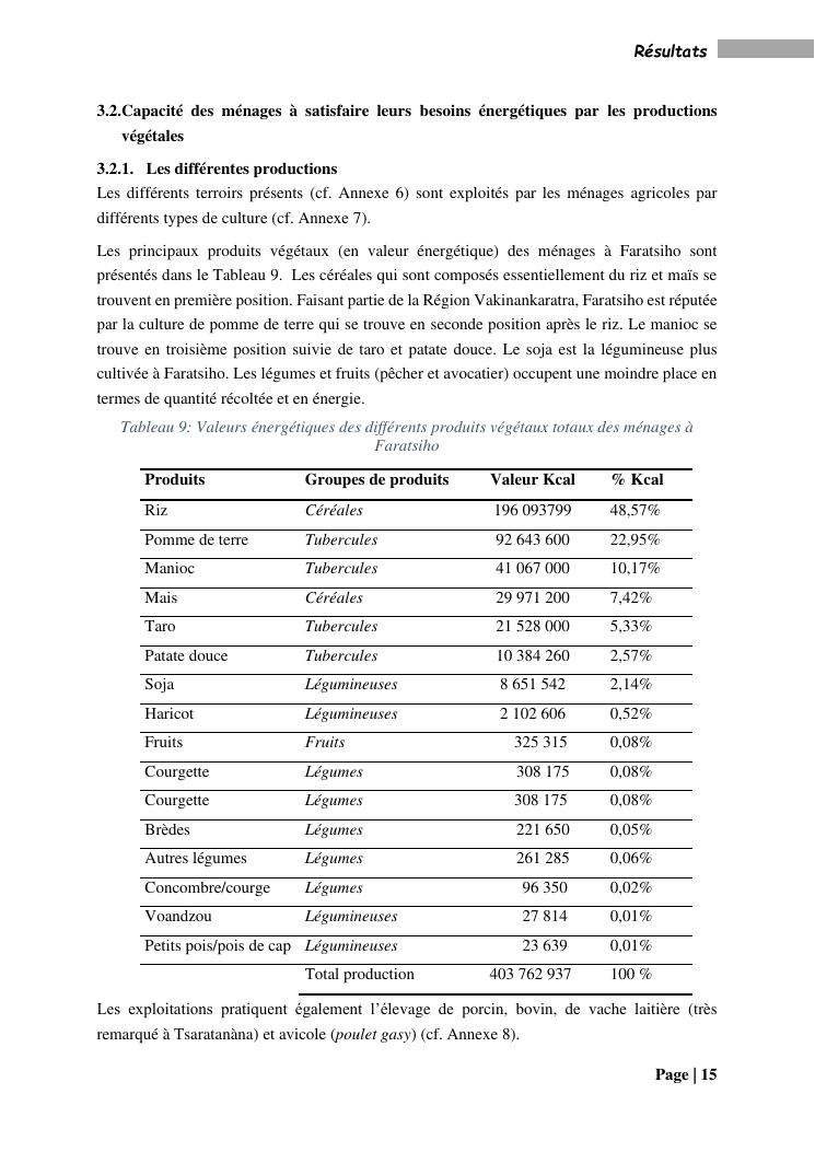 relation entre systèmes de production et consommations alimentaires dans la région vakinankaratra : cas dans la commune rurale faratsiho