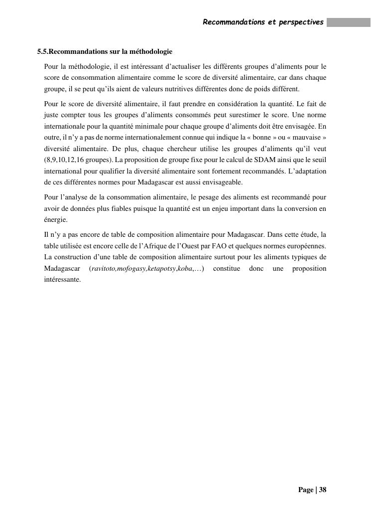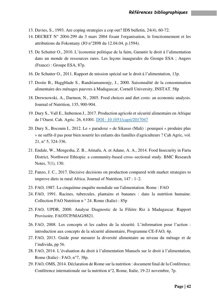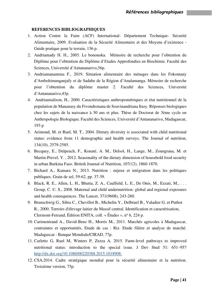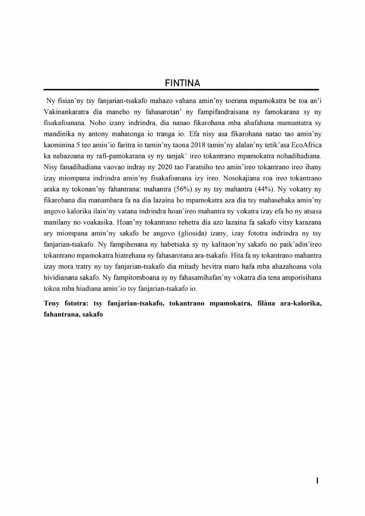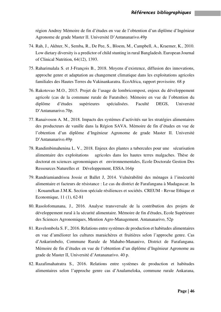 relation entre systèmes de production et consommations alimentaires dans la région vakinankaratra : cas dans la commune rurale faratsiho