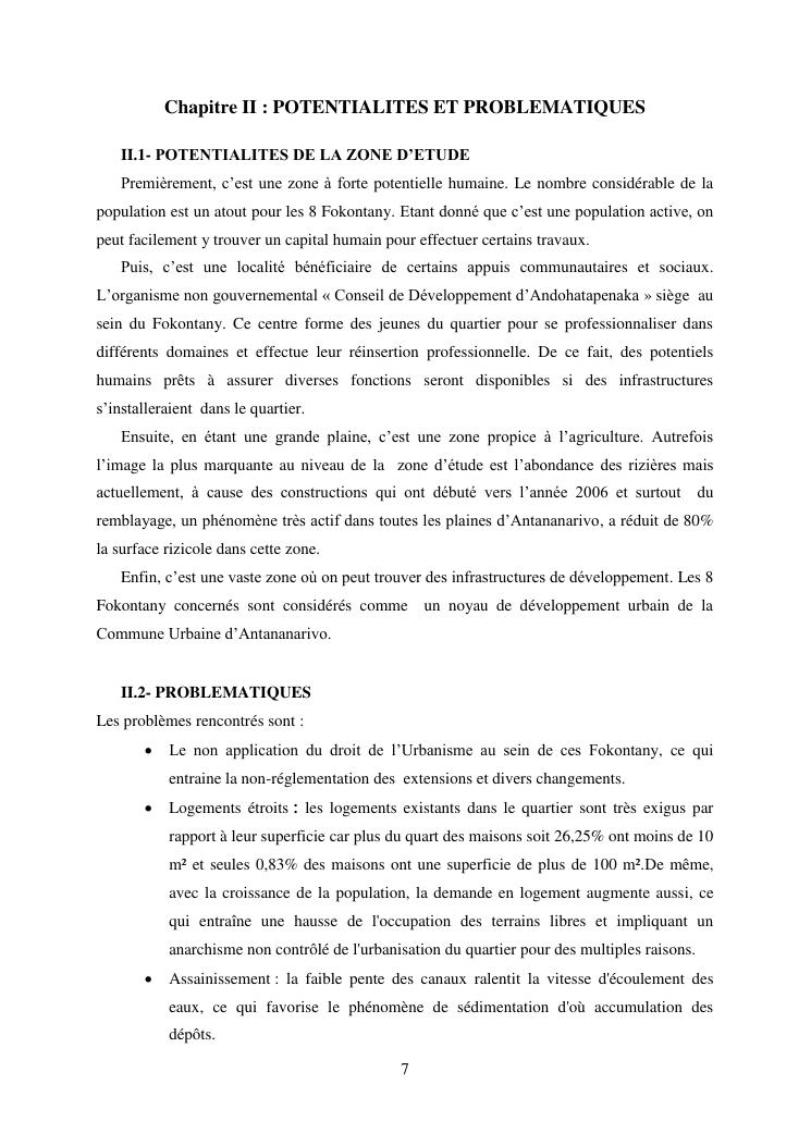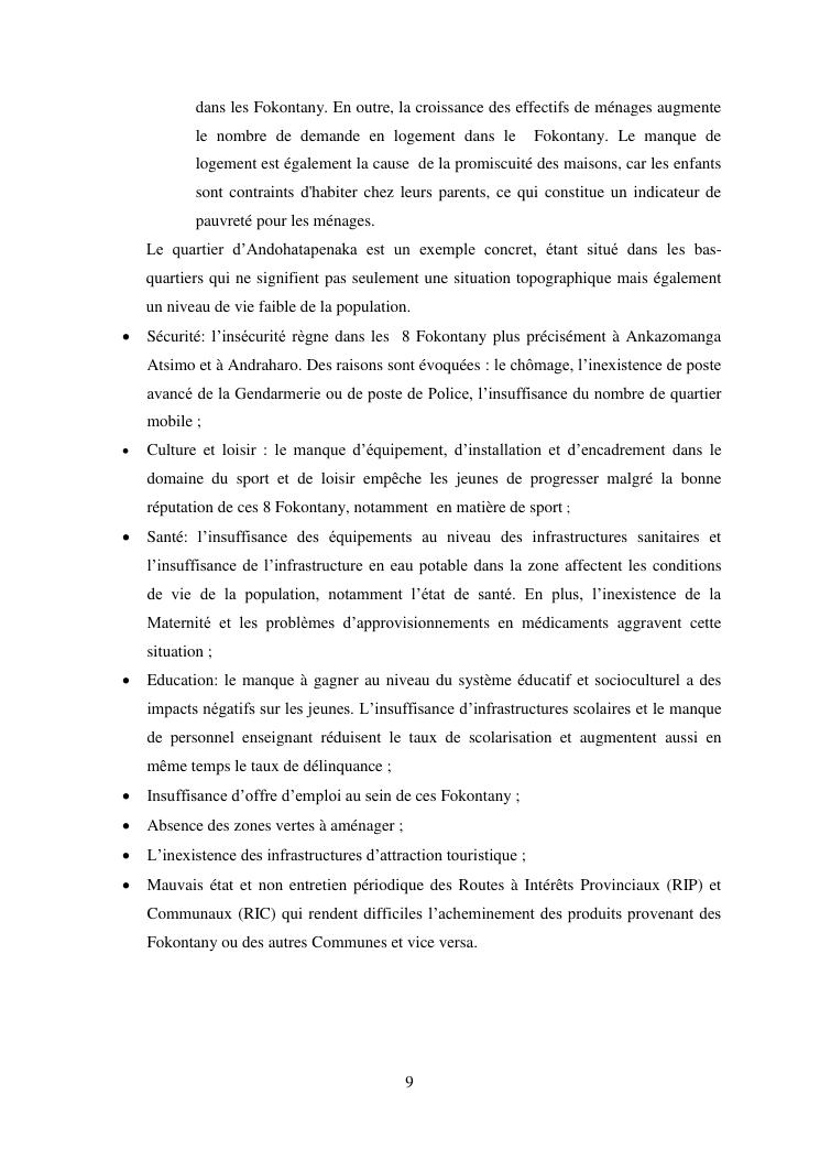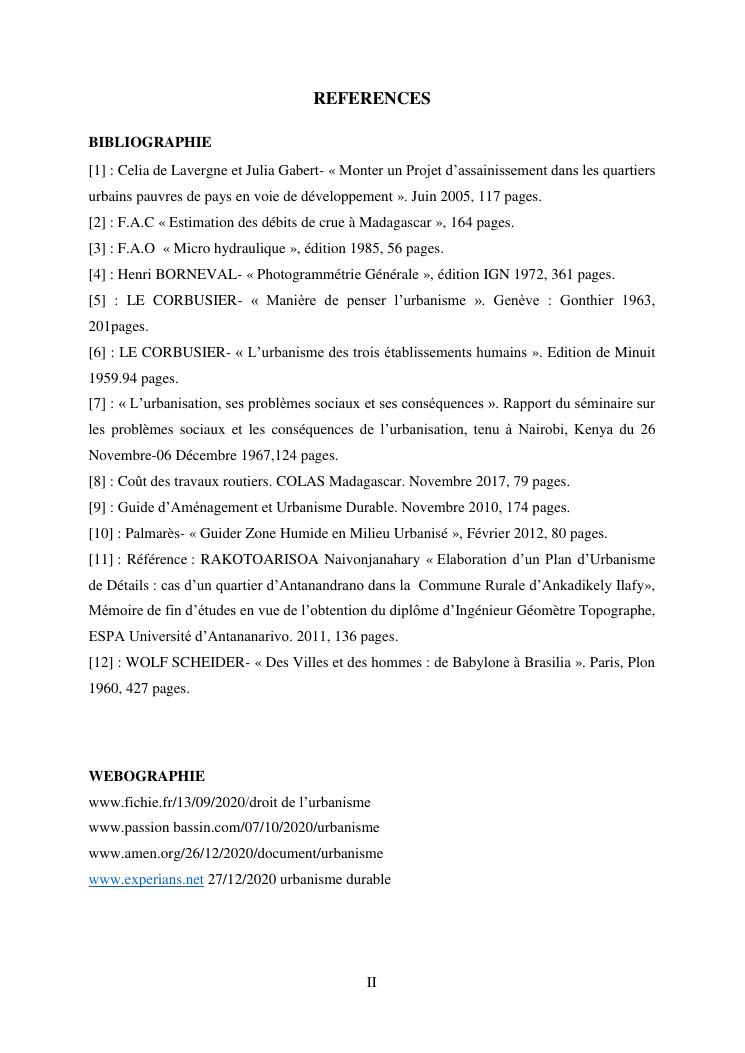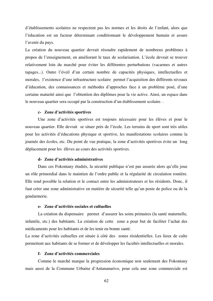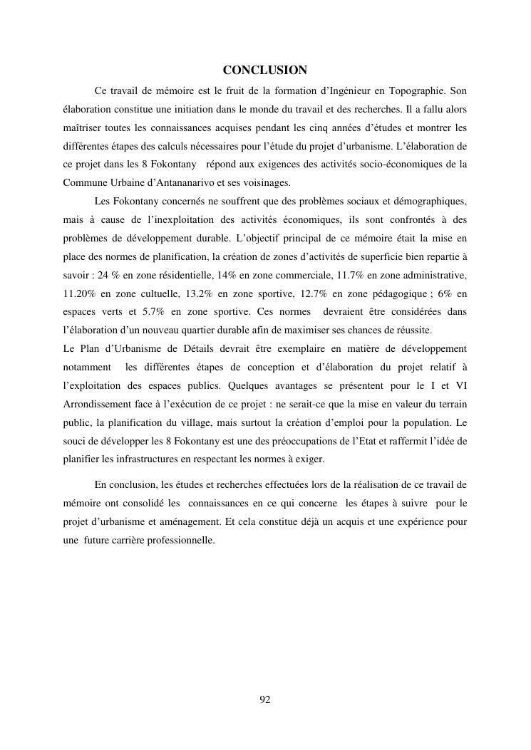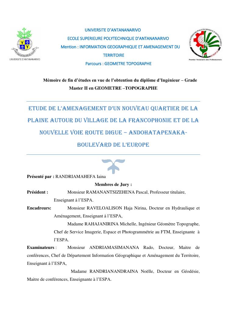 etude de l'amenagement d'un nouveau quartier de la plaine autour du village de la francophonie et de la nouvelle voie route digue andohatapenaka- boulevard de l'europe