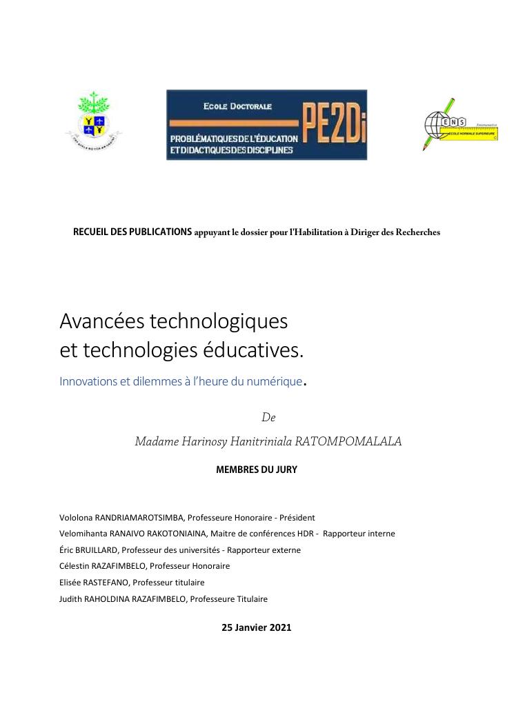 avancées technologiques et technologies éducatives. innovations et dilemmes à l'heure du numérique