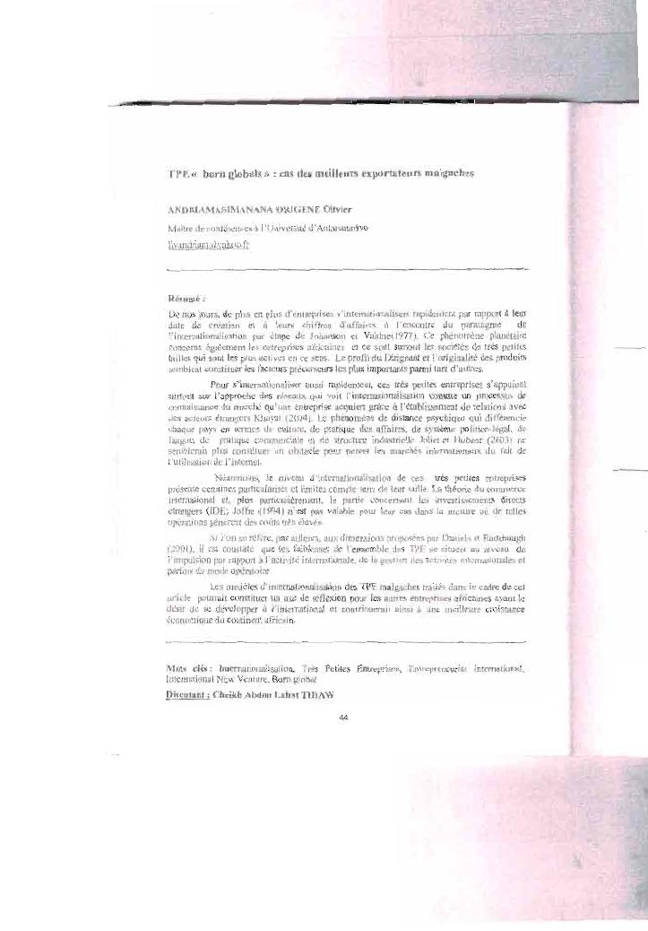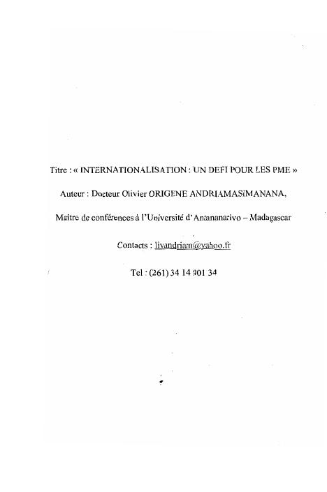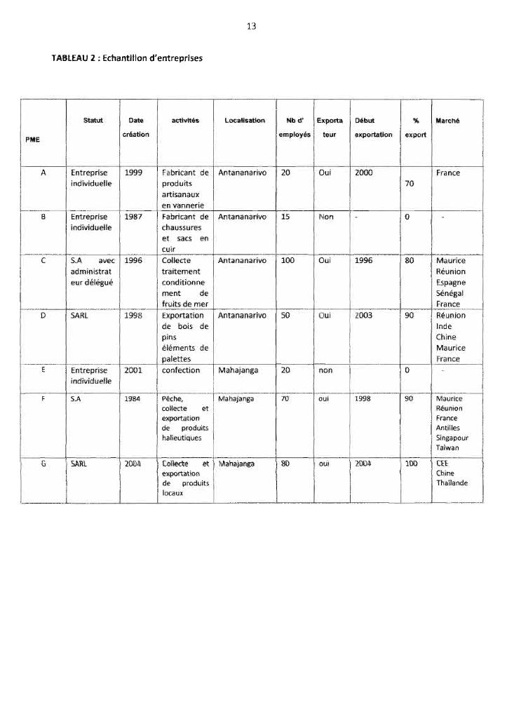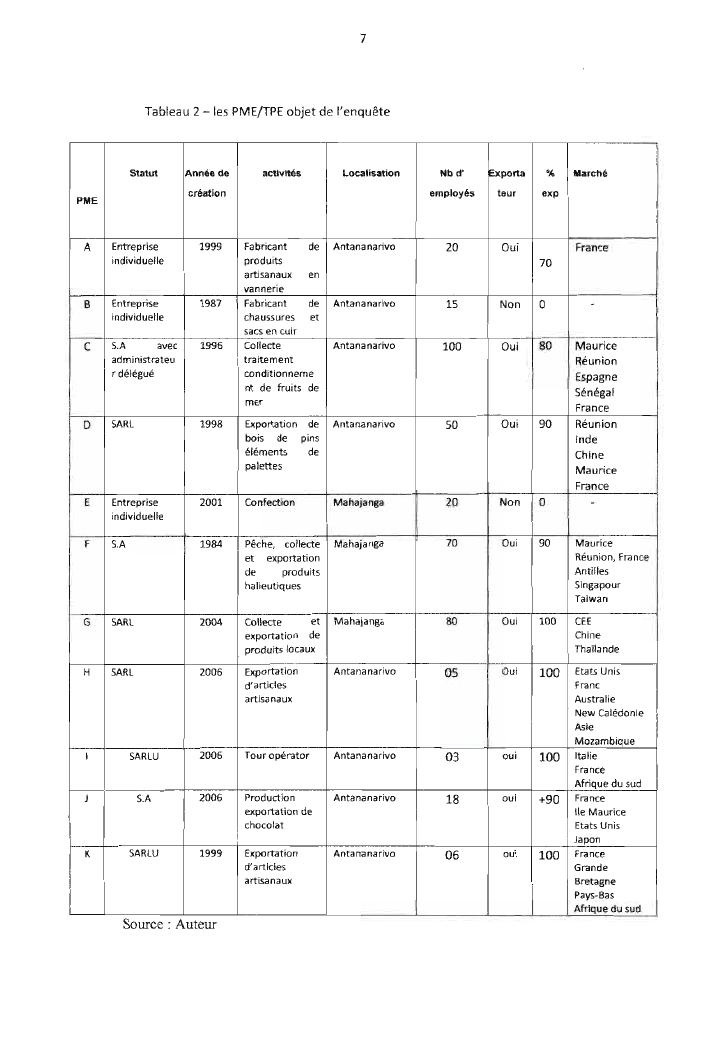 les entreprises de petite taille malgaches a la conquete de l'international. volum 2 : annexes