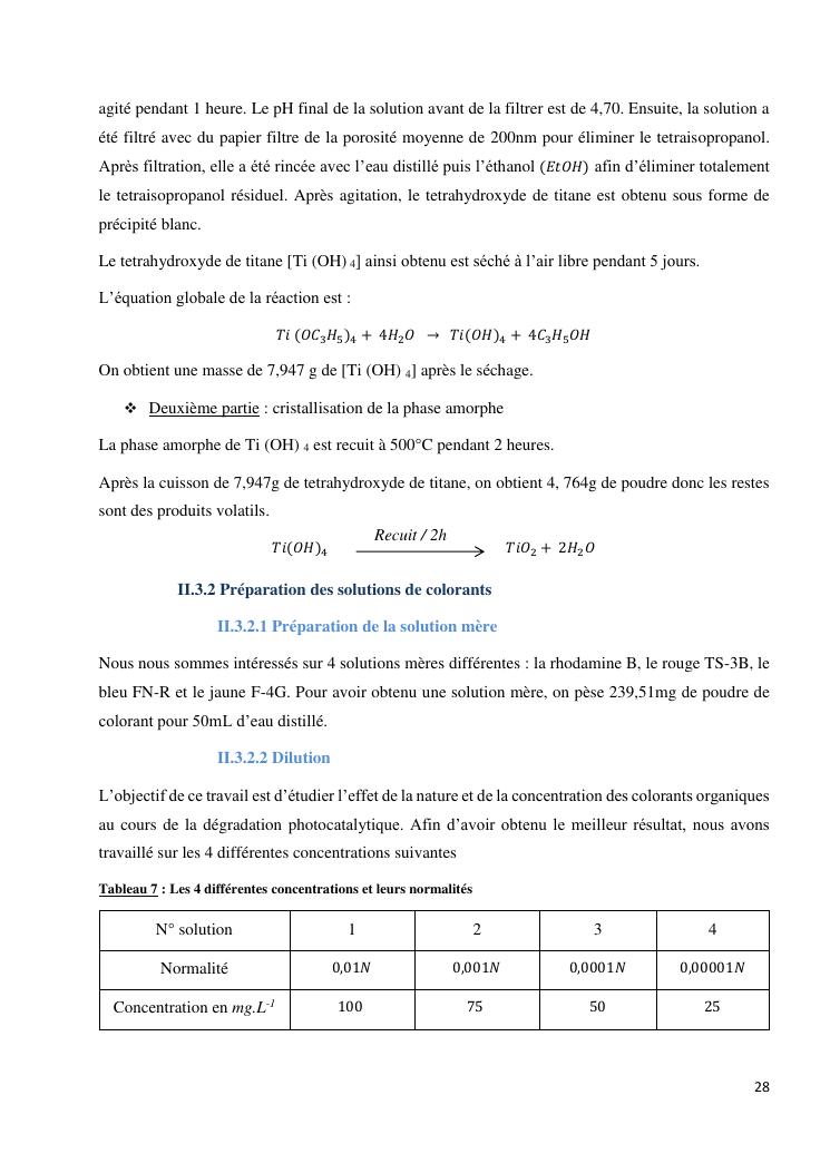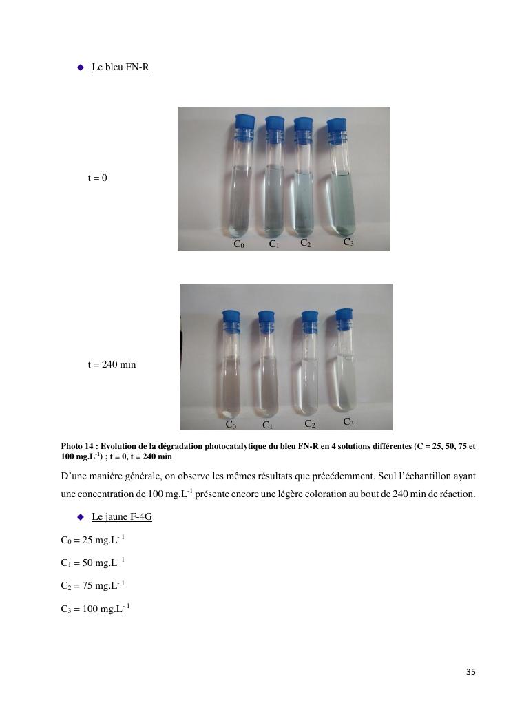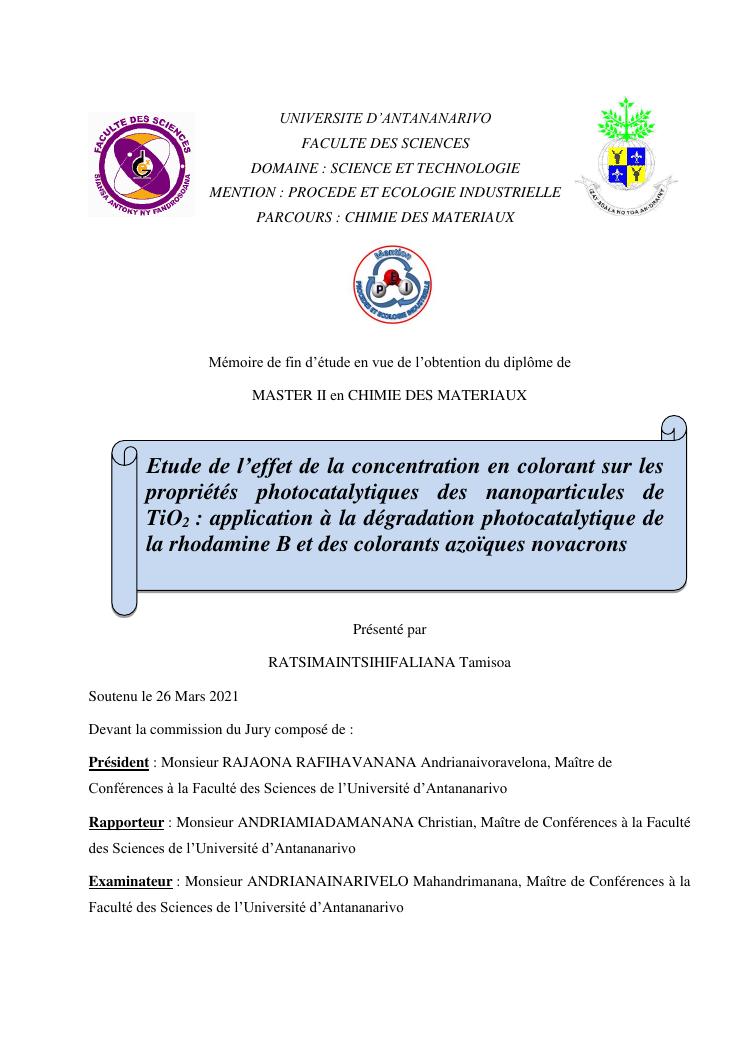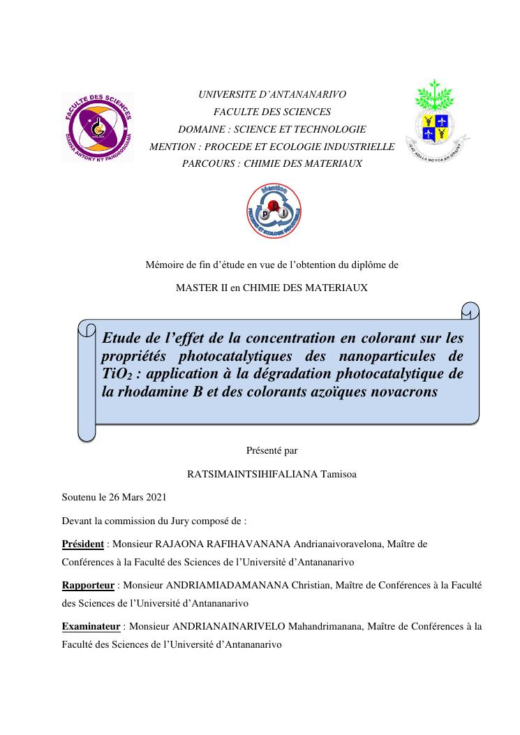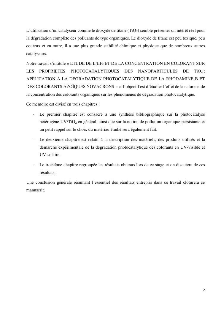 etude de l'effet de la concentration en colorant sur les propriétés photocatalytiques des nanoparticules de tio2 : application à la dégradation photocatalytique de la rhodamine b et des colorants azoïques novacrons