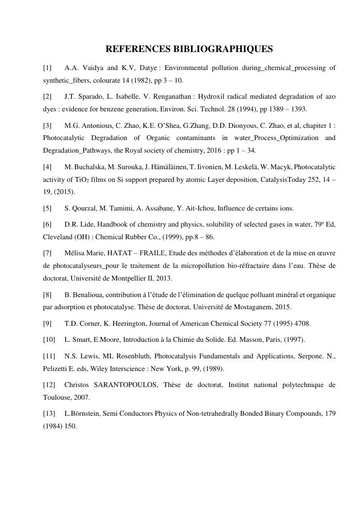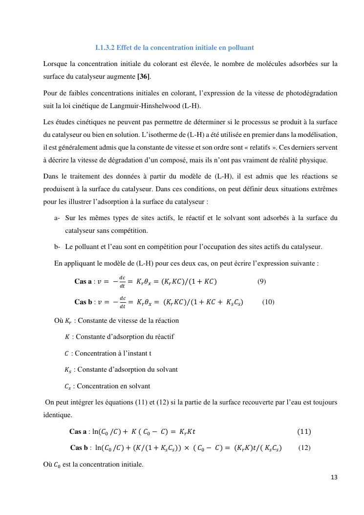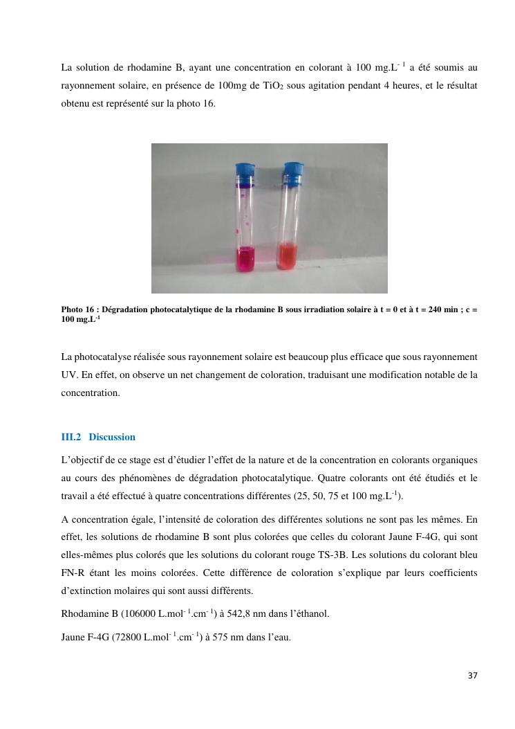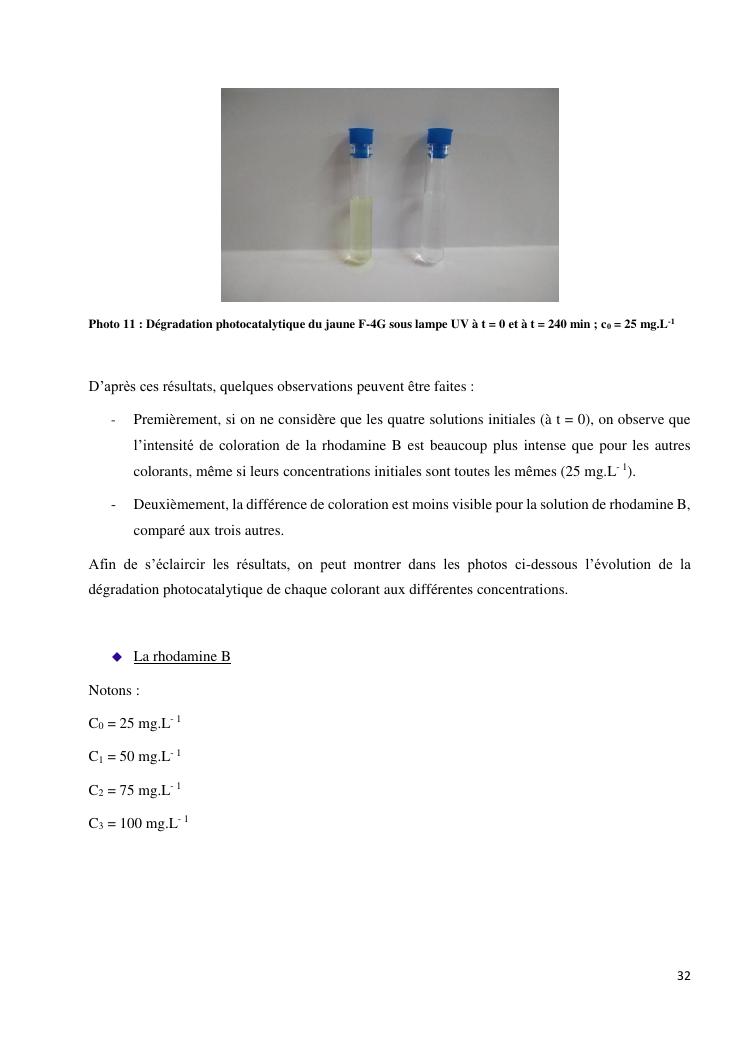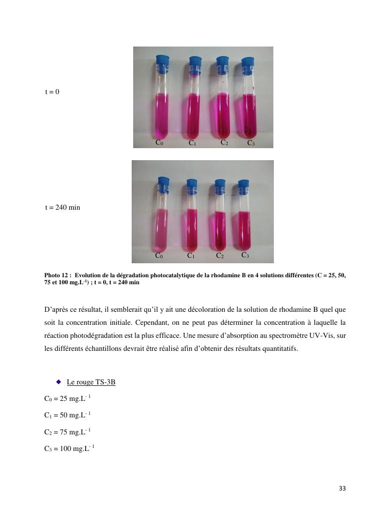 etude de l'effet de la concentration en colorant sur les propriétés photocatalytiques des nanoparticules de tio2 : application à la dégradation photocatalytique de la rhodamine b et des colorants azoïques novacrons