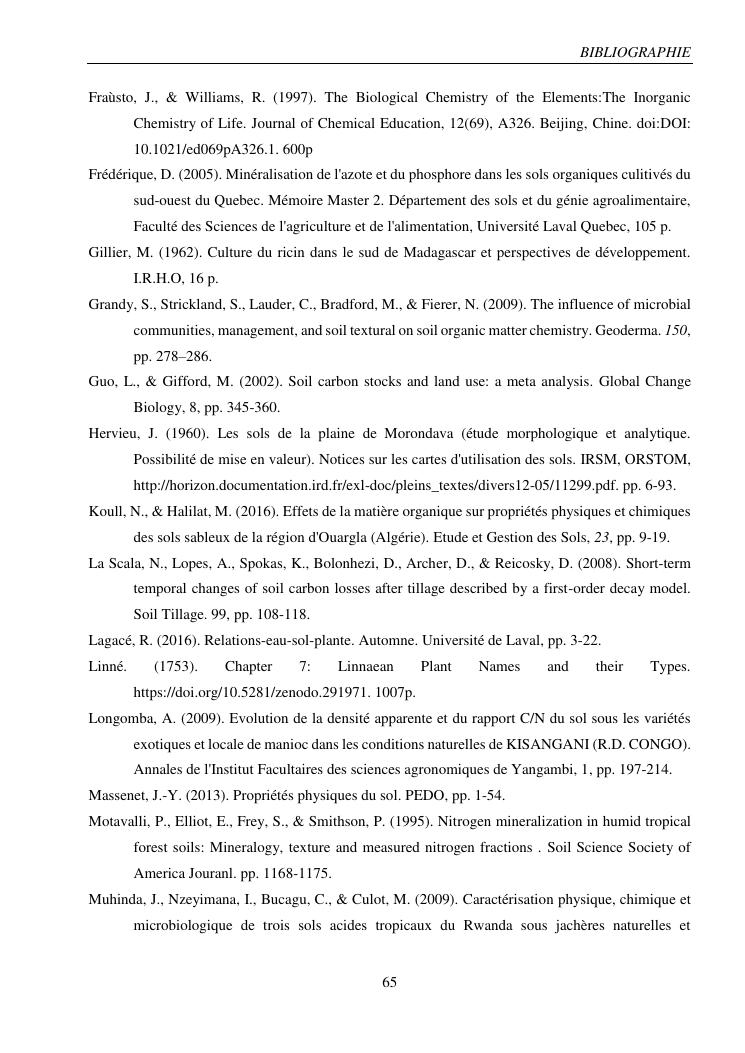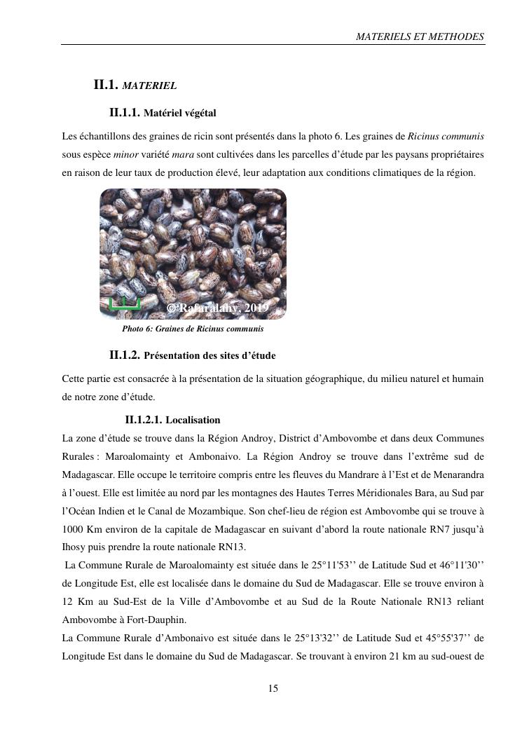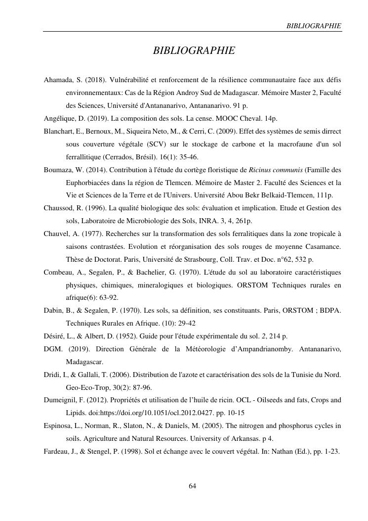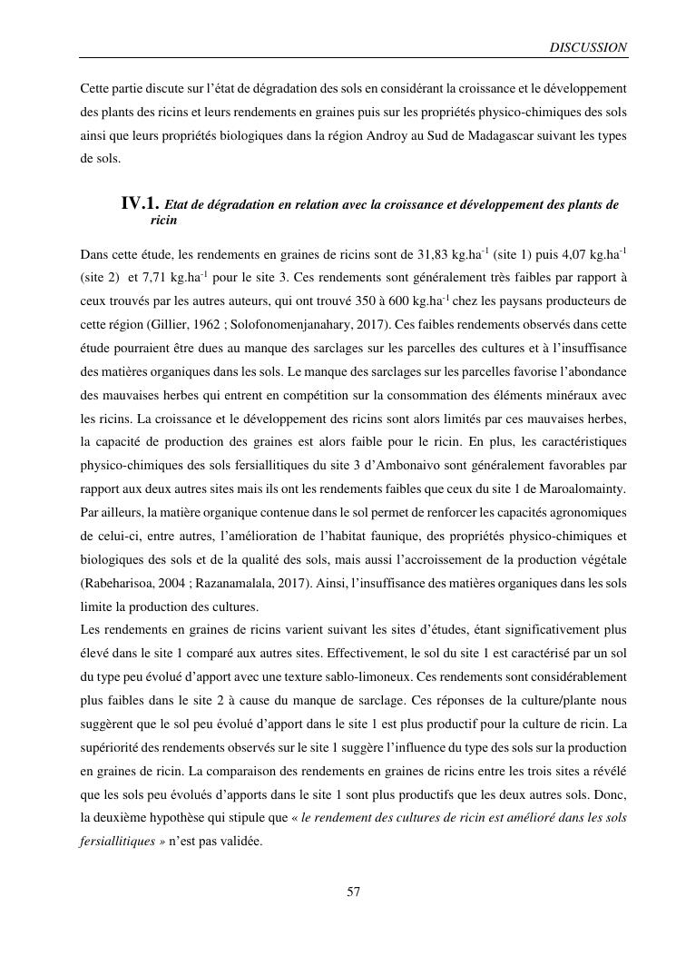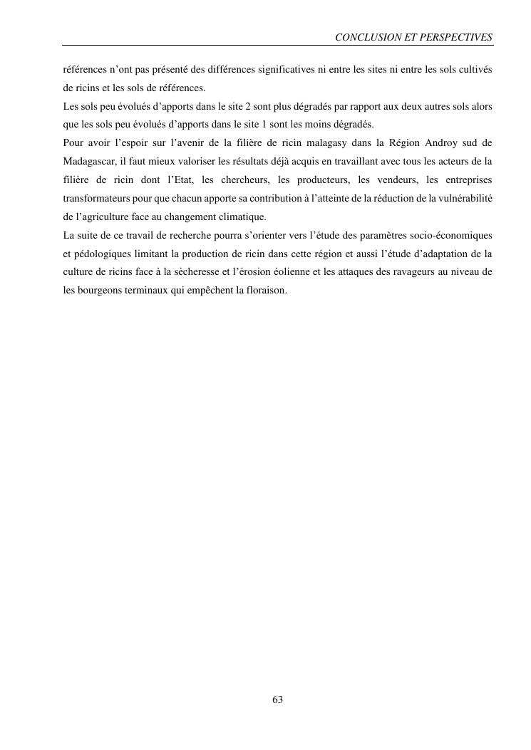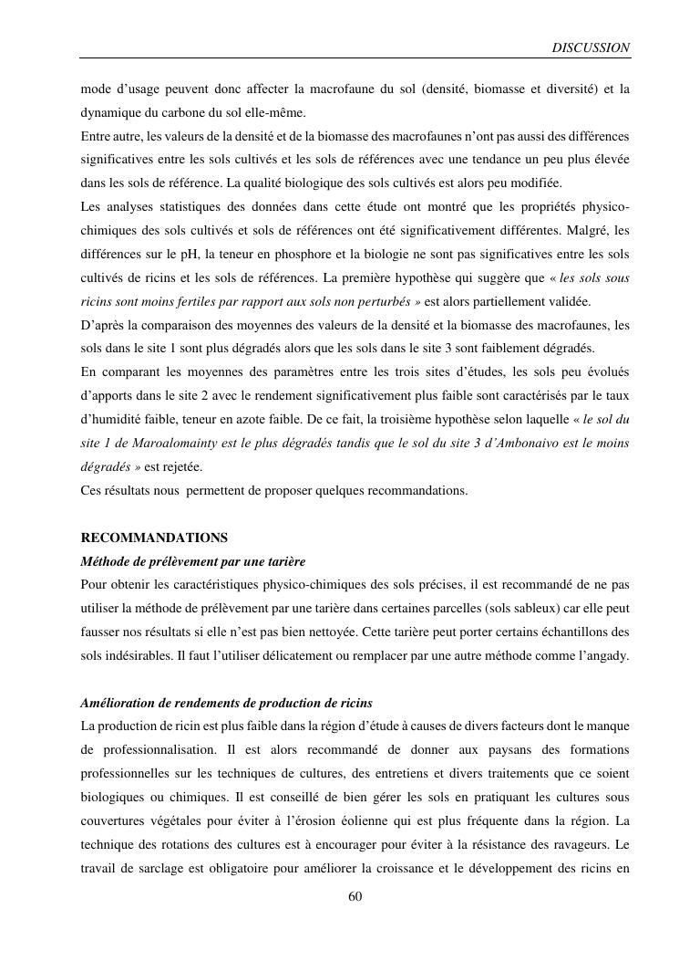 etude des caractéristiques physiques, chimiques et biologiques des sols pour une appréhension de leurs états de dégradation. cas de la culture de ricin (ricinus communis l.) dans la région androy, sud de madagascar.