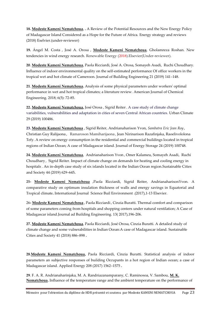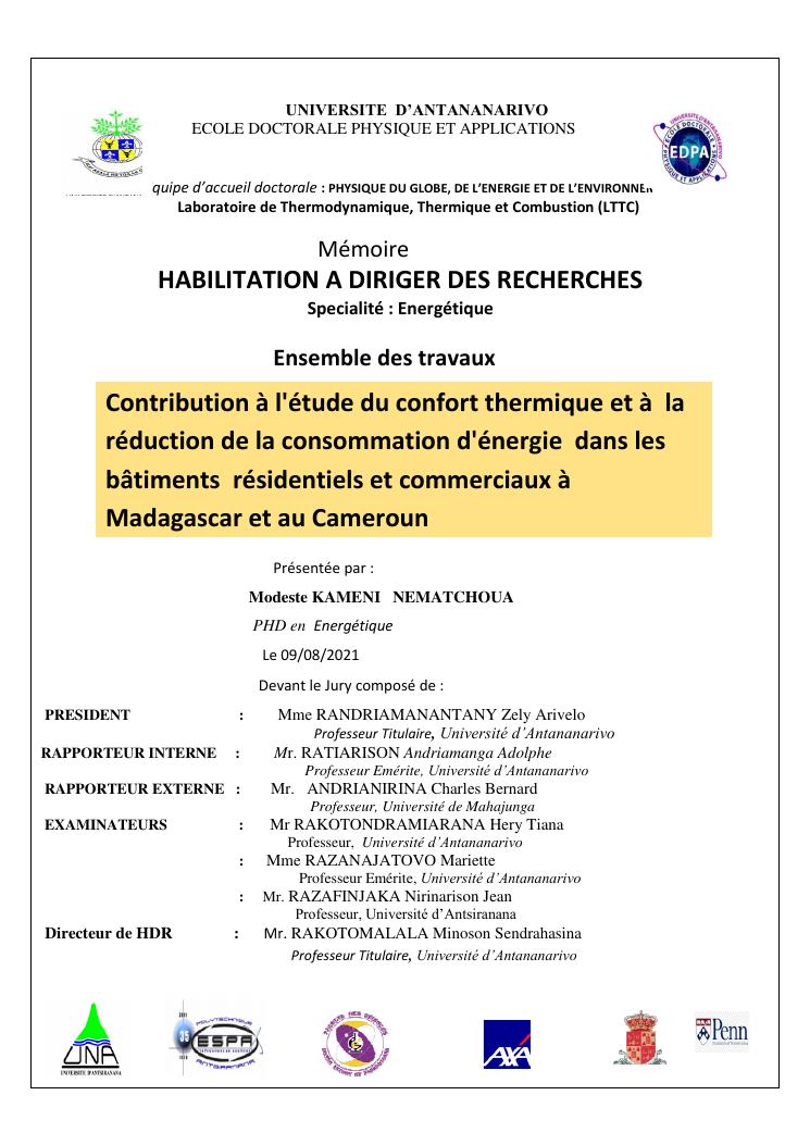 contribution à l'étude du confort thermique et à la réduction de la consommation d'énergie dans les bâtiments résidentiels et commerciaux à madagascar et au cameroun. volume 2 : ensemble des travaux