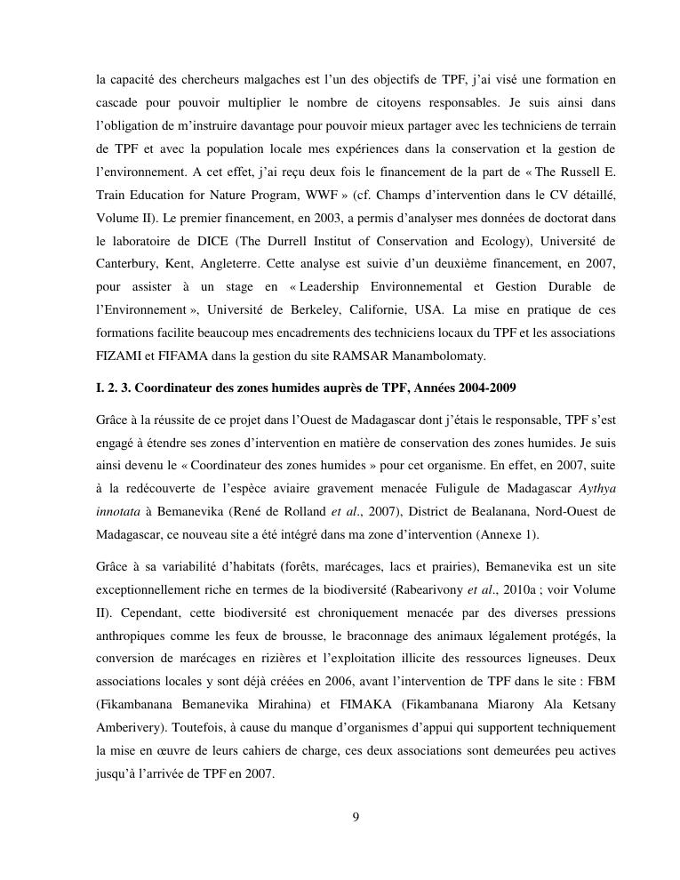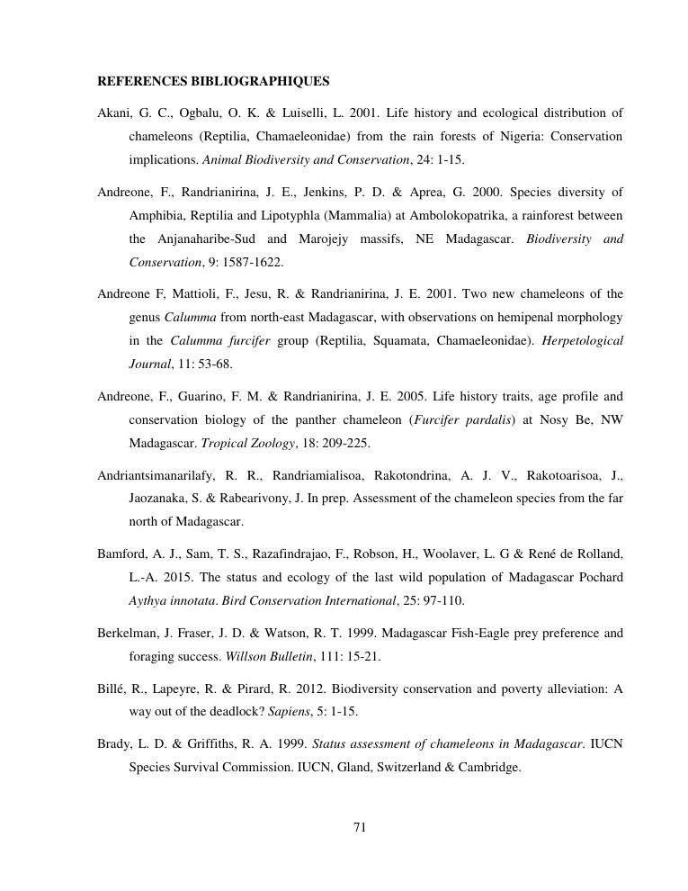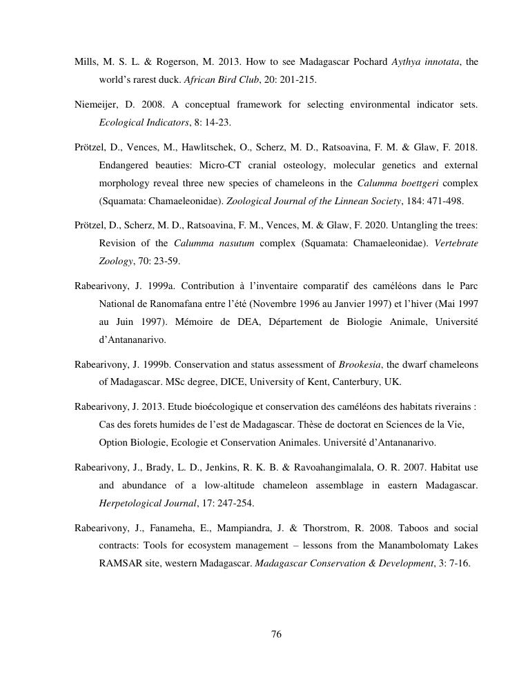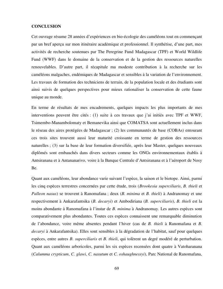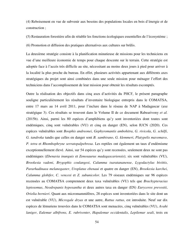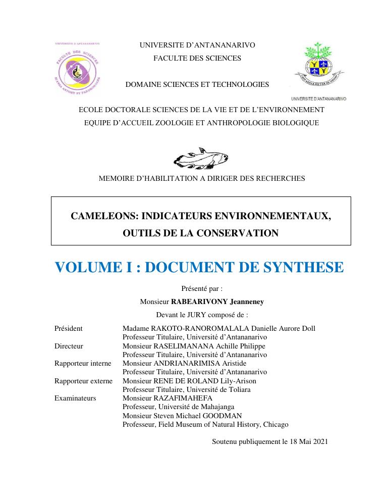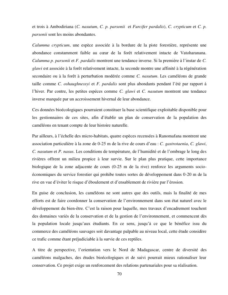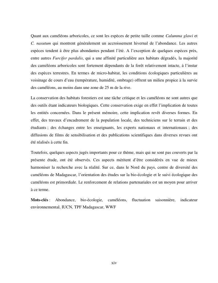 cameleons: indicateurs environnementaux, outils de la conservation. volume i : document de synthese