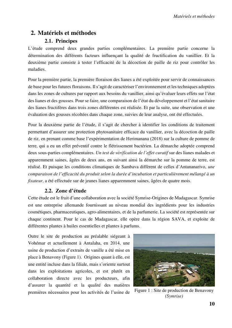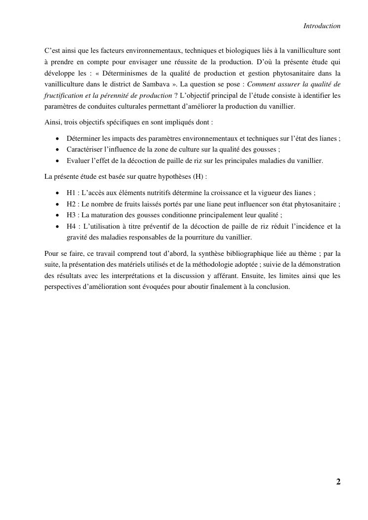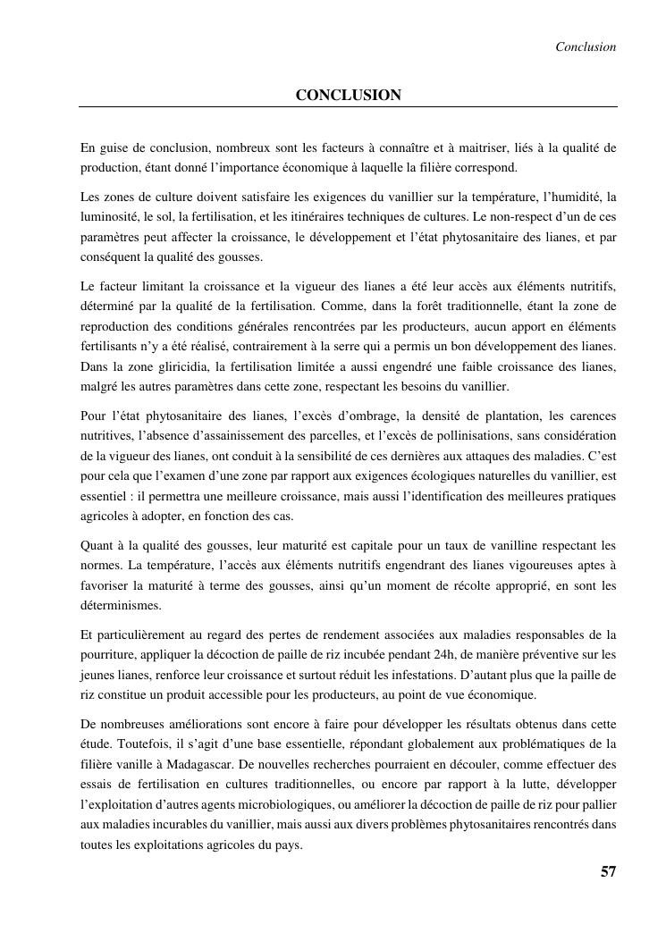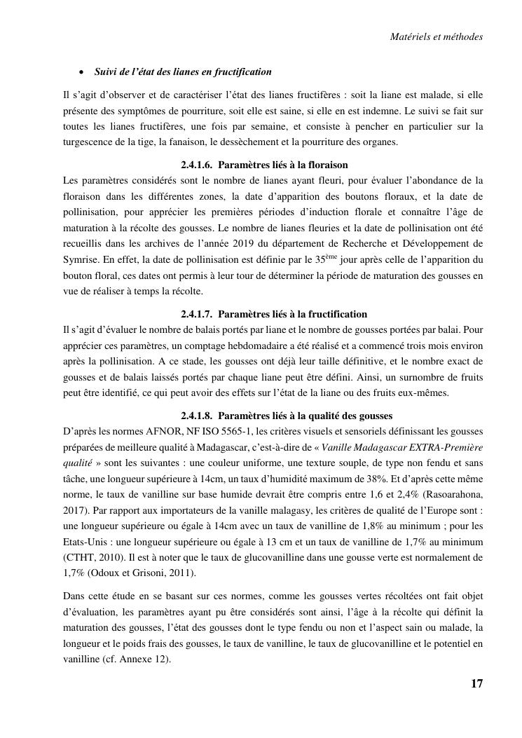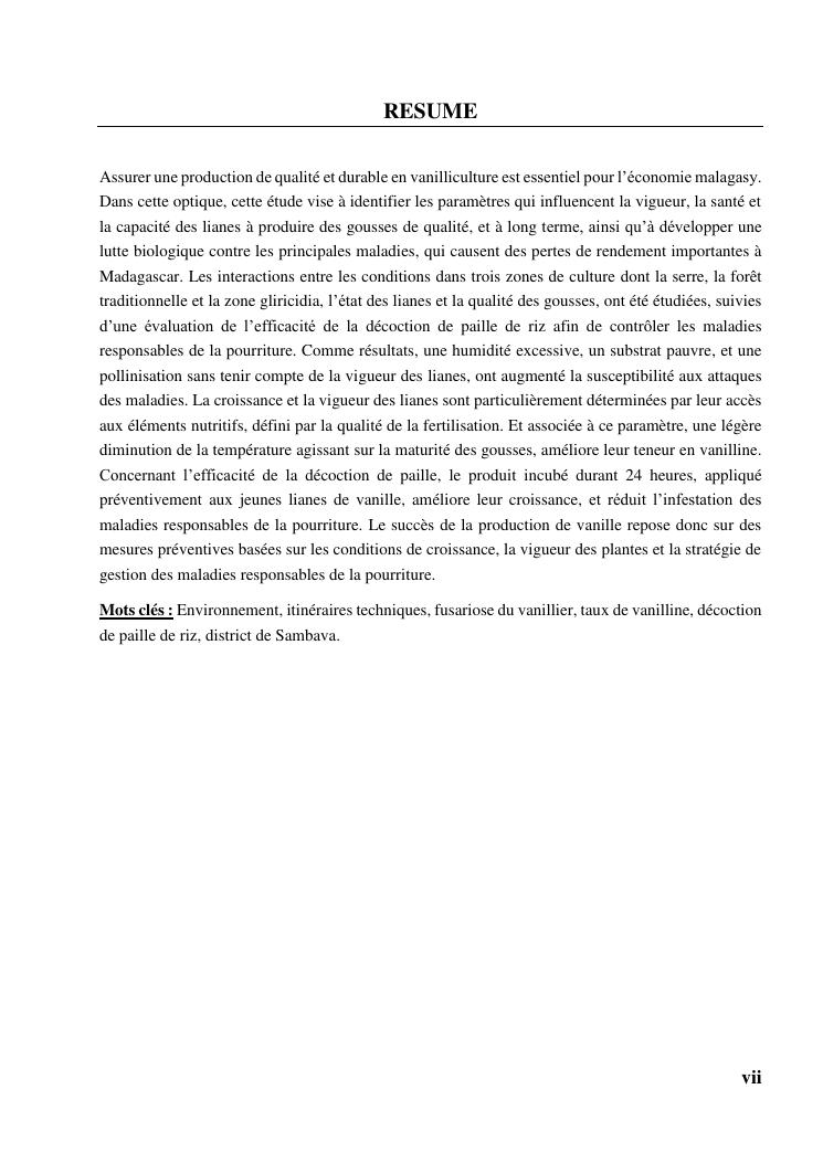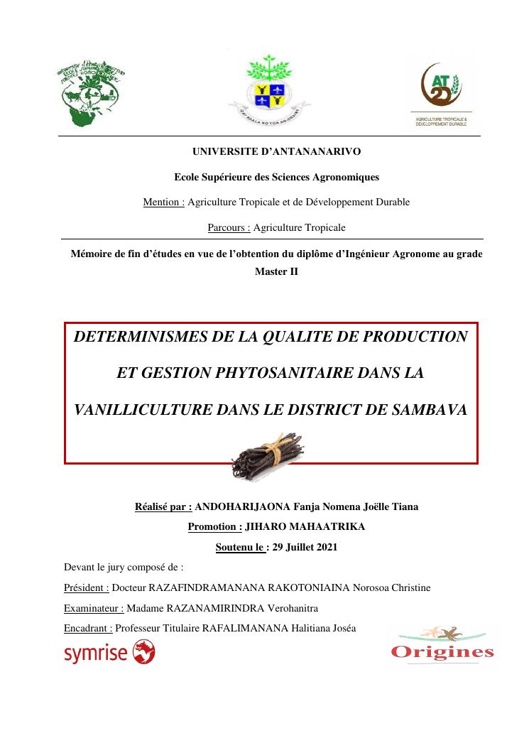 determinismes de la qualite de production et gestion phytosanitaire dans la vanilliculture dans le district de sambava