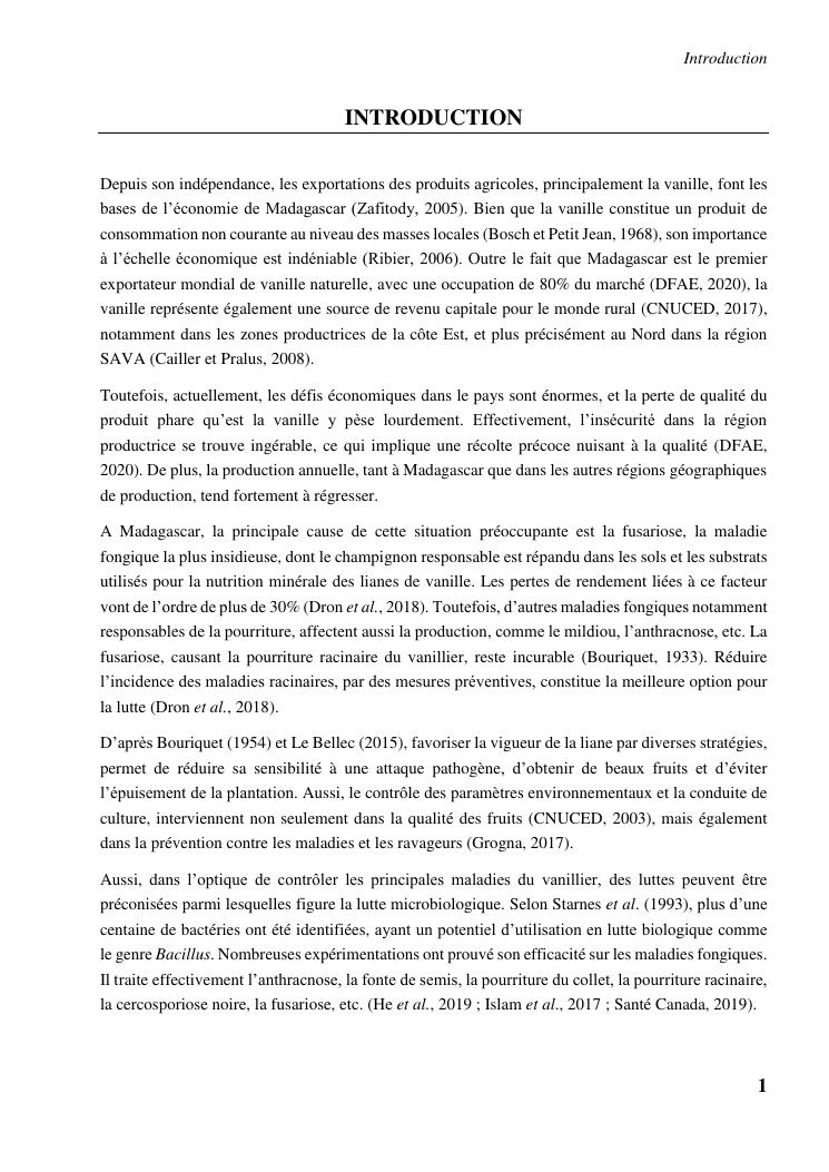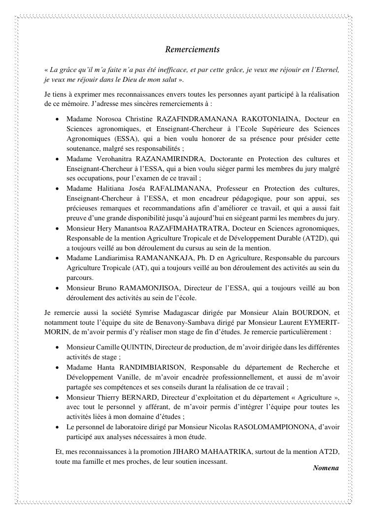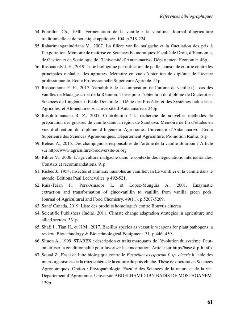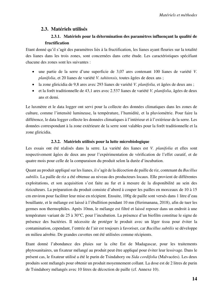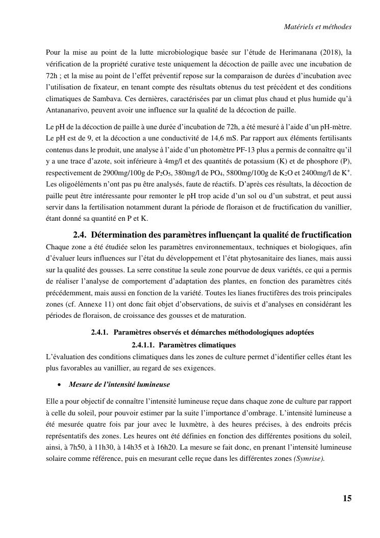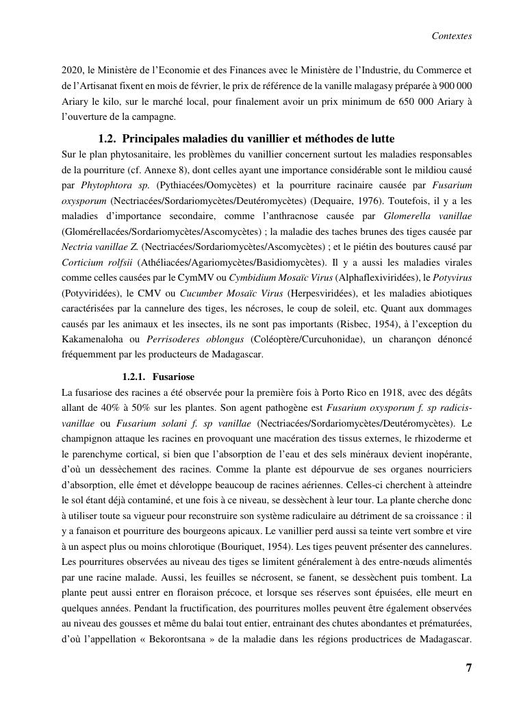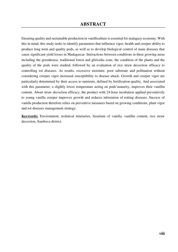 determinismes de la qualite de production et gestion phytosanitaire dans la vanilliculture dans le district de sambava