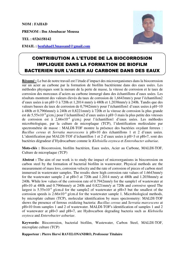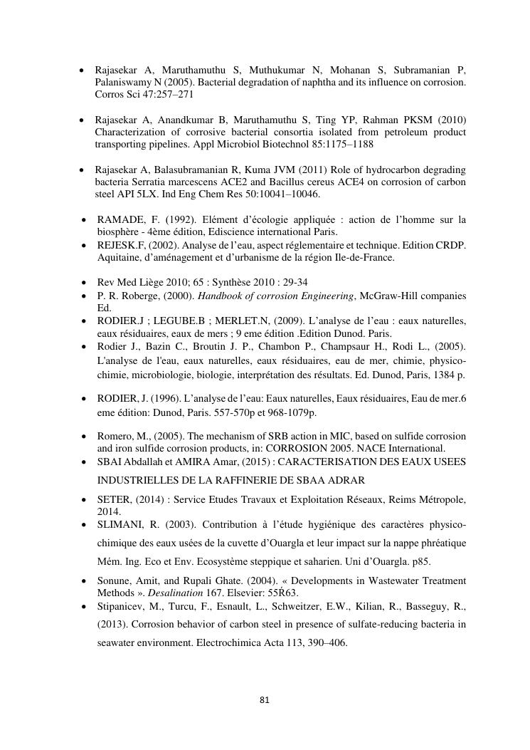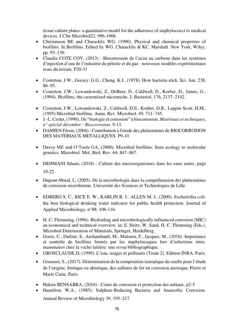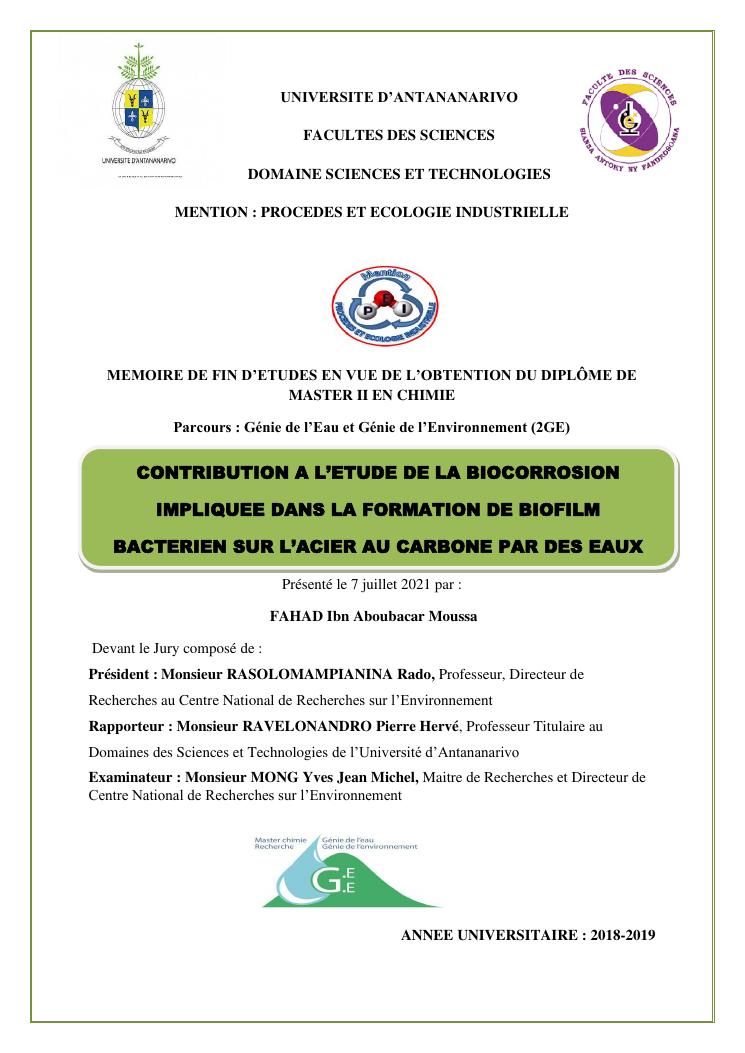 contribution a l'etude de la biocorrosion impliquee dans la formation de biofilm bacterien sur l'acier au carbone par des eaux