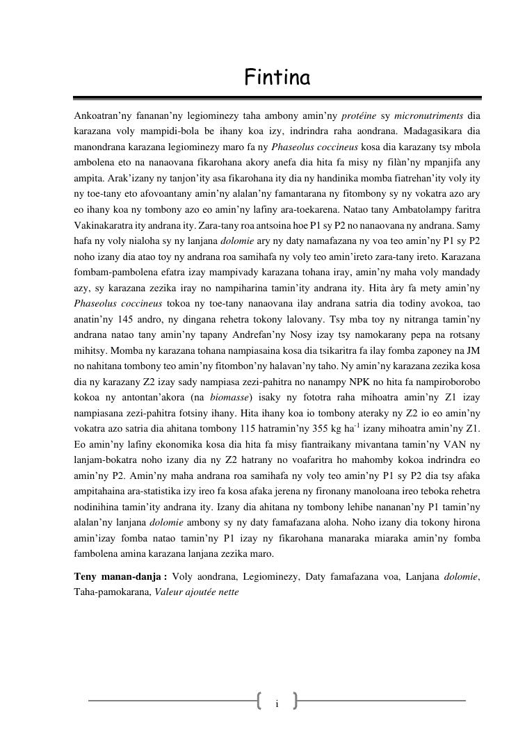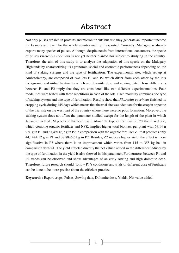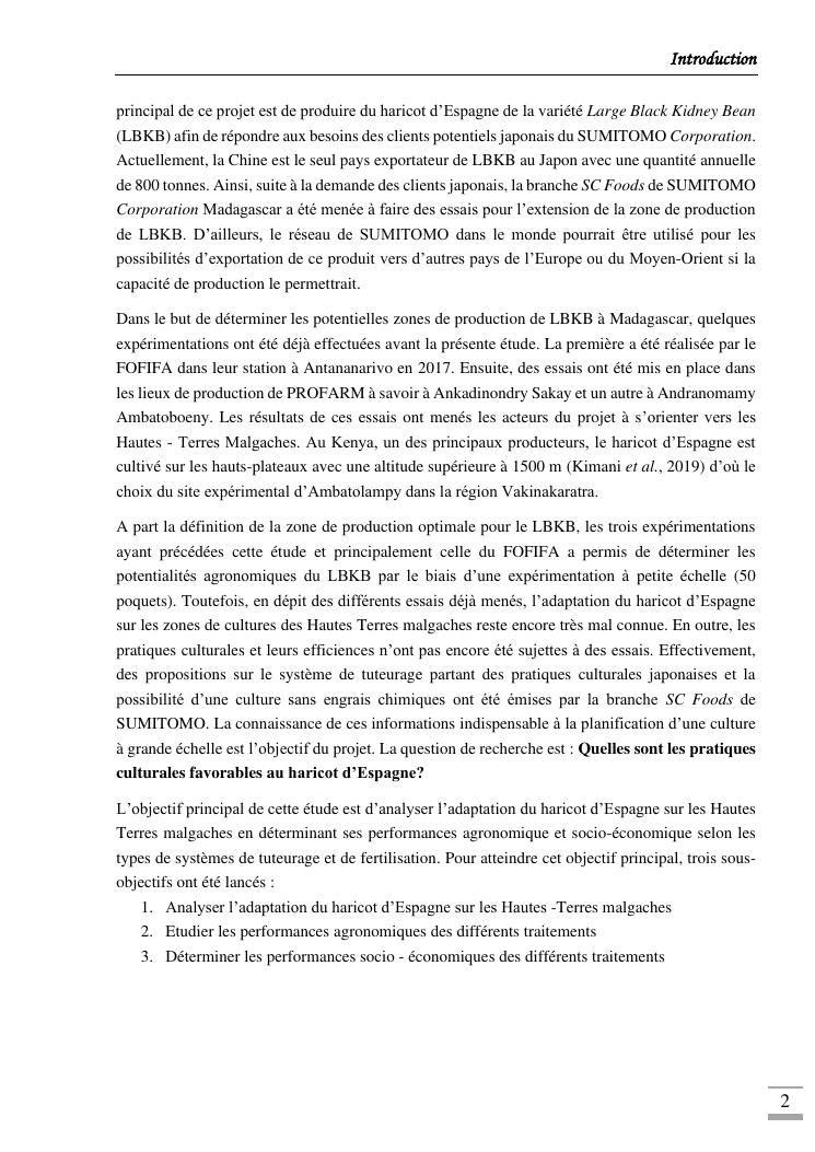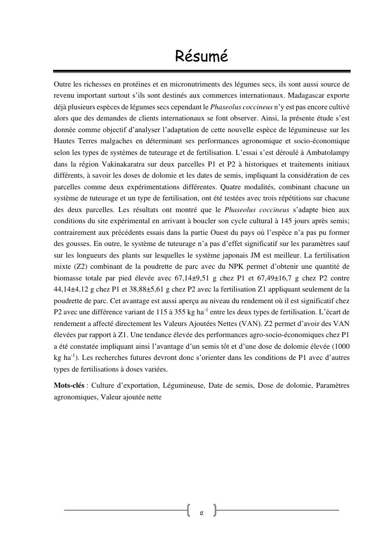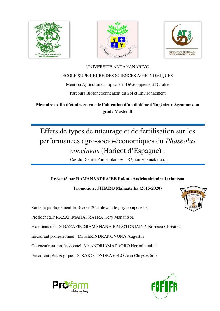 effets de types de tuteurage et de fertilisation sur les performances agro-socio-économiques du phaseolus coccineus (haricot d'espagne) : cas du district ambatolampy région vakinakaratra