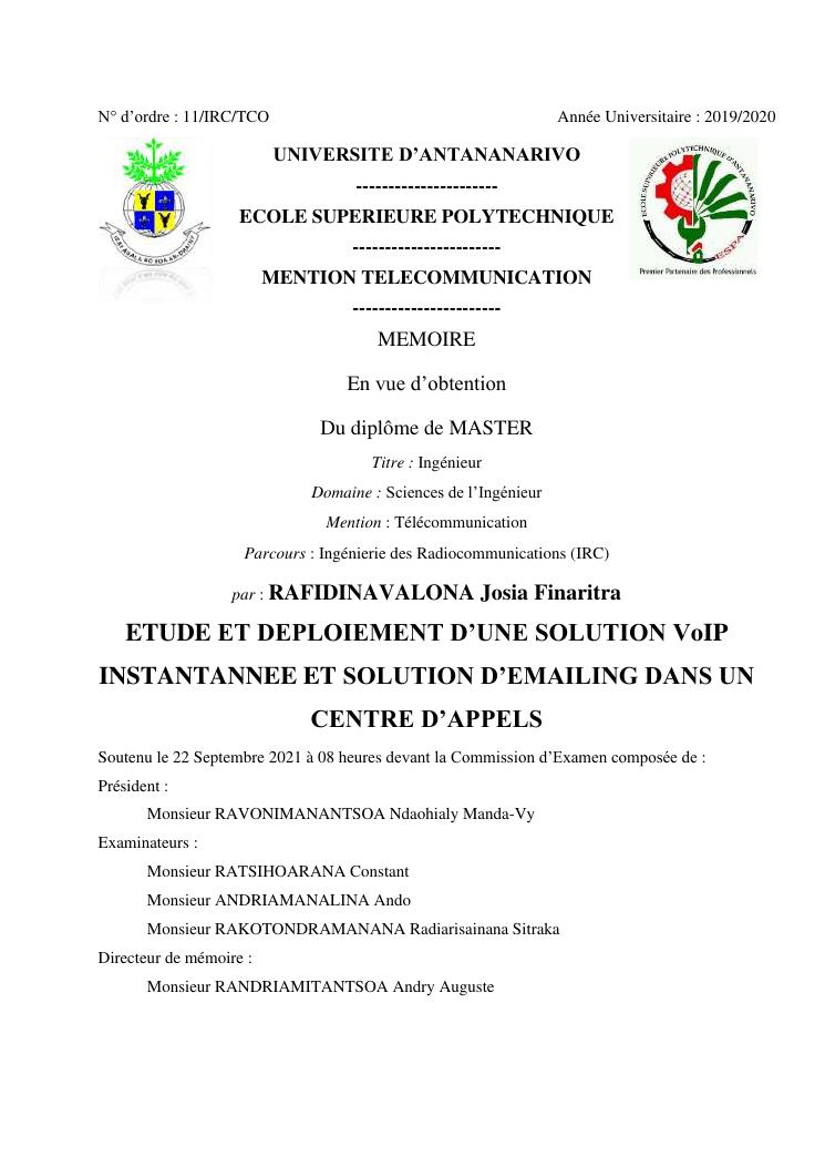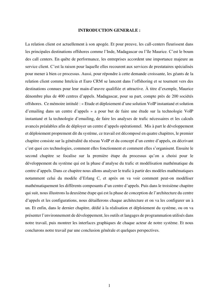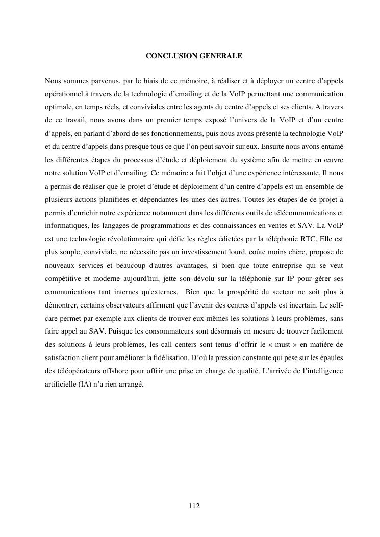 etude et deploiement d'une solution voip instantannee et solution d'emailing dans un centre d'appels