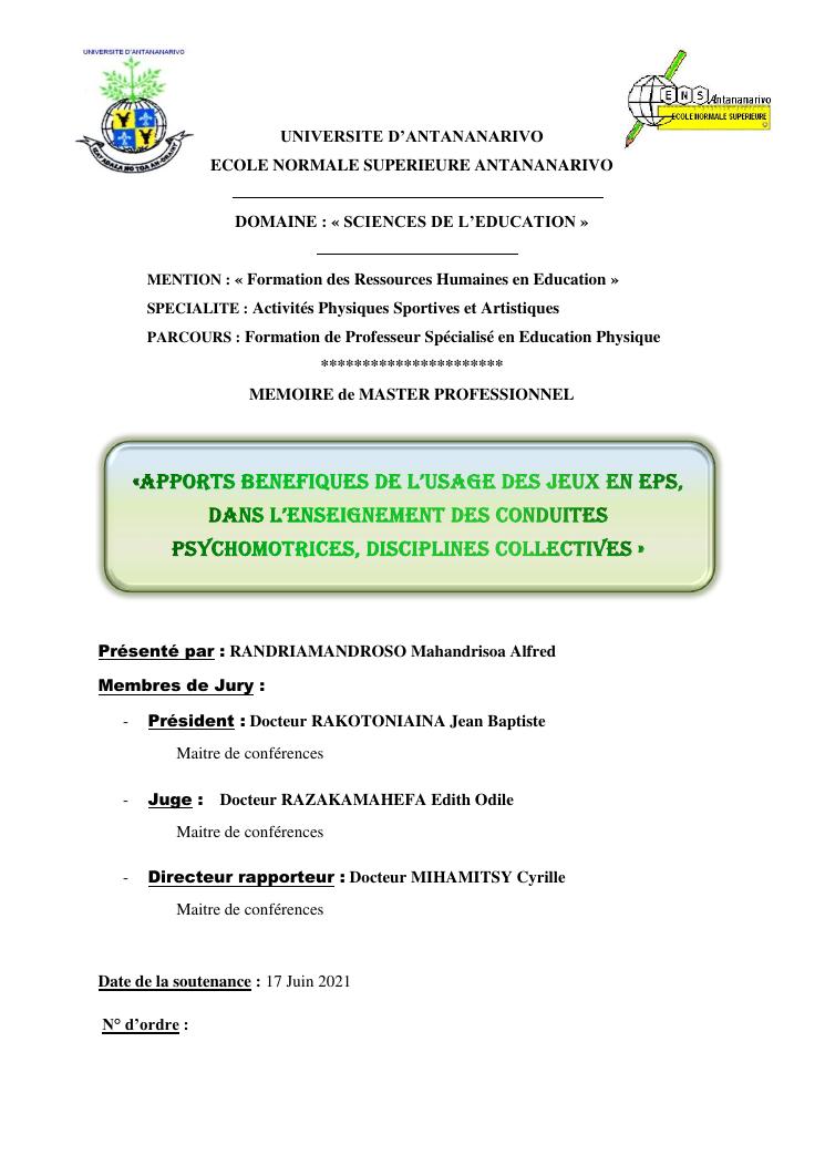 apports benefiques de l'usage des jeux en eps, dans l'enseignement des conduites psychmotrices, disciplines collectives
