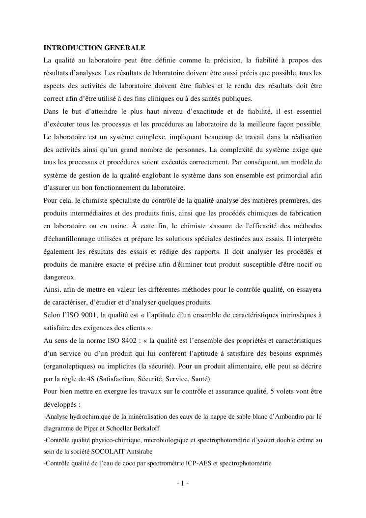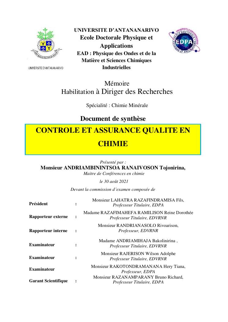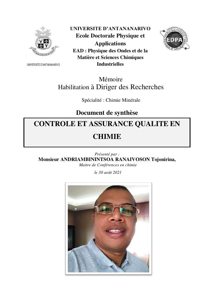 controle et assurance qualite en chimie. volume i : document de synthèse