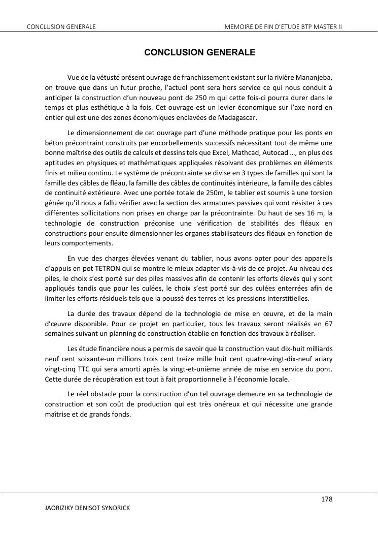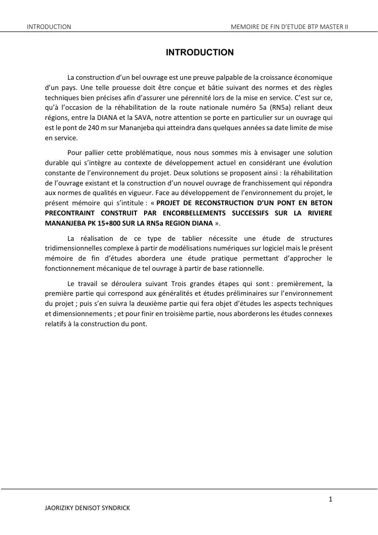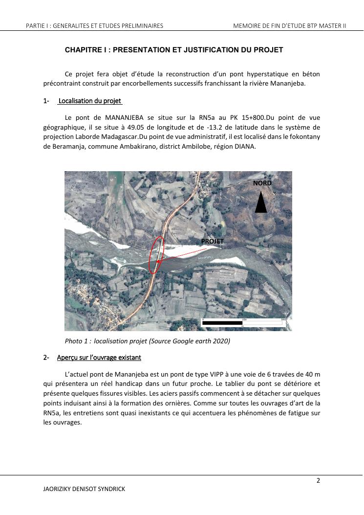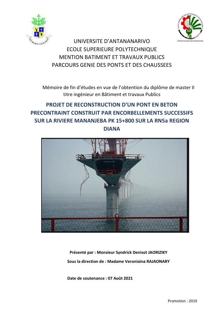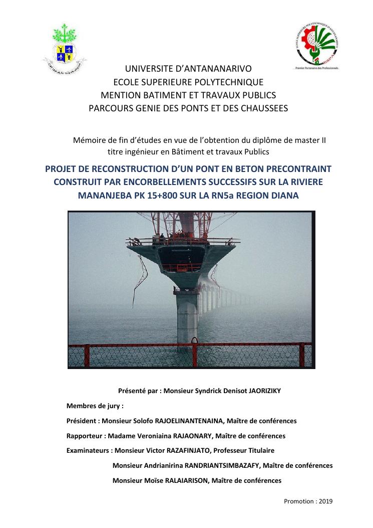 projet de reconstruction d'un pont en beton precontraint construit par encorbellements successifs sur la riviere mananjeba pk 15+800 sur la rn5a region diana