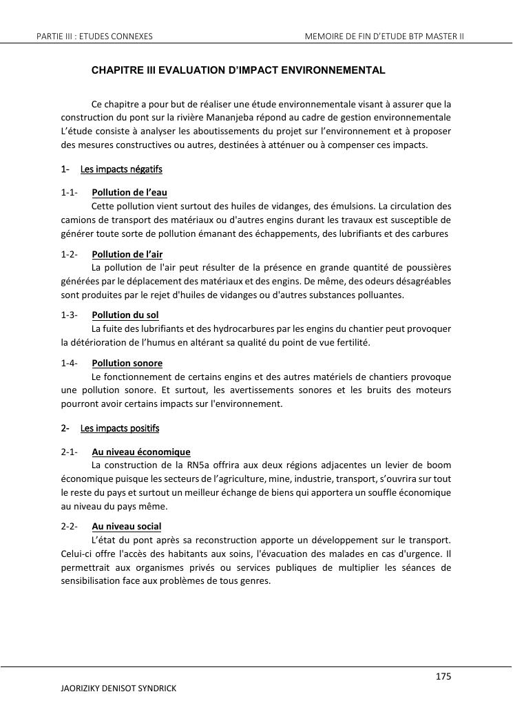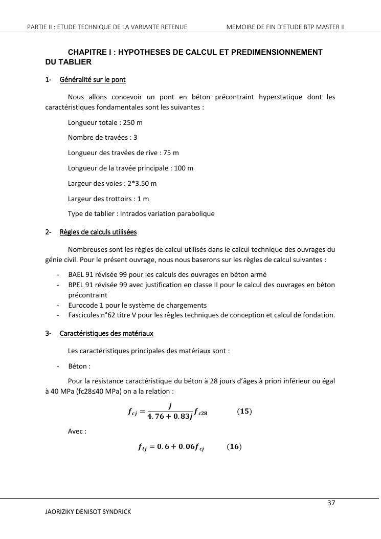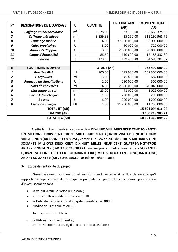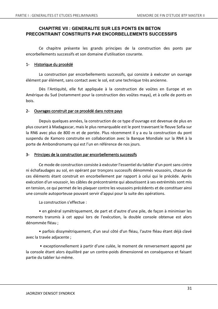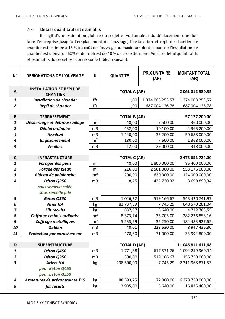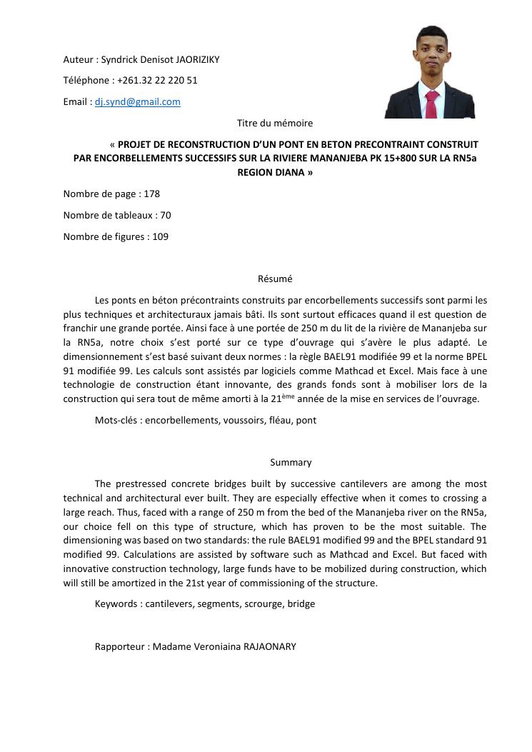 projet de reconstruction d'un pont en beton precontraint construit par encorbellements successifs sur la riviere mananjeba pk 15+800 sur la rn5a region diana