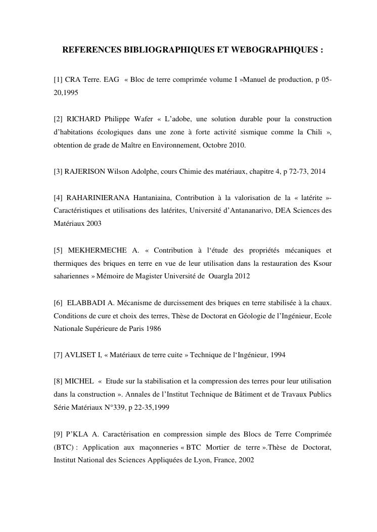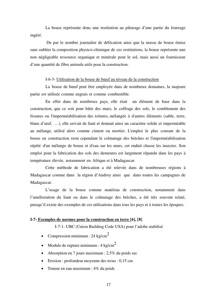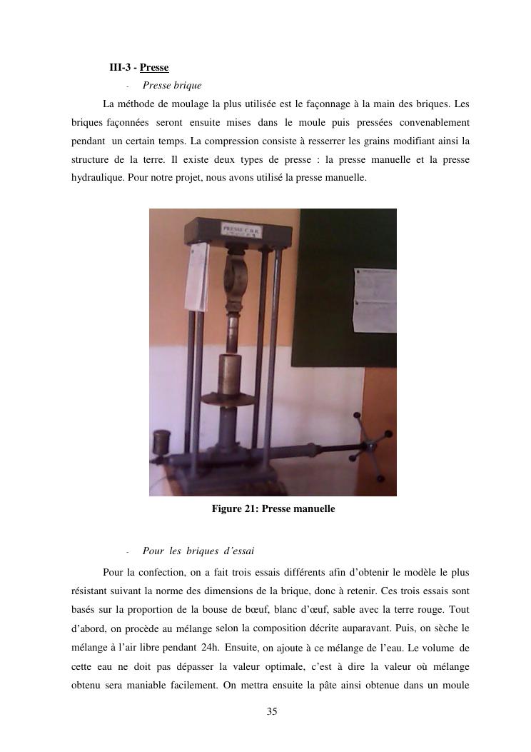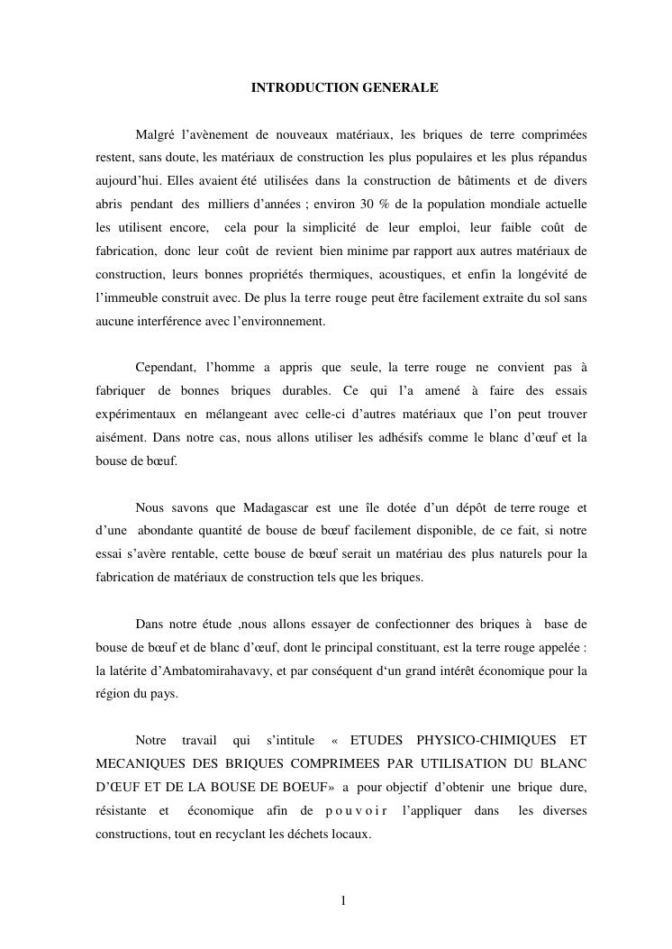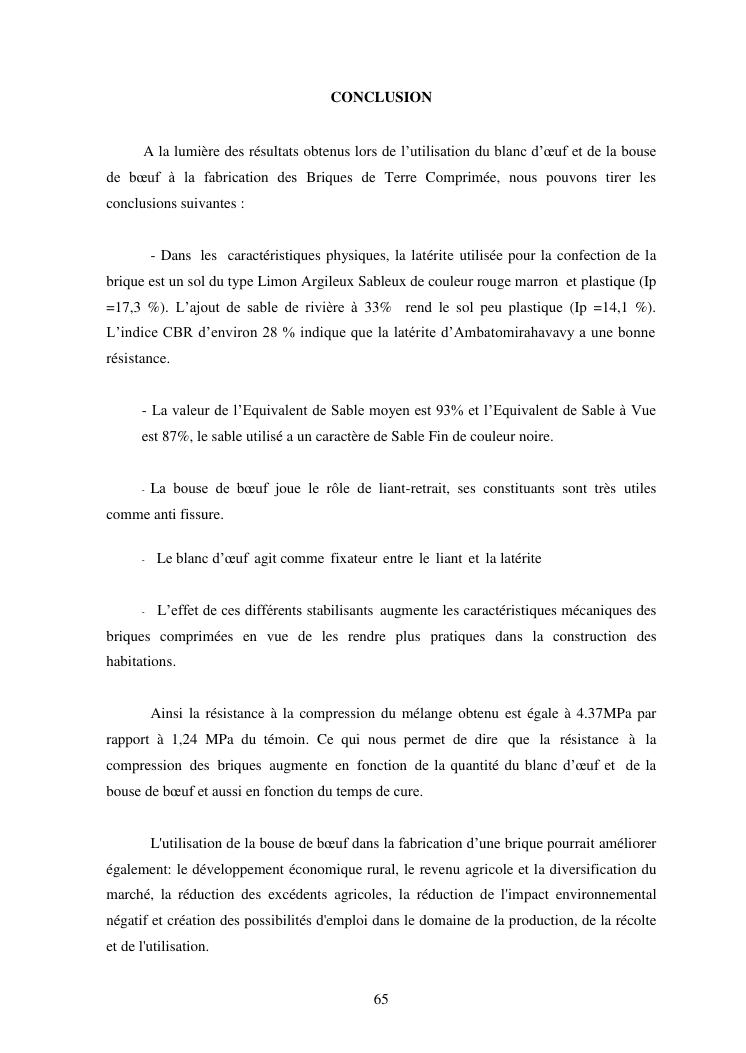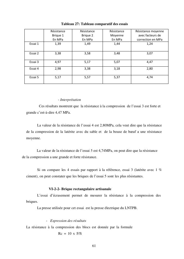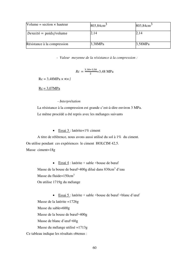 etudes physico-chimiques et mecaniques des briques comprimees par utilisation du blanc d'oeuf et de la bouse de boeuf
