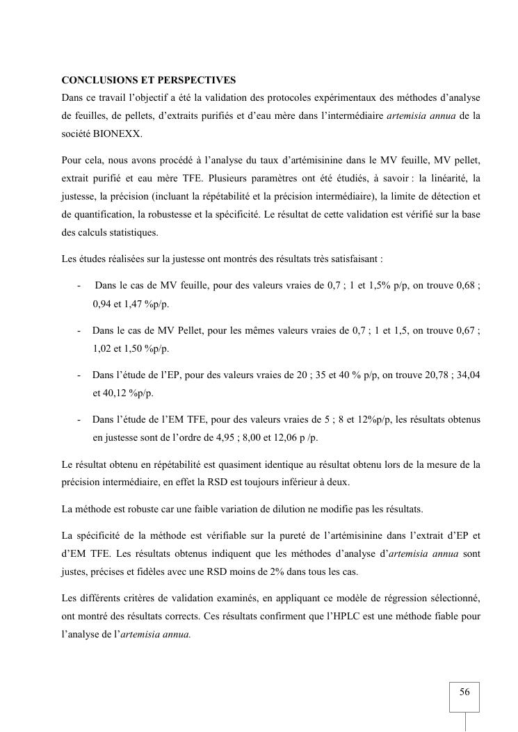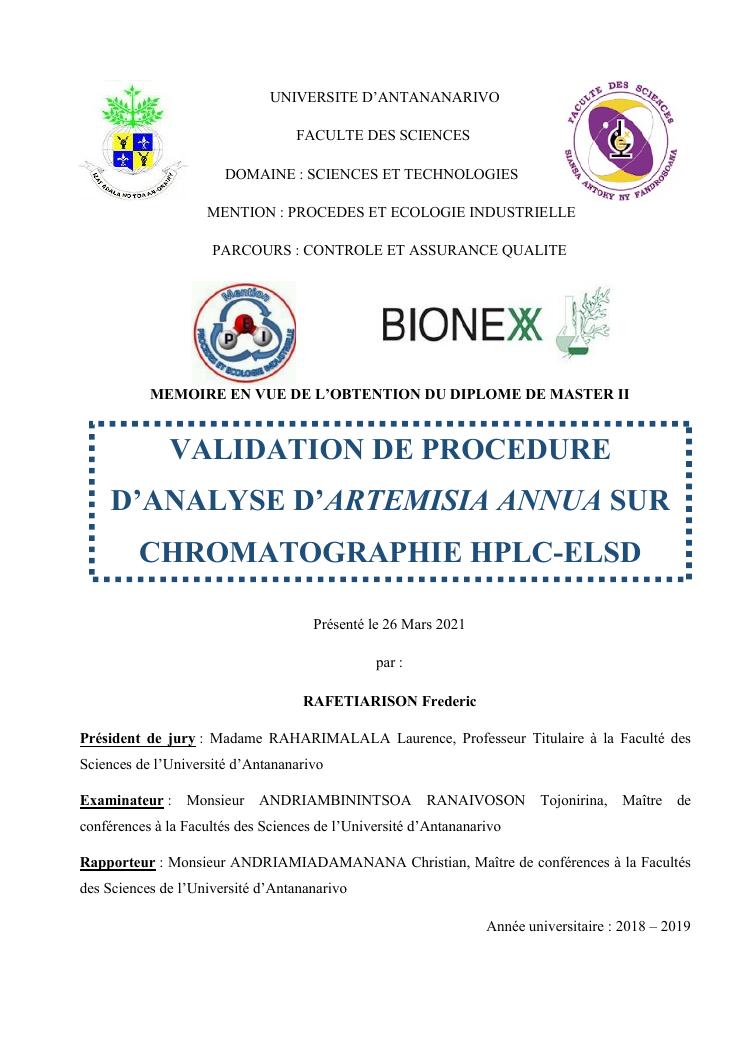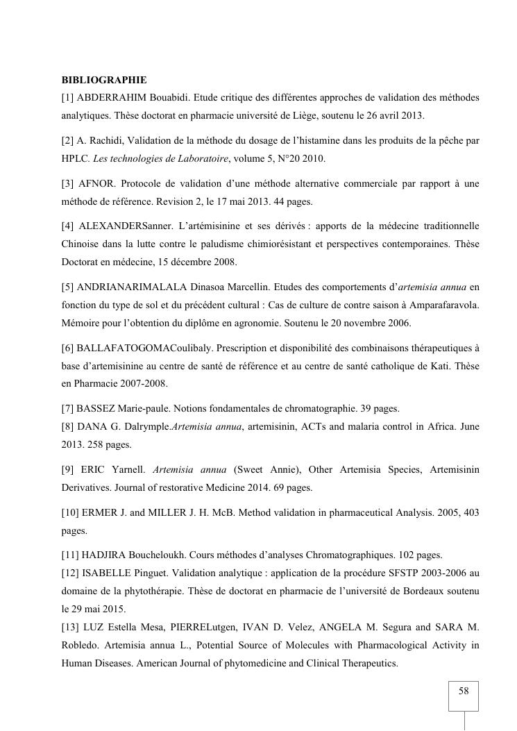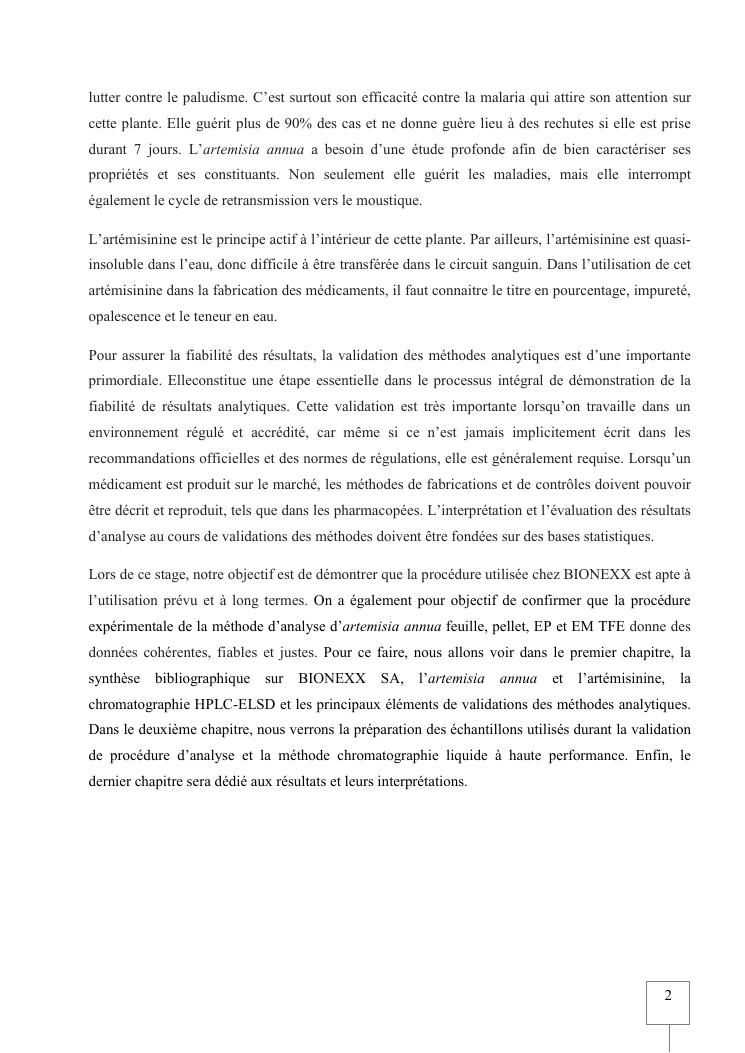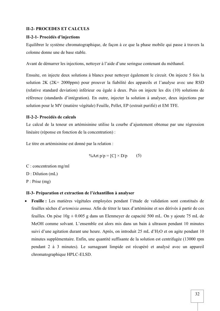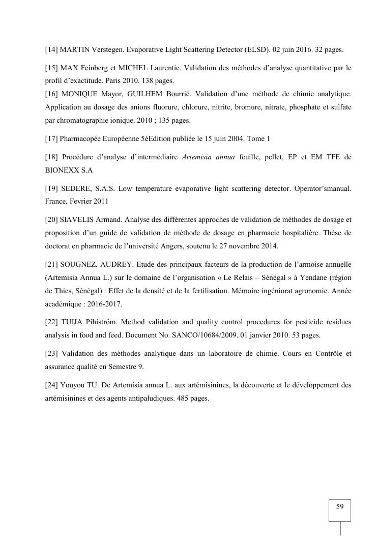 validation de procedure d'analyse d'artemisia annua sur chromatographie hplc-elsd