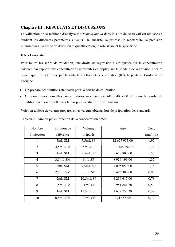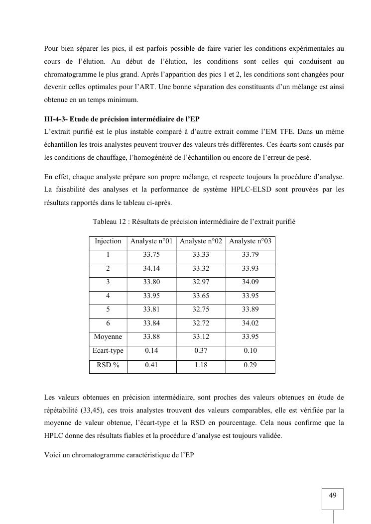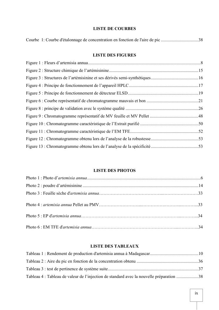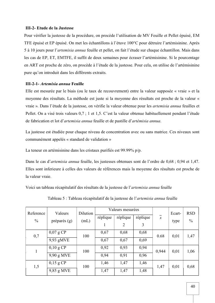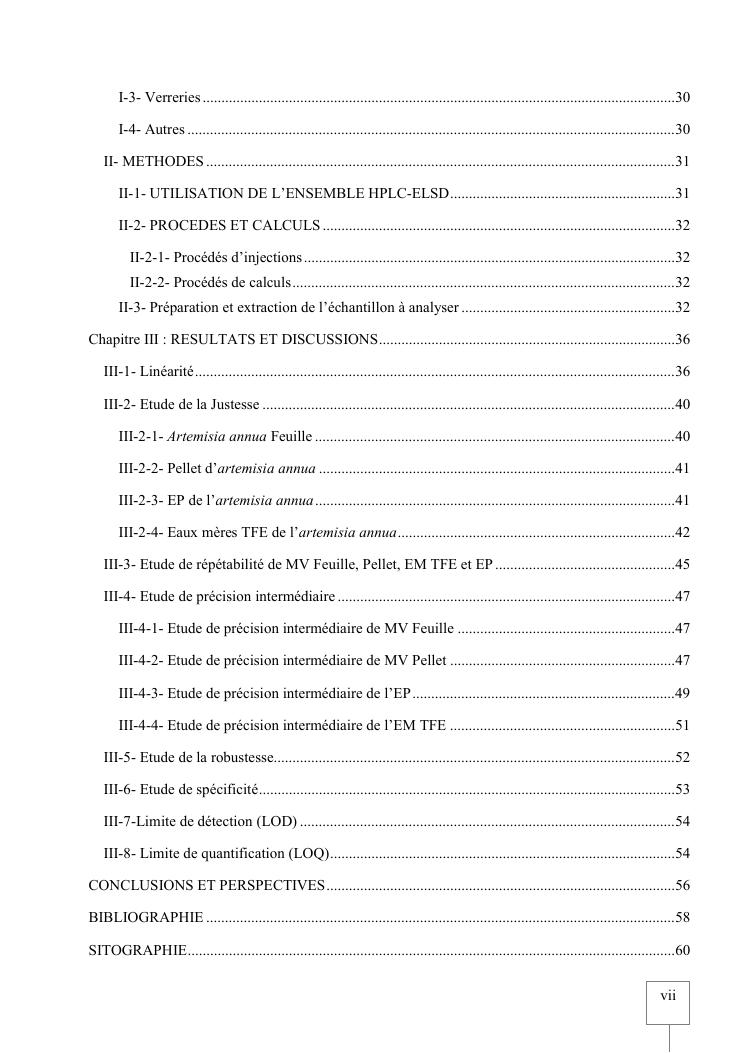 validation de procedure d'analyse d'artemisia annua sur chromatographie hplc-elsd