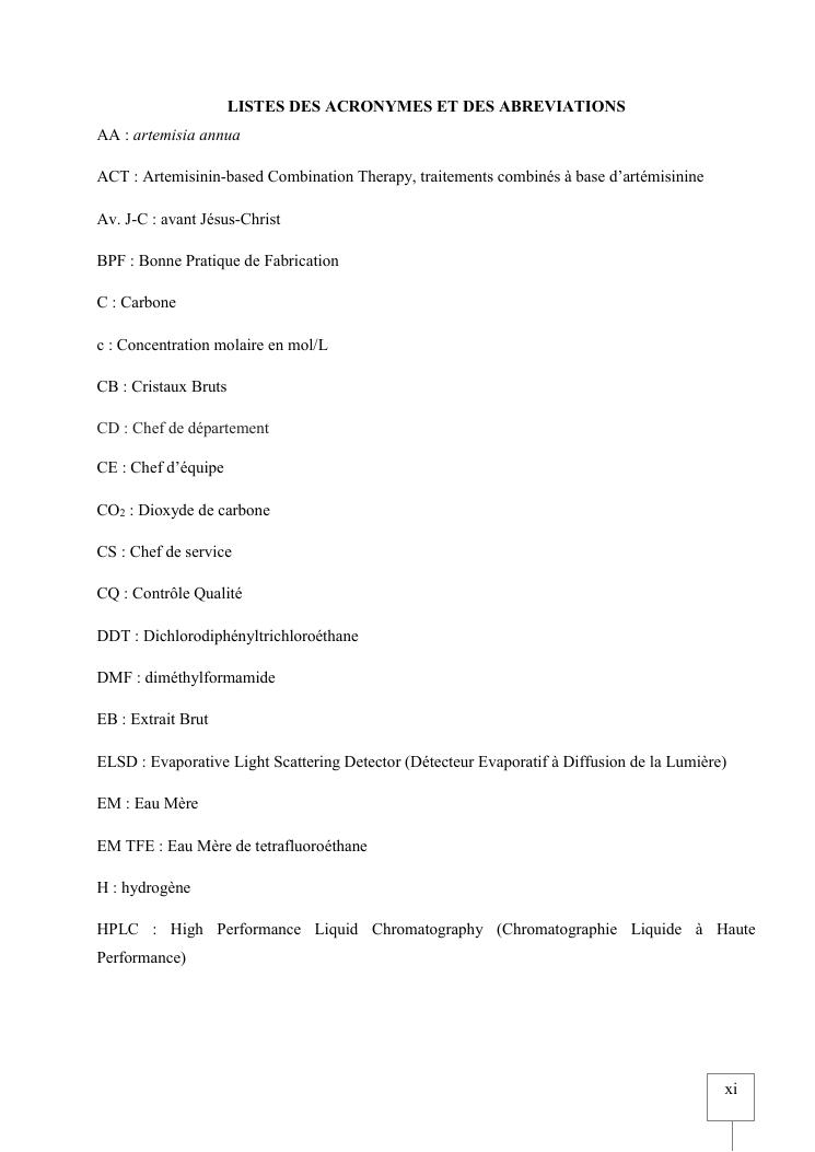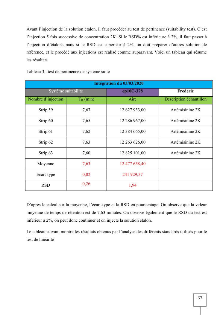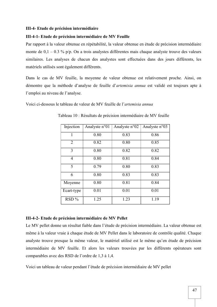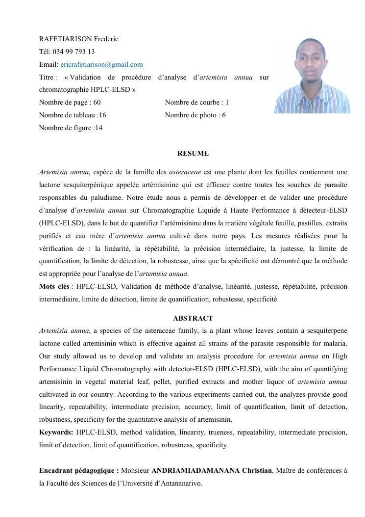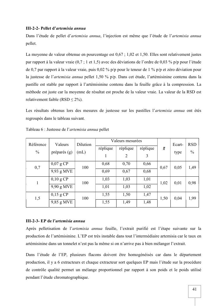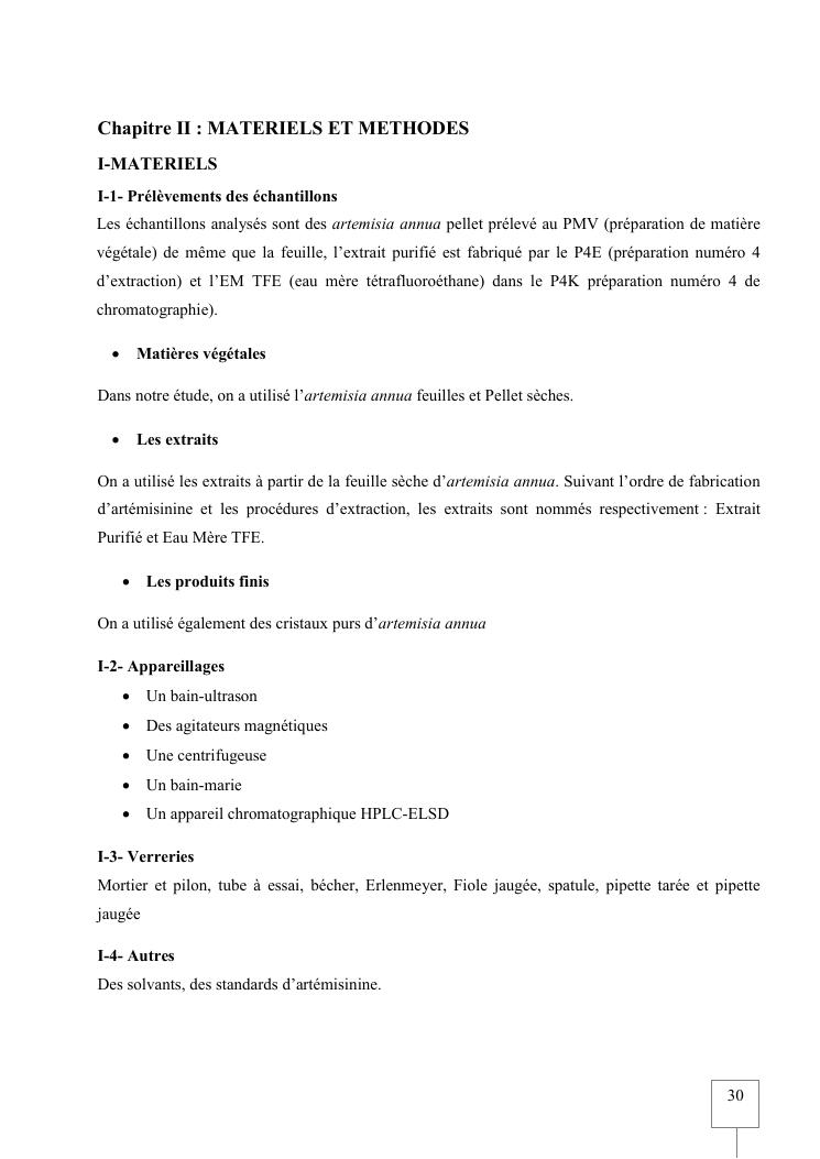 validation de procedure d'analyse d'artemisia annua sur chromatographie hplc-elsd