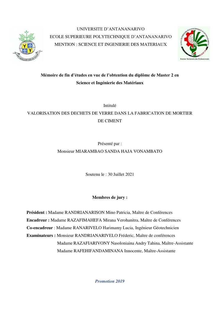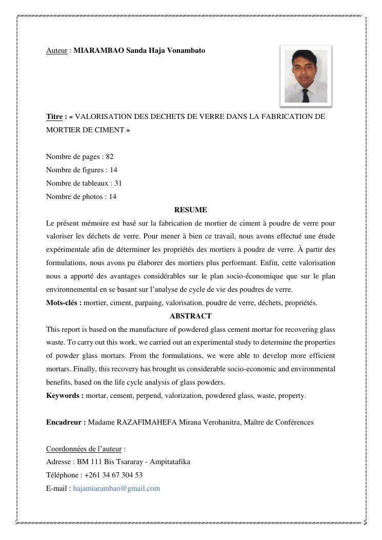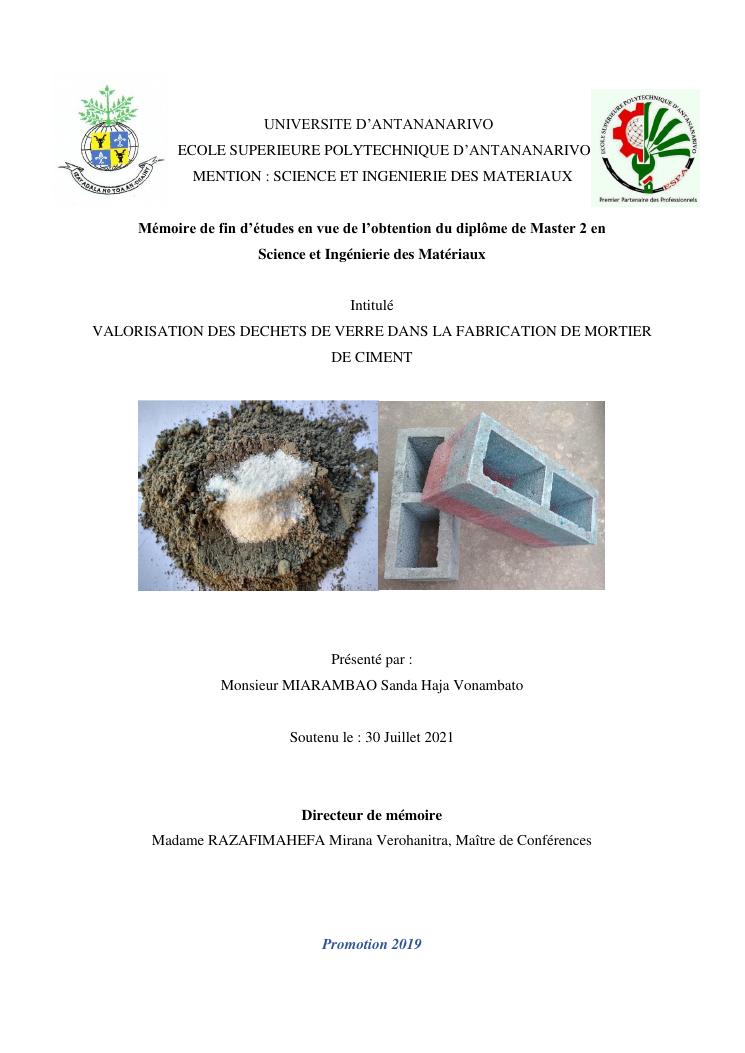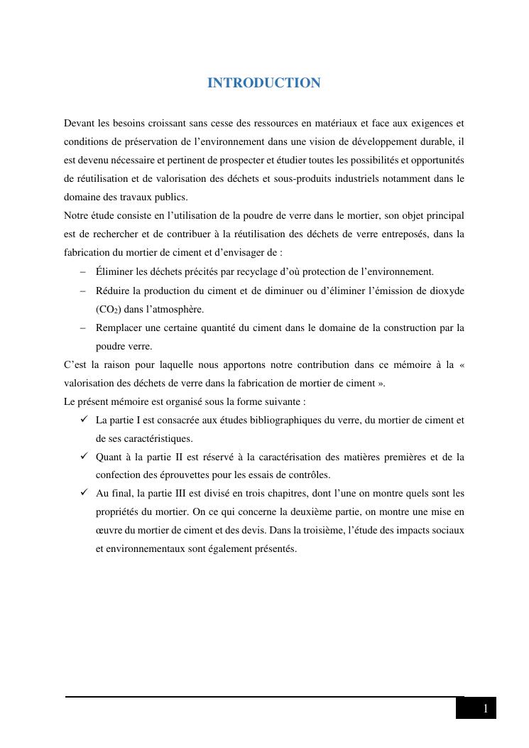 valorisation des dechets de verre dans la fabrication de mortier de ciment