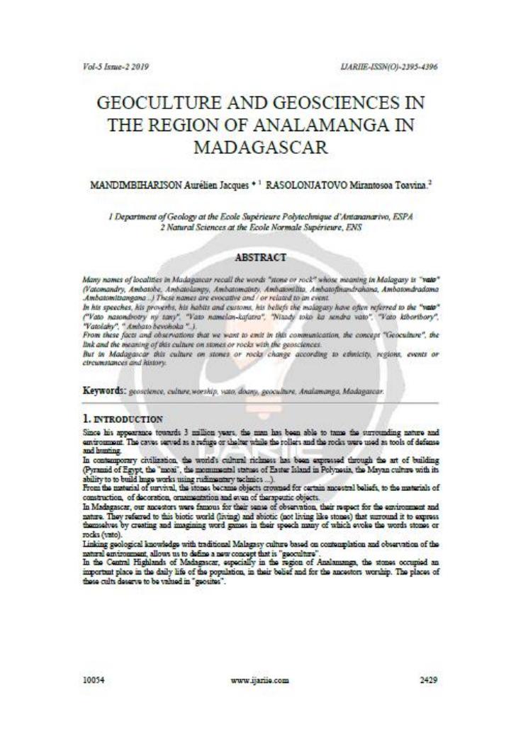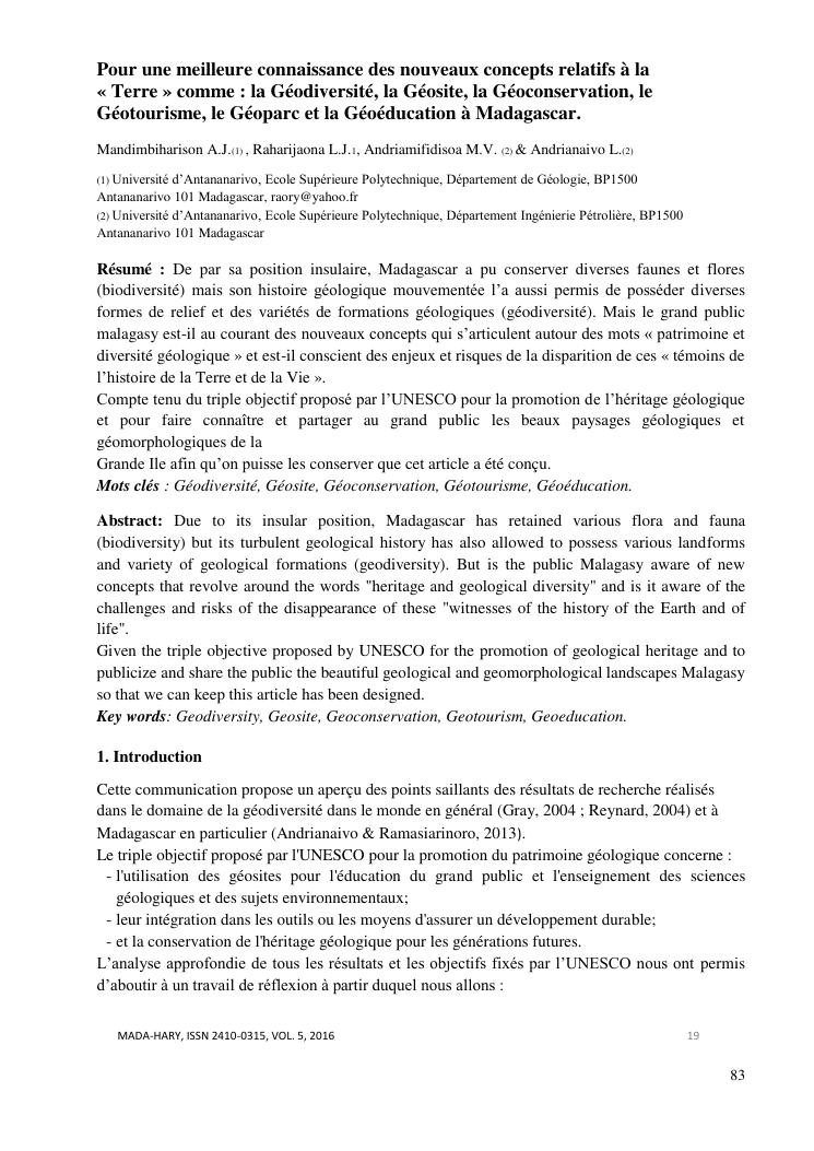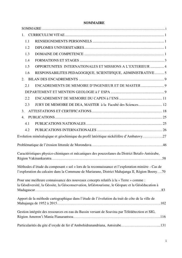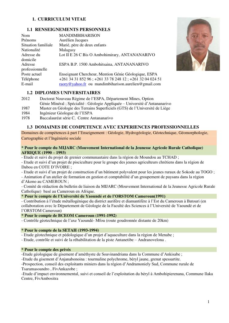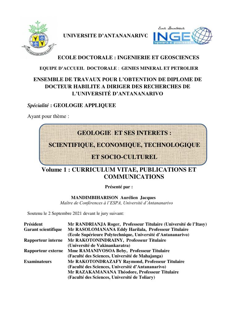 geologie et ses interets : scientifique, economique, technologique et socio-culturel. volume 1 : curriculum vitae, publications et communications